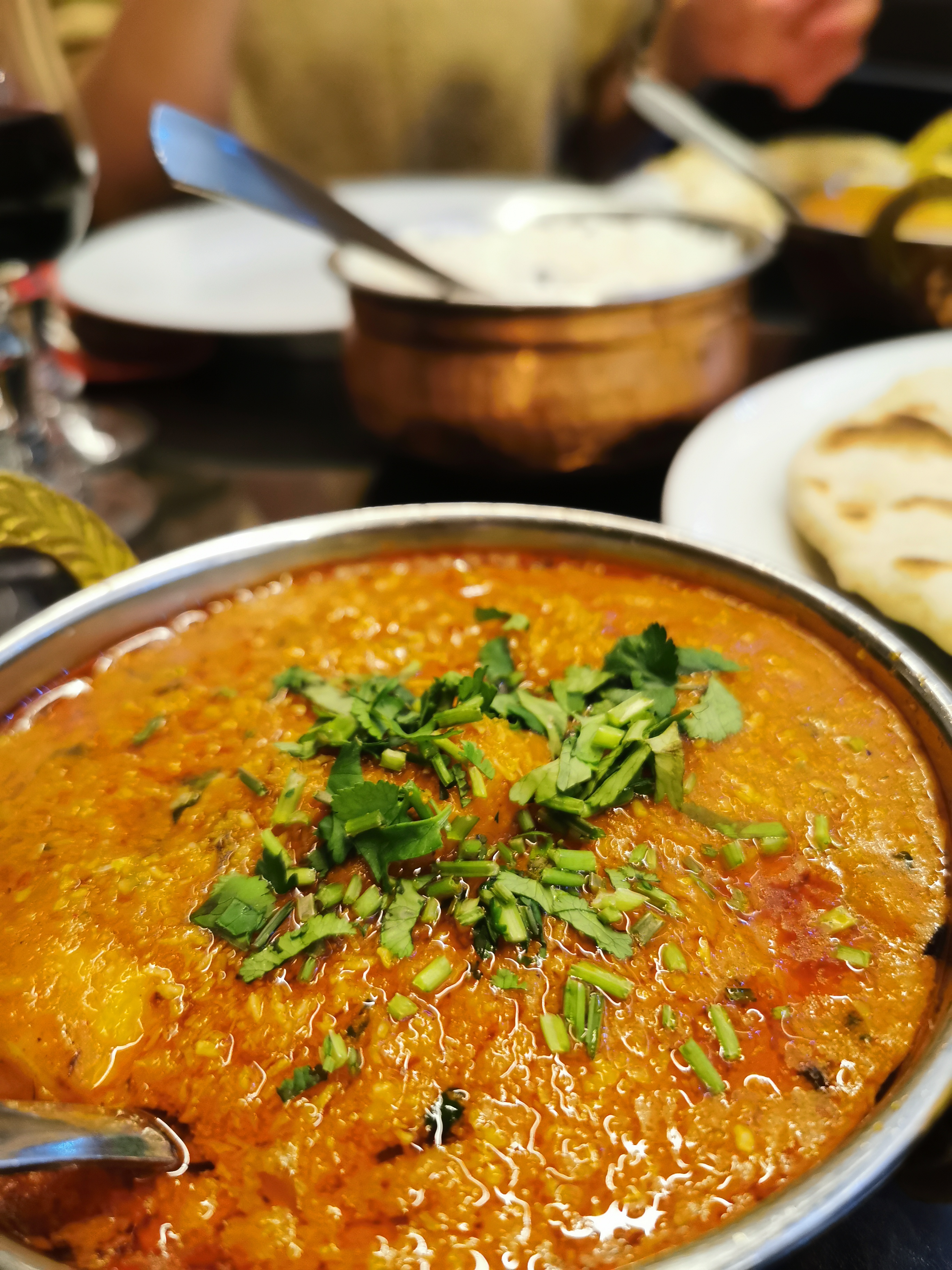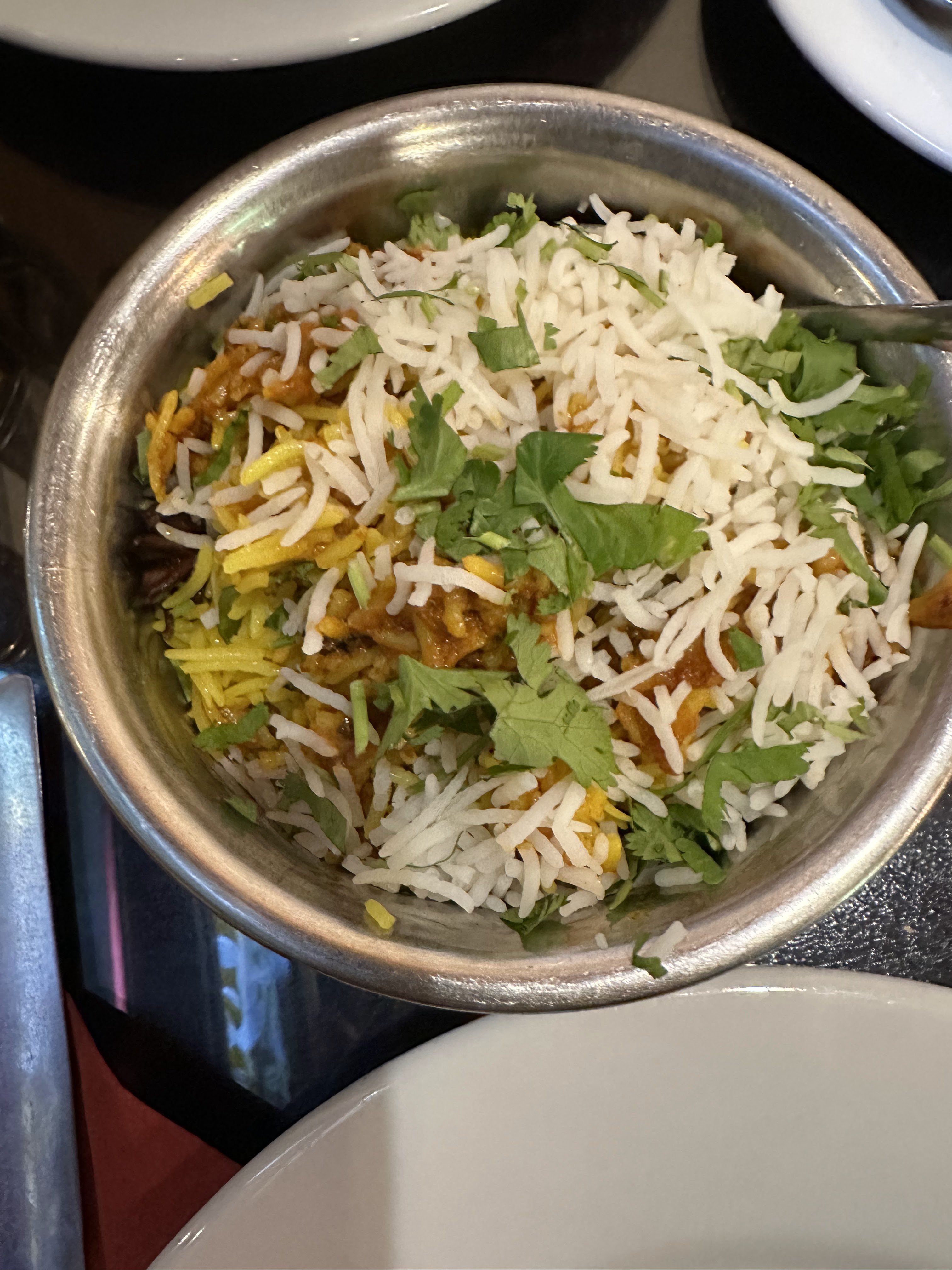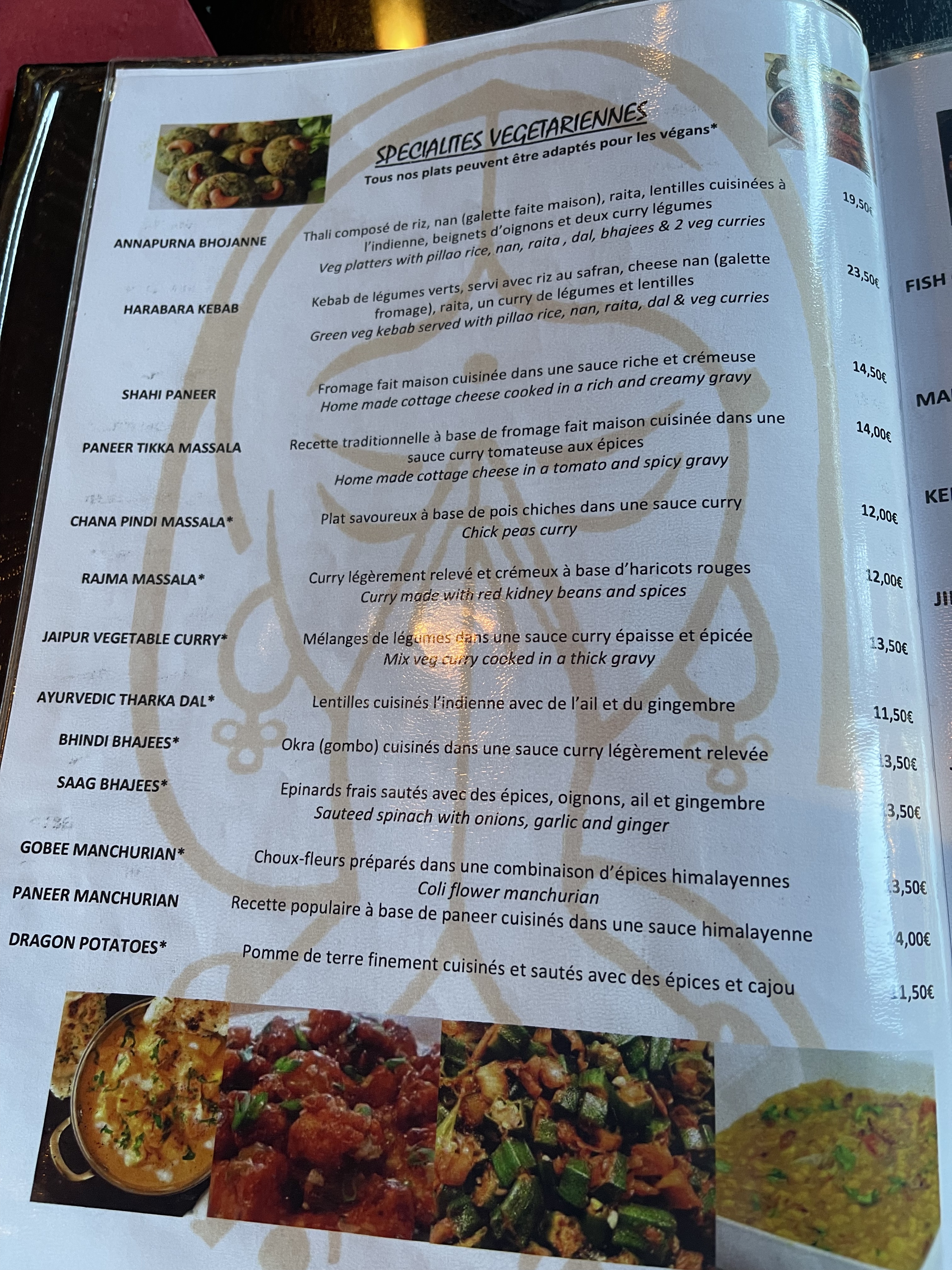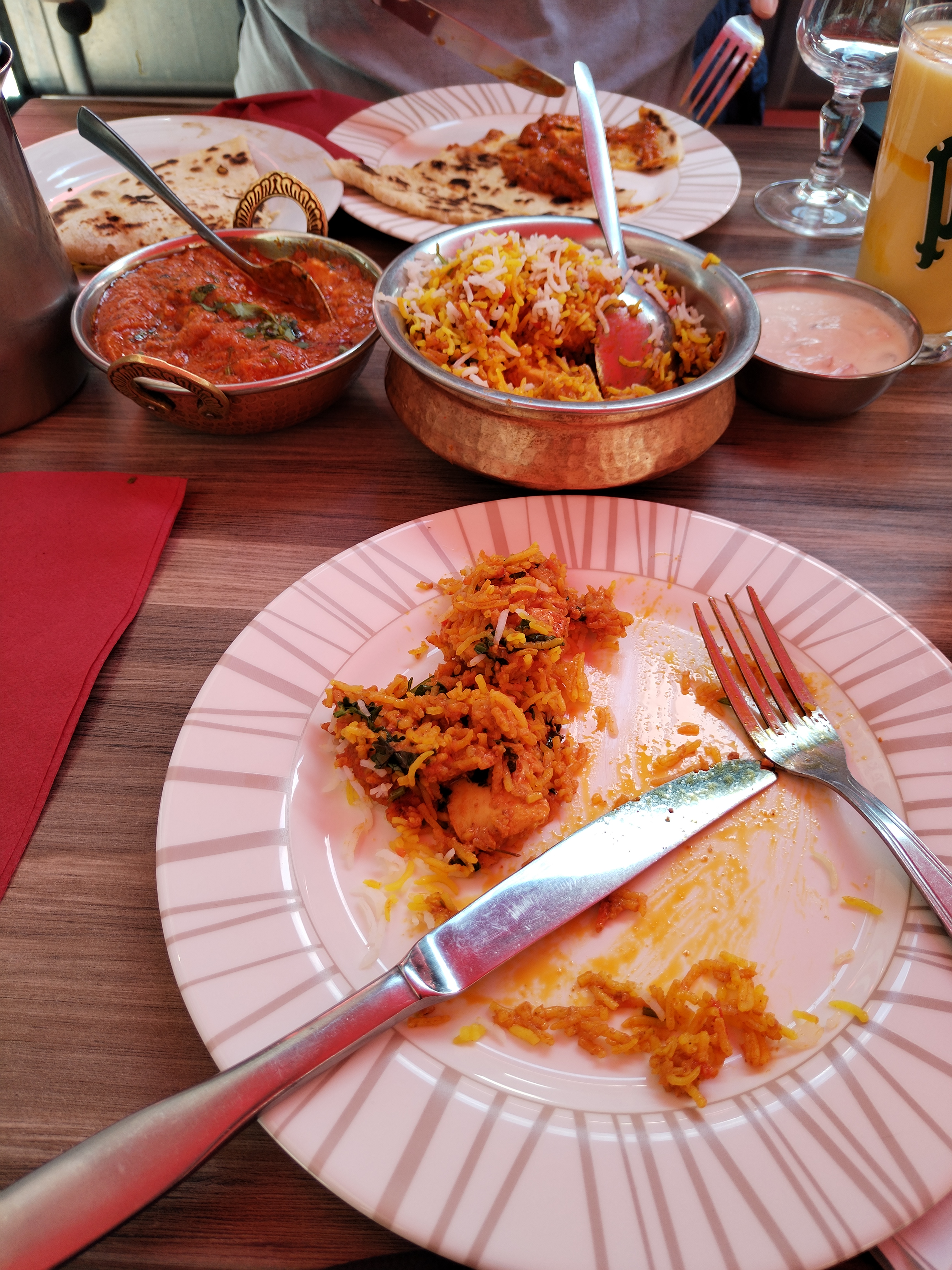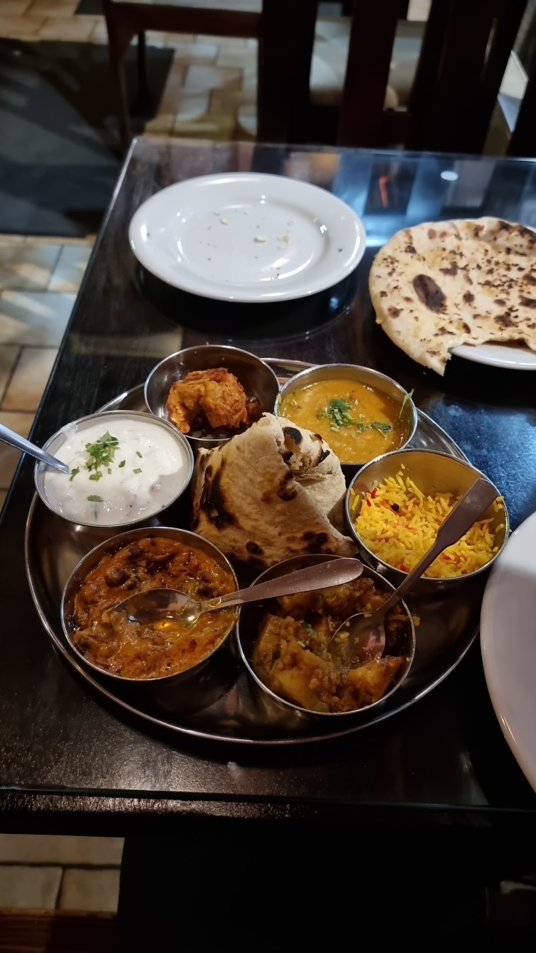 N'étant aucun fans des plats relevés, nous avions choisi des plats non renseignés comme spicy. Cependant mon fils et moi avons ingurgité les 2 carafes d'eau, le raita gentiment offert par le serveur voyant mon teint rouge vif, pour survivre 😅. Néanmoins, c'était très bon. Le fait que les plats n'incluent pas les accompagnements (assez chers et en petites quantités: 7 euros pour une petite petite salade, 3 euros pour une cuillère à soupe de chutney... ) implique que l'addition devient finalement elle aussi assez épicées.