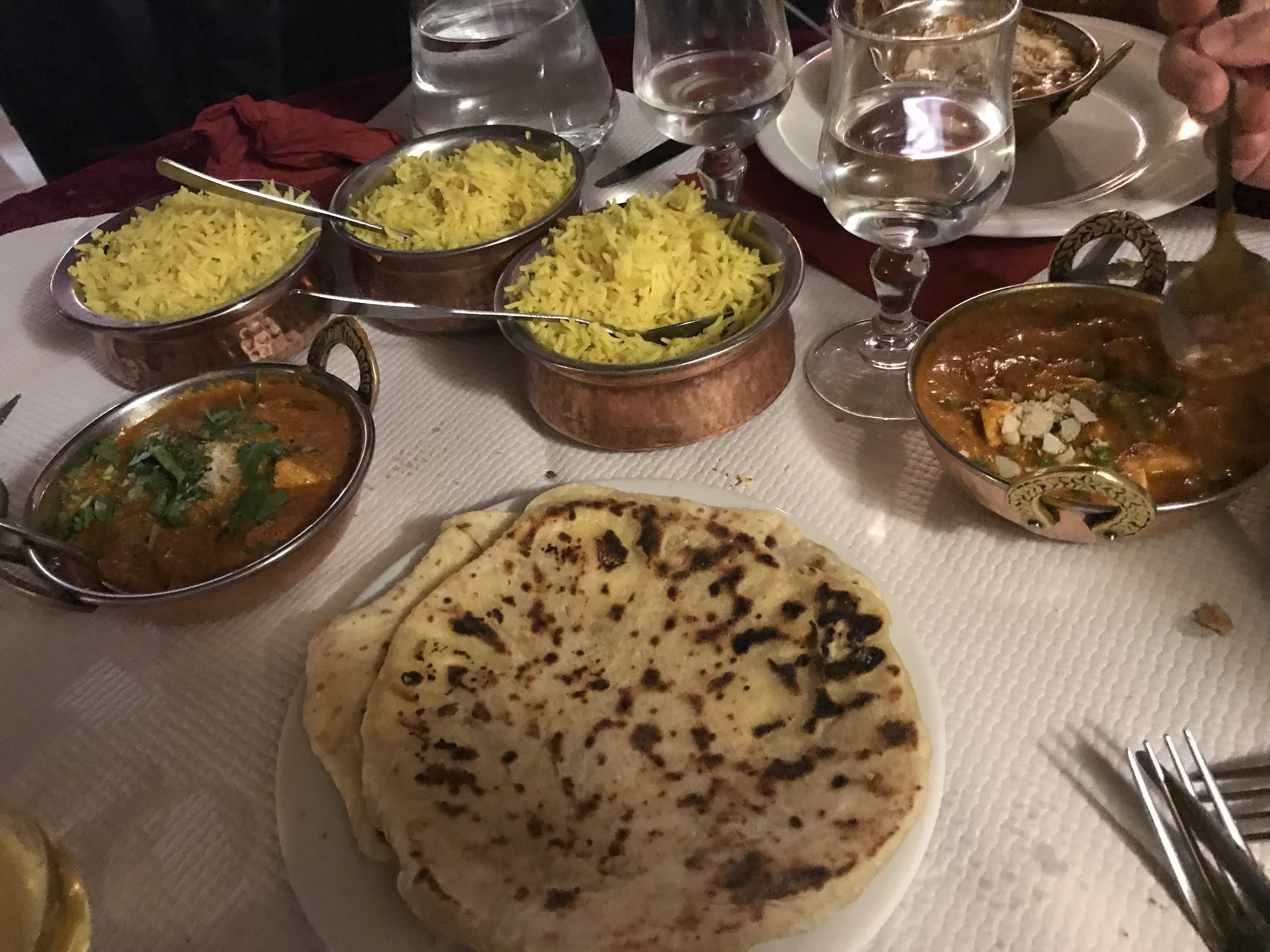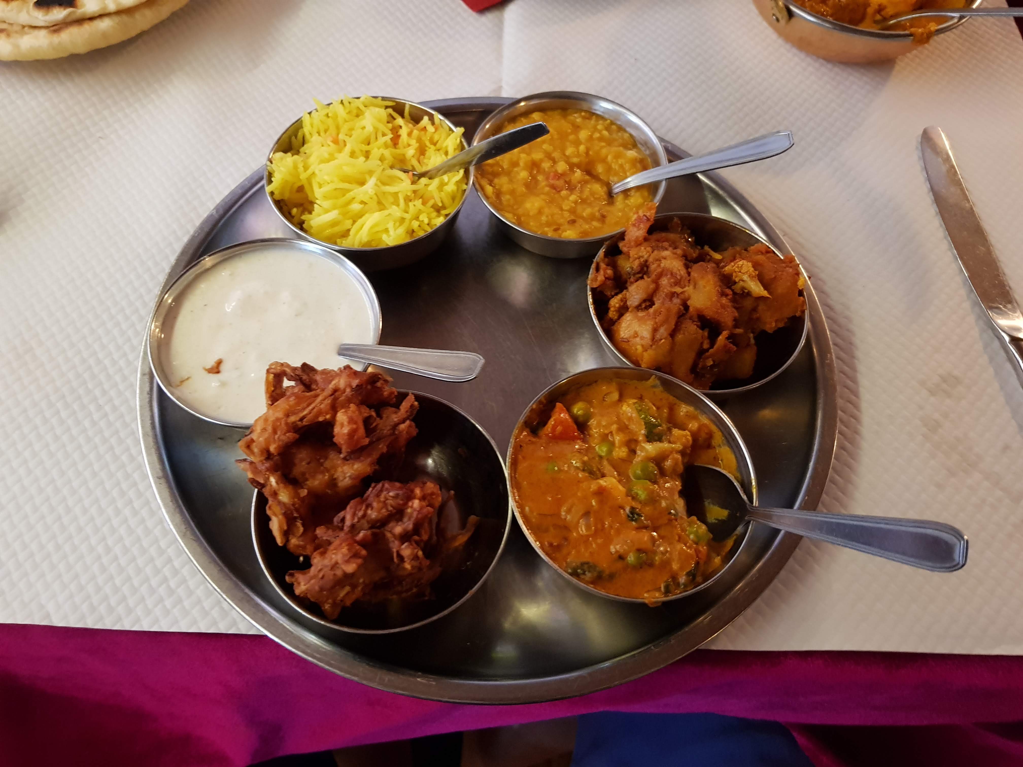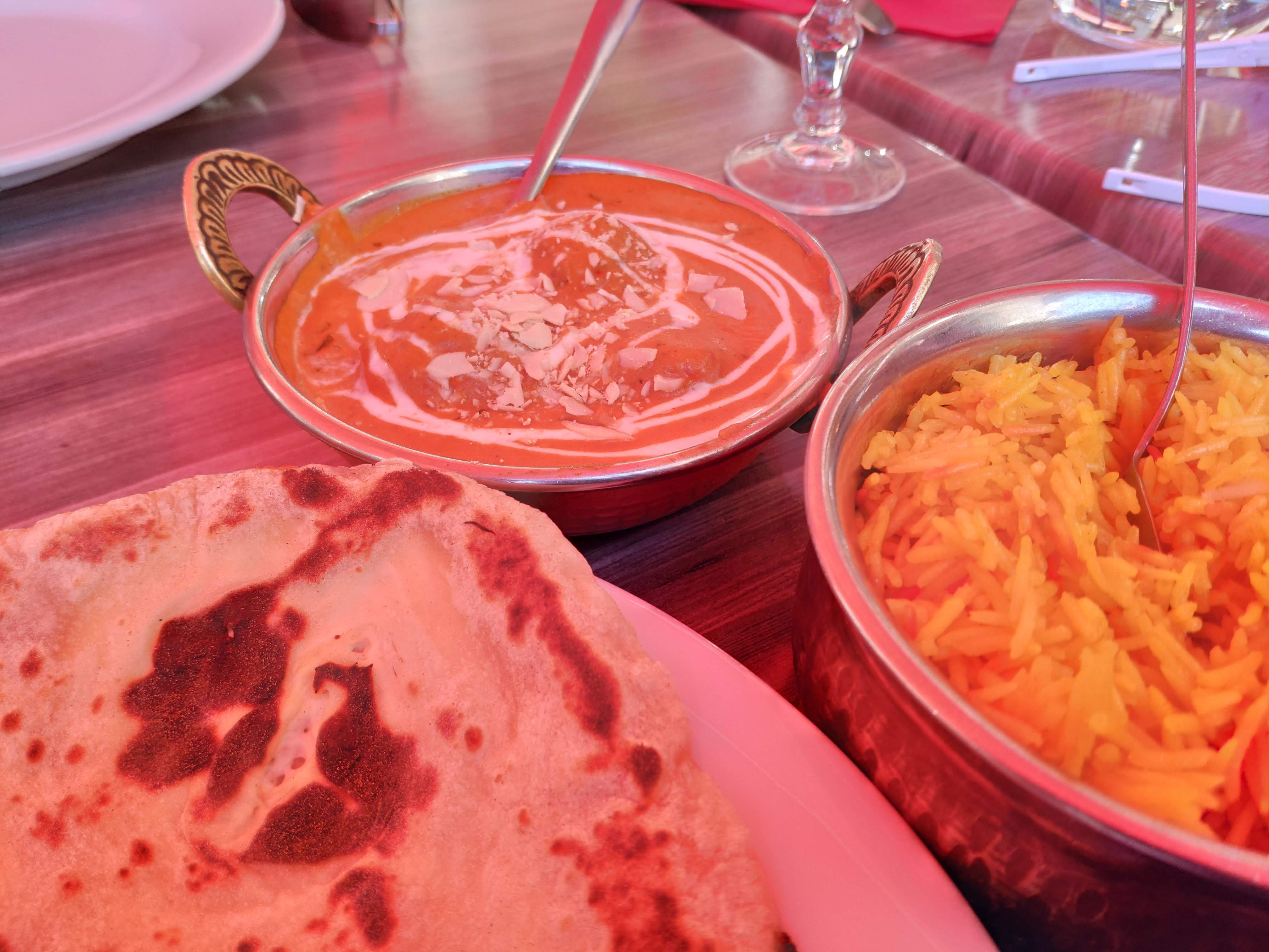 Fan de cuisine indienne nous avons pris à emporter nos plats préférés habituels (butter chicken et cheese naan) trouvant que les prix correspondait à ceux de Paris ou Lille, néanmoins nous n’avions pas remarqué que laccompagnenent riz n’était pas inclu dans le plat et qu’il fallait le commander en plus ce qui fait que le prix est tout de même un peu plus élevé au final ! Les plats étaient plutôt épicés mais néanmoins savoureux !