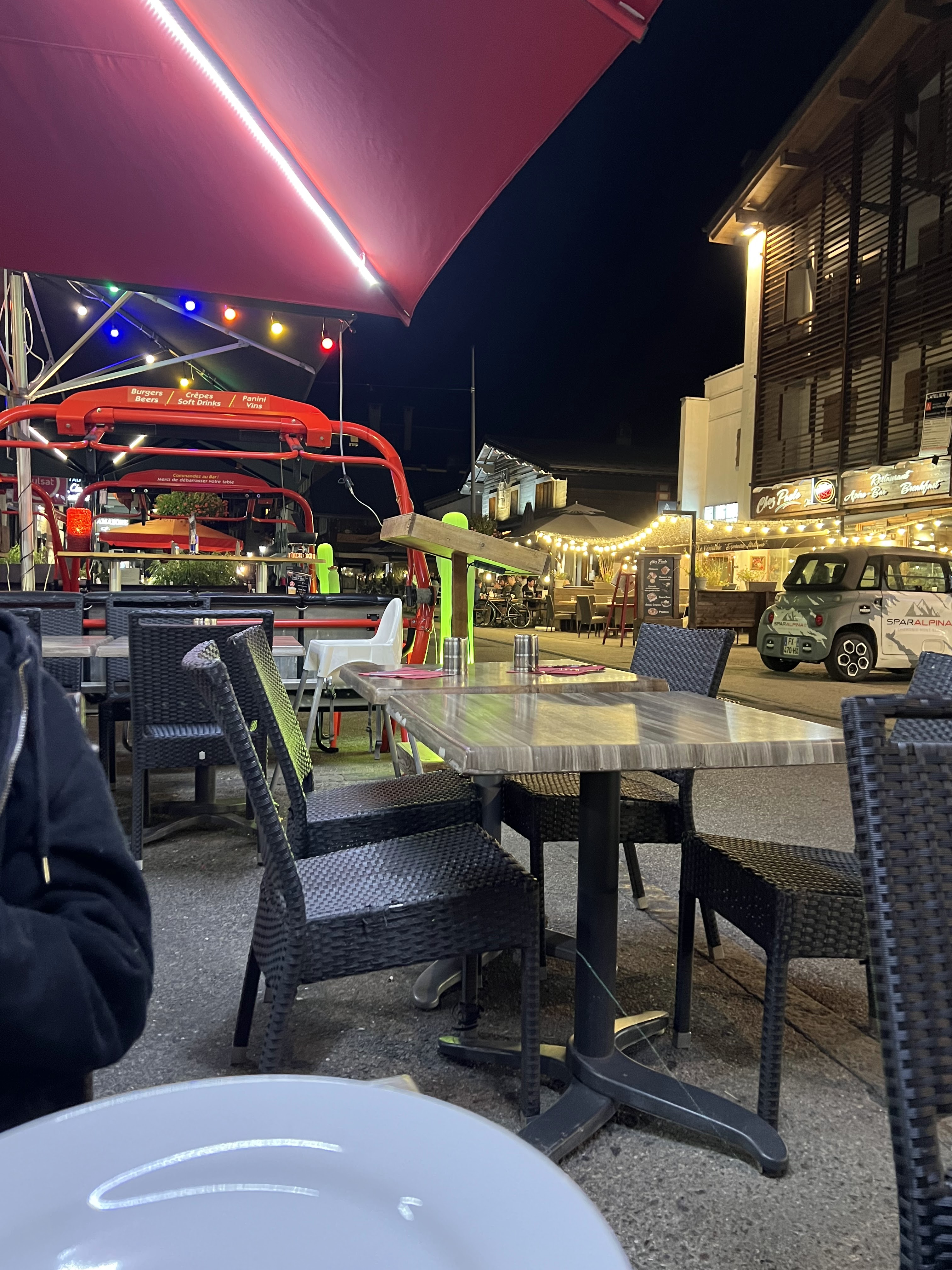 Repas en soirée sur la terrasse dans une rue piétonne. Merci pour ce moment agréable, cuisine savoureuse, service rapide et souriant.