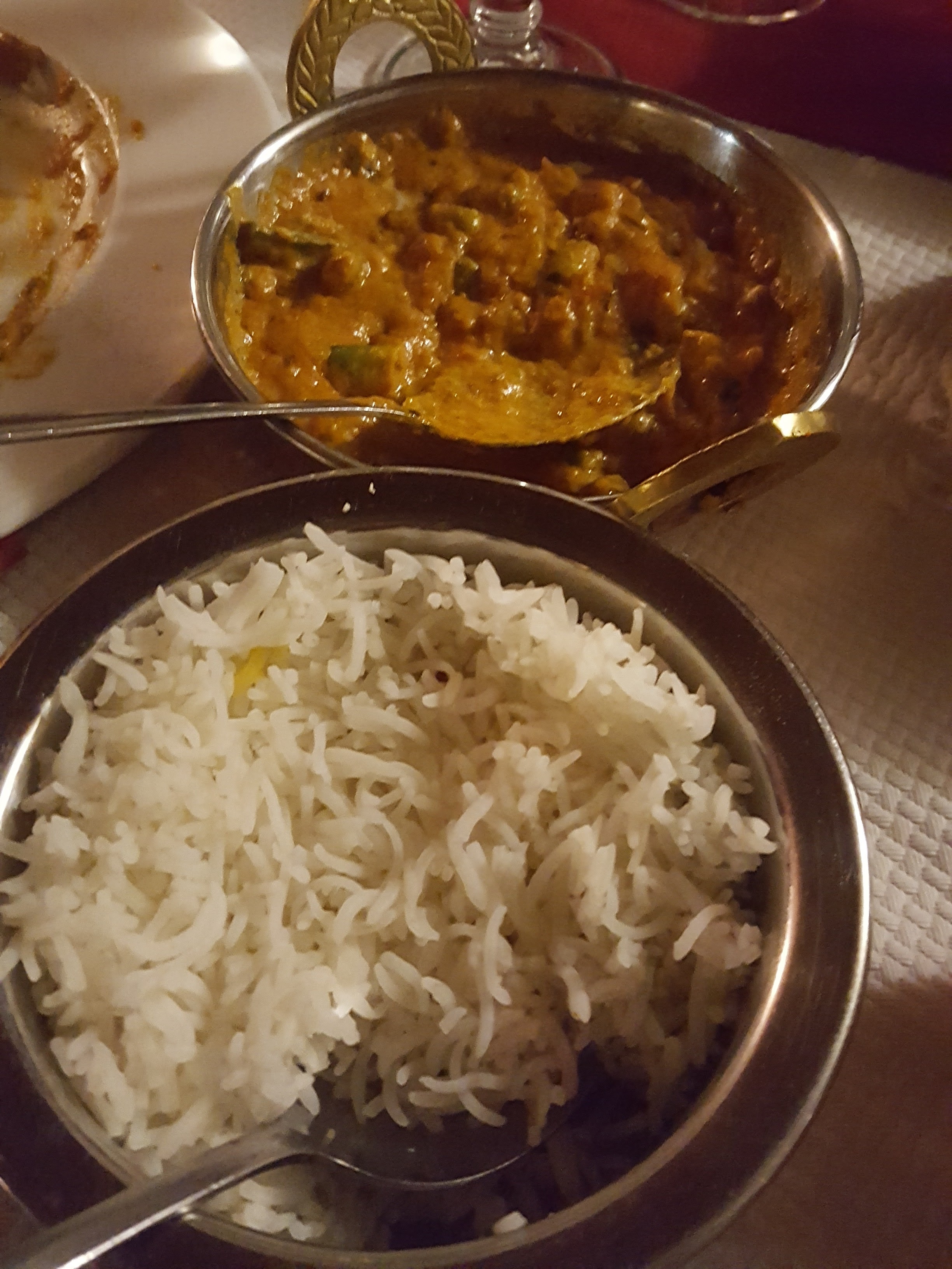 Restaurant plutôt bas de gamme, ce qui n'est pas un problème en soit. Sauf que les prix ne sont pas en rapport ! Il n'y a pas de menu. Tout est à la carte. Pour une entrée (samosa), un plat (poulet Curry), du riz blanc (non compris dans le prix du plat), un nan fromage, le montant de la facture est de 32 EUR. Beaucoup trop cher ! De plus, les serveurs sont incompétents, et ne parlent pas français, et le cadre n'est pas extra. Alors pourquoi 2* quand même ? Par ce que ce que j'ai mangé était bon.