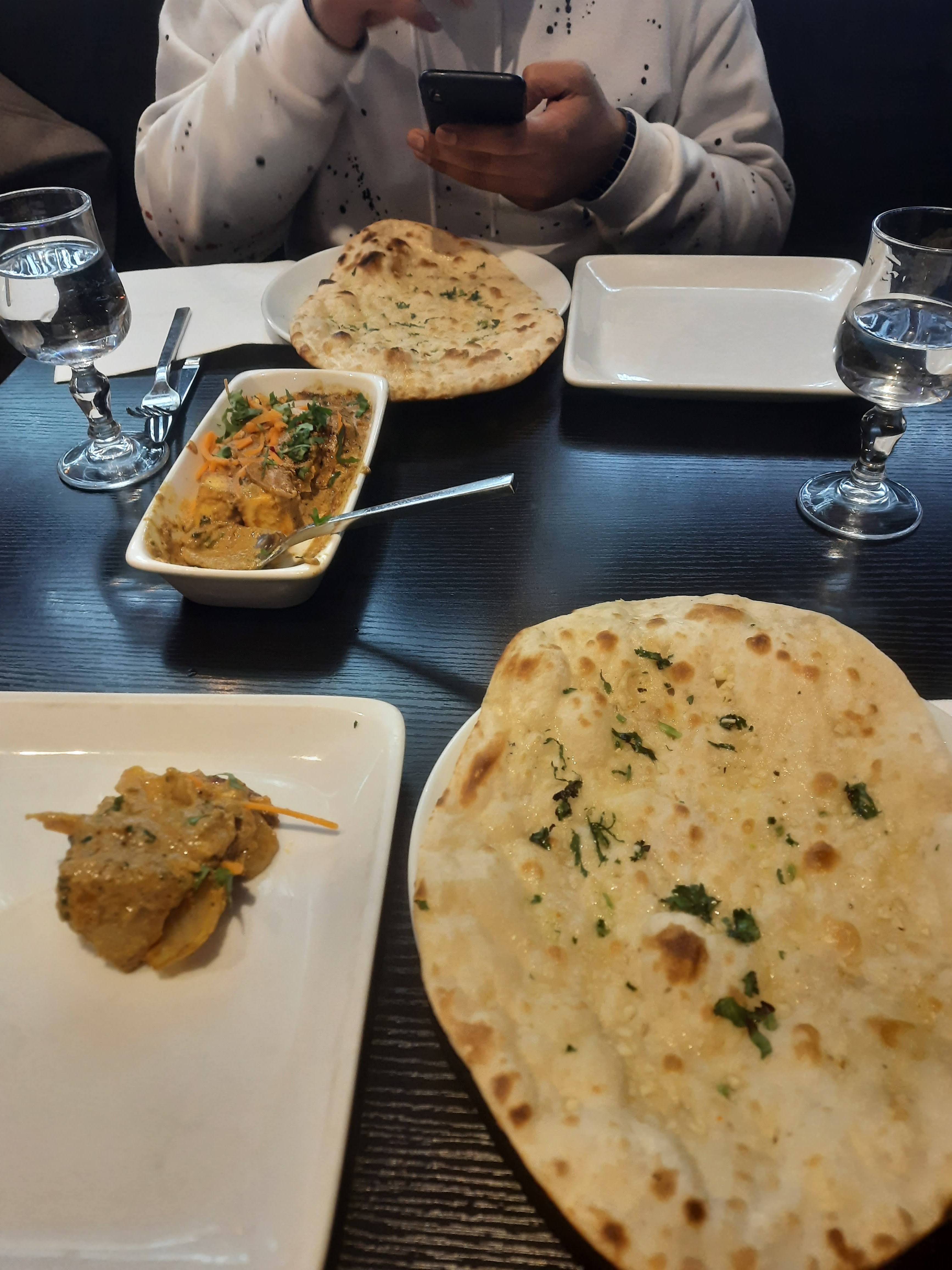 Cheese naan dégoûtants, imbibés de Kiri à outrance. L'agneau tikka masala était de vulgaires petits morceaux baignés dans une sauce. Beaucoup de plats et pains de la carte non disponibles. Très décevant.