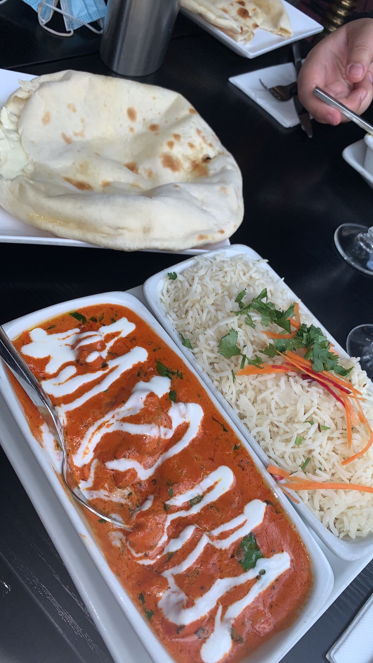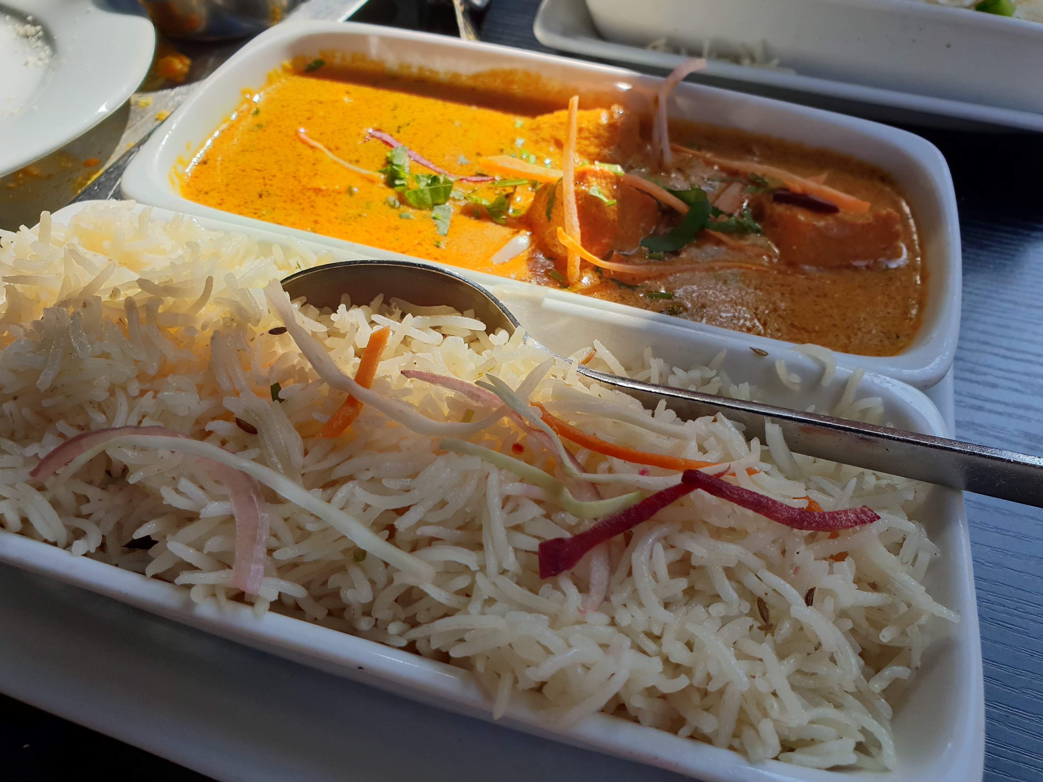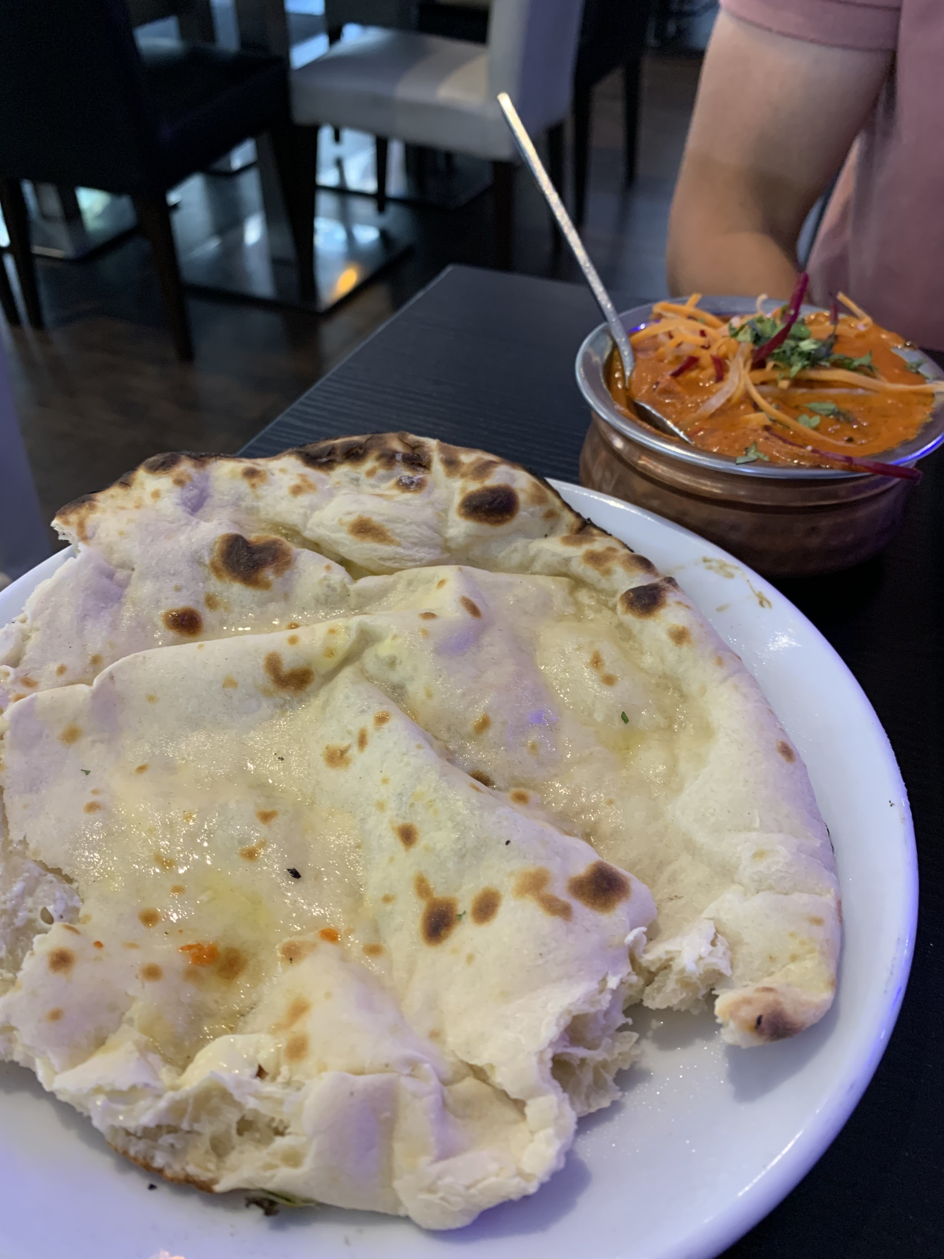 Plus cher que la plupart des indiens. J’ai cru que c’était à cause d’une qualité supérieure mais pas du tout. Butter chicken avec quasiment pas de poulet, naan à l’ail fade.