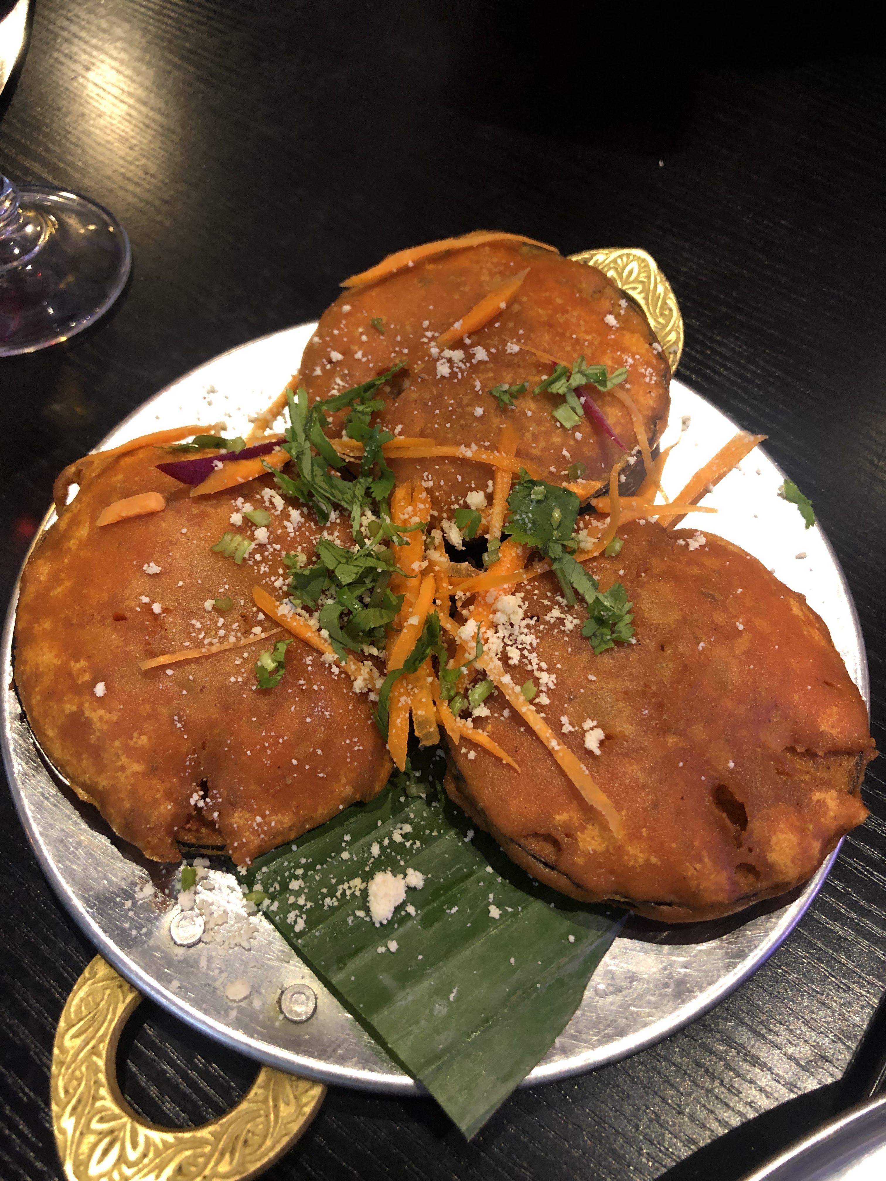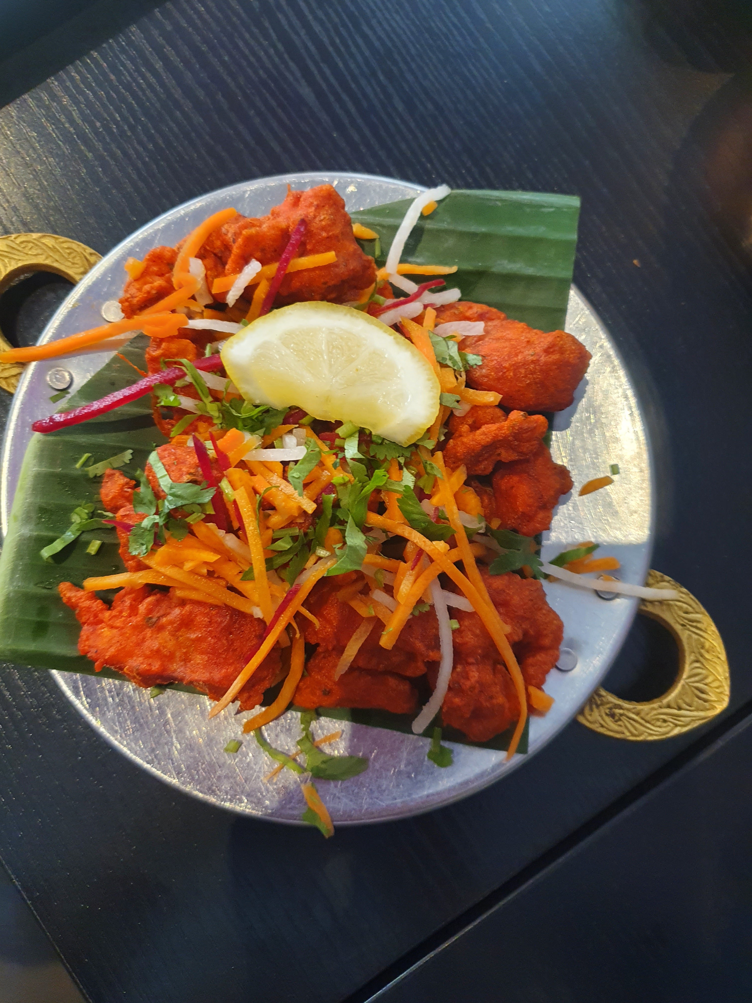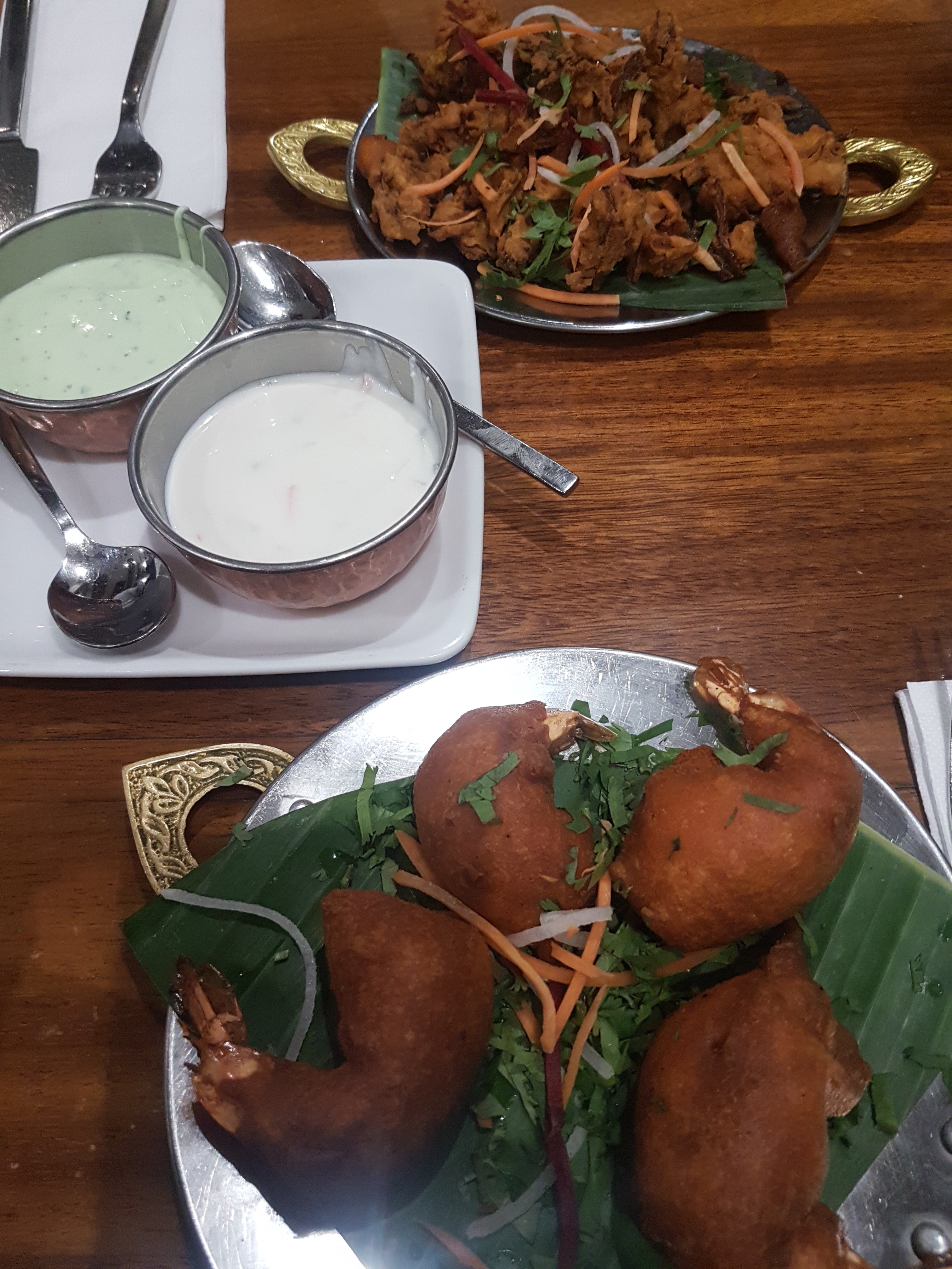 Accueil : Très accueillant, respectueux et à l'écoute avec soin particulier pour les jeûneurs Salle : Spacieuse et agréable avec possibilité de venir en famille ou à deux. Repas : Succulent Beaucoup de saveurs du soft au pimenté voir très hot avec un juste équilibre des épices Mention spéciale pour les beignets de crevettes (voir foto) Pour une touche sucrée et rafraîchissante le lassi banane ... une tuerie Les quantités sont plus que correctes Prix : Très abordable au vu de la qualité du repas et du service Ici moins de 60e pour 3 lassis, 4 entrées et 2 plats Me le suis noté en adresse quand je reviendrais sur le secteur.