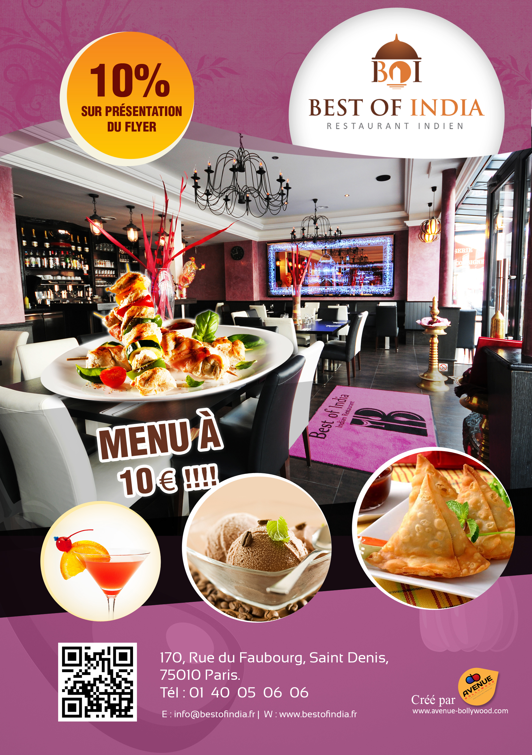 Voici toutes les informations sur le Restaurant indien moderne Best of India qui ce trouve au 170 Rue du Faubourg Saint-Denis, 75010 Paris (75). Sur cette fiche vous trouverez les photos, l'adresse, les horaires d'ouverture, le numero de téléphone et les avis clients.Vous pouvez églement rédiger un avis si vous le souhaitez en bas de page.