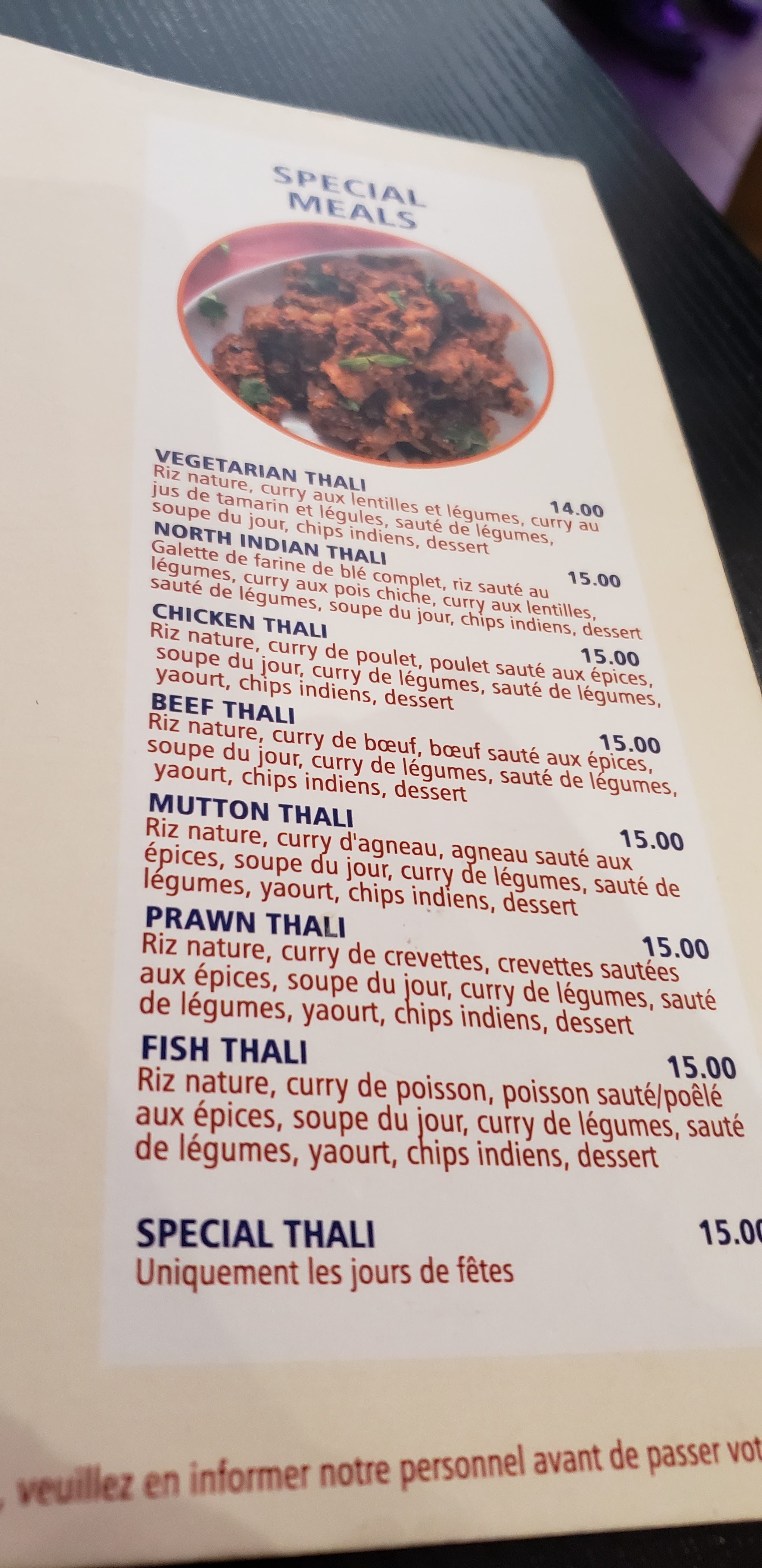 J’ai pris un Biriyani Poulet, c’était le meilleur que j’ai goûté, la bouffe est très bonne, l’endroit et propore et le service est bien. j’y reviendrai sans doute, et je le ferai découvrir à mes amis
