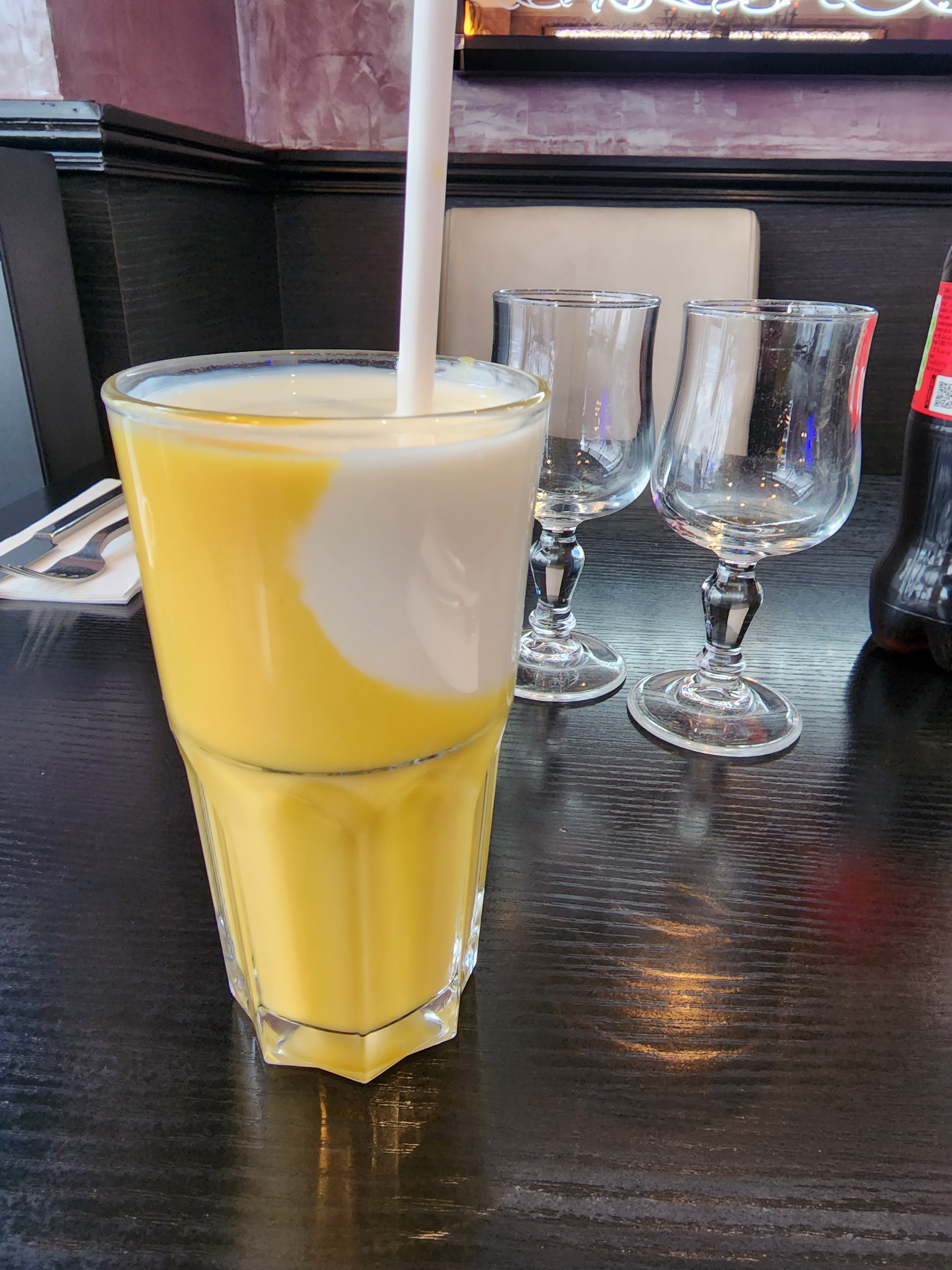 Plat à emporter avec cheesenaan et lassi mangue. Très déçue des plats au regard des commentaires. Le lassi avait un arrière goût.