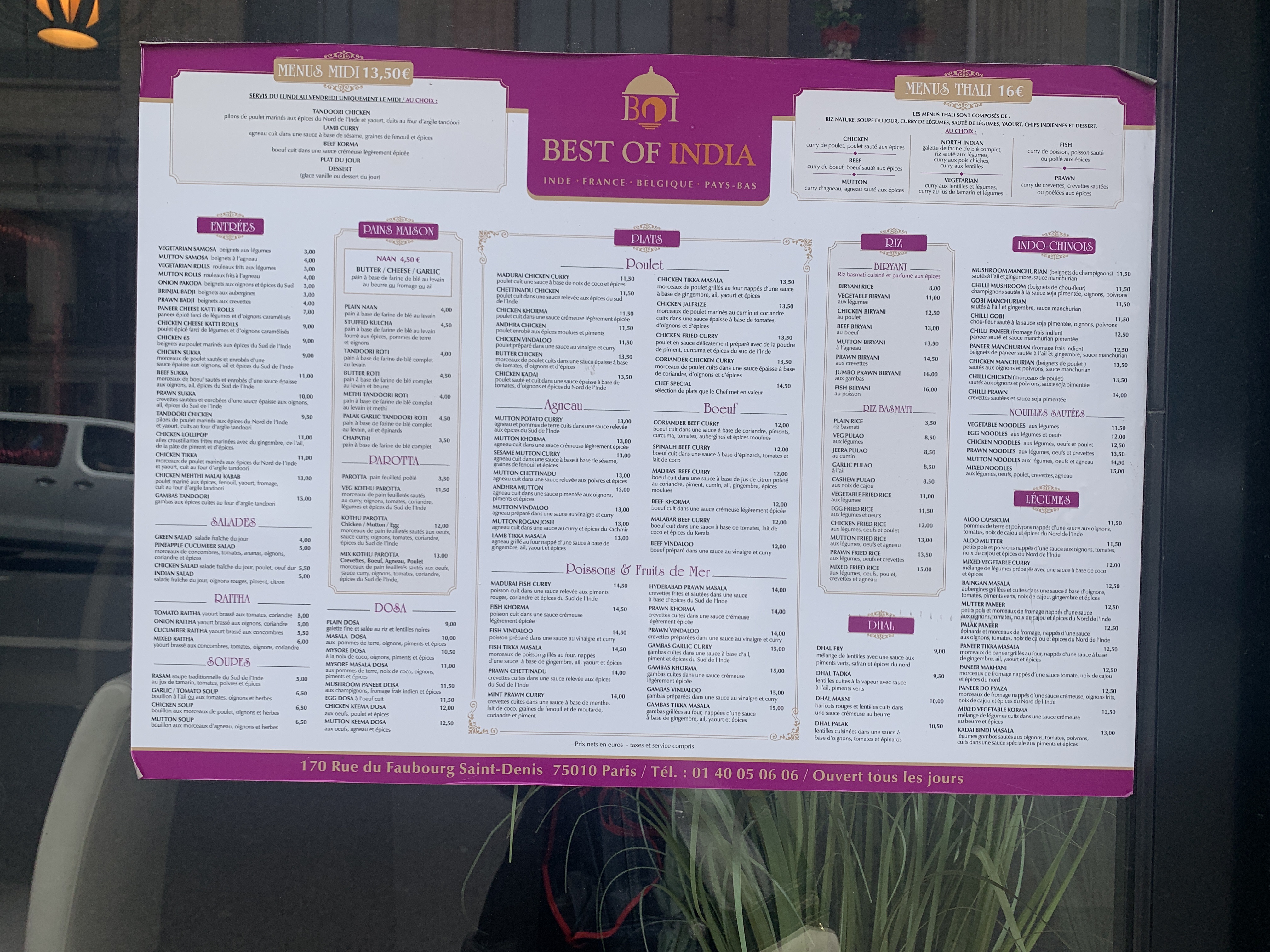 Je suis allée déjeuner avec mes parents dans le restaurent « best of India » en face de la Gare du Nord, et nous avons tous les trois beaucoup aimé la nourriture, l’accueil, le lieu en lui même. C’est propre et confortable, la déco est de bon goût. Bon rapport qualité prix. J’insiste sur la qualité de la viande qui est vraiment top