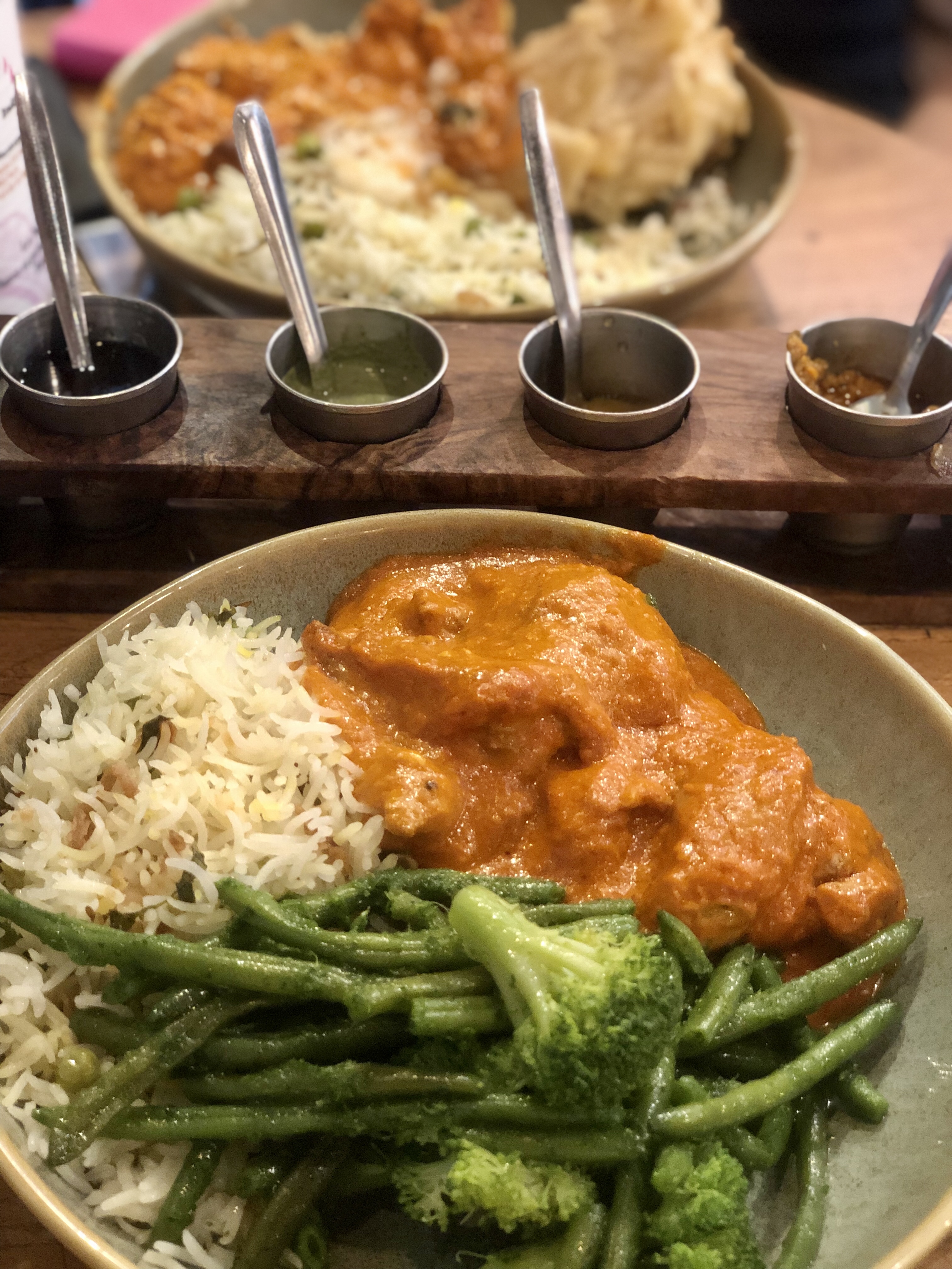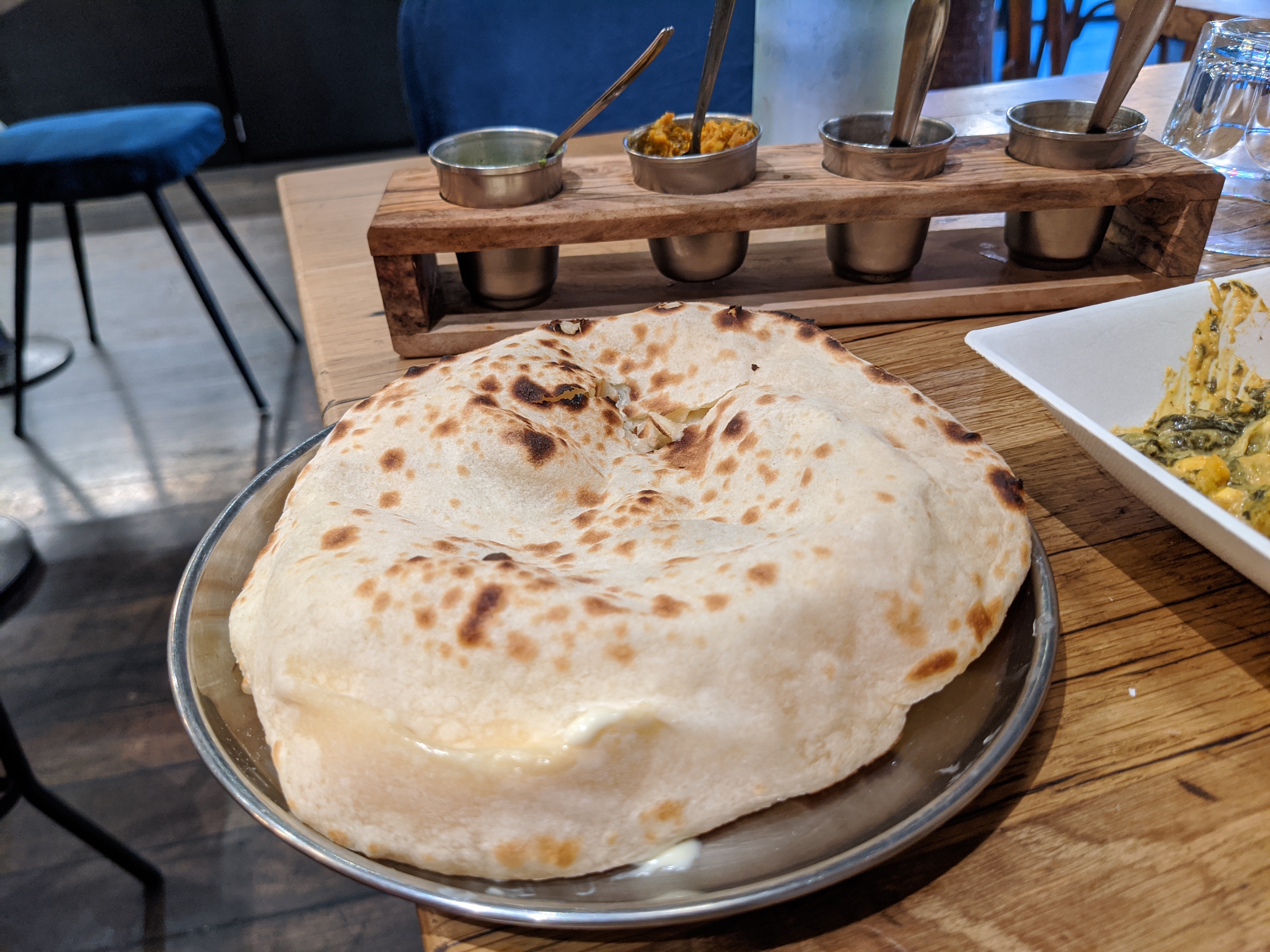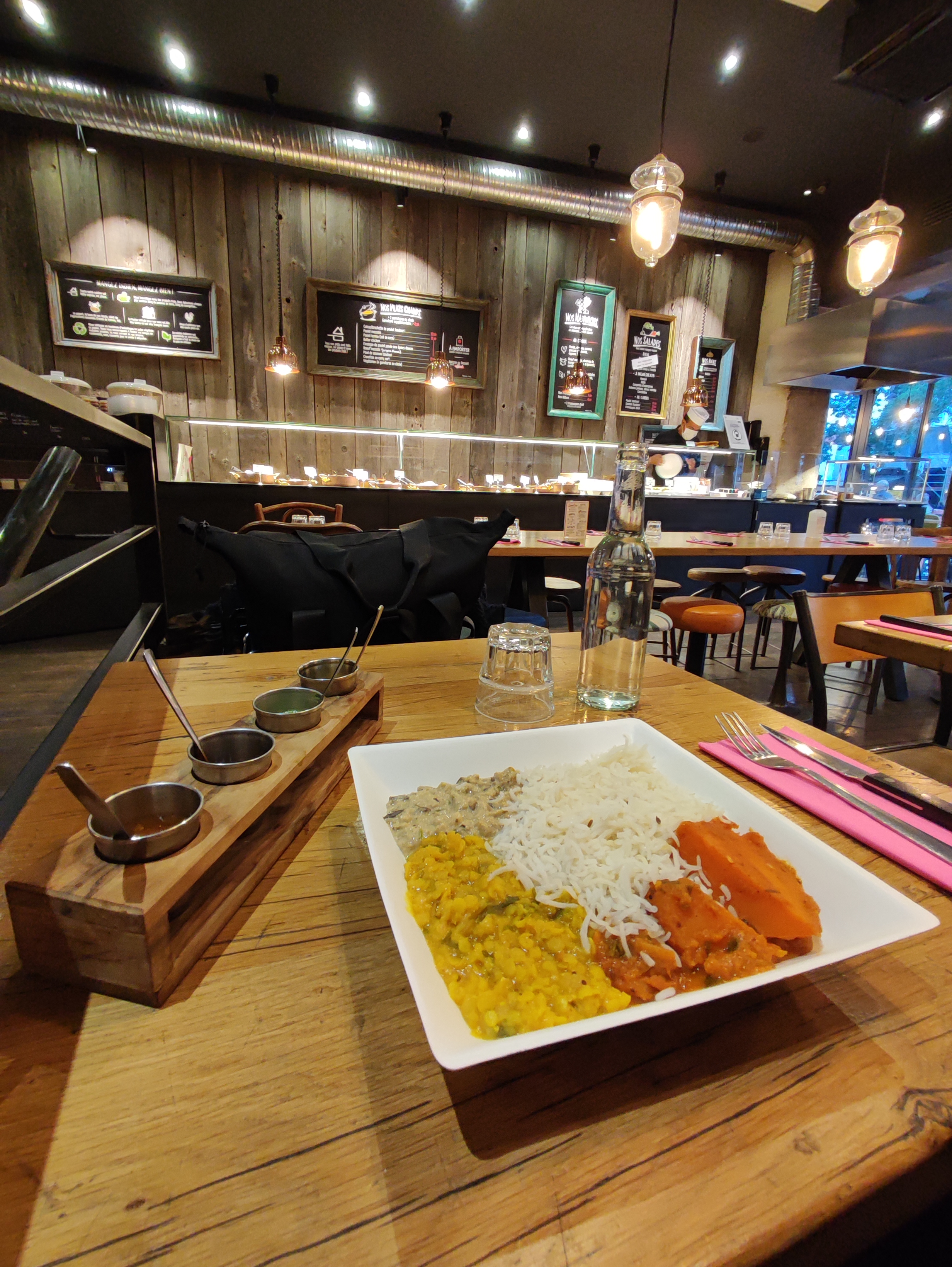 Super cool, j’adore le concept. Indien des temps modernes, une équipe chaleureuse, ils te décrivent chaque plat pour que tu puisses concocter ton assiette avec goûts préférés. C’était healthy et very delicieux ! I love it ! Nous avons même reçu un dessert gratuit (cake à la patate douce, trop bon !) Les cheese nan sont fait à la minute et excellent à combiner avec le plat. À bientôt c’est sûr !