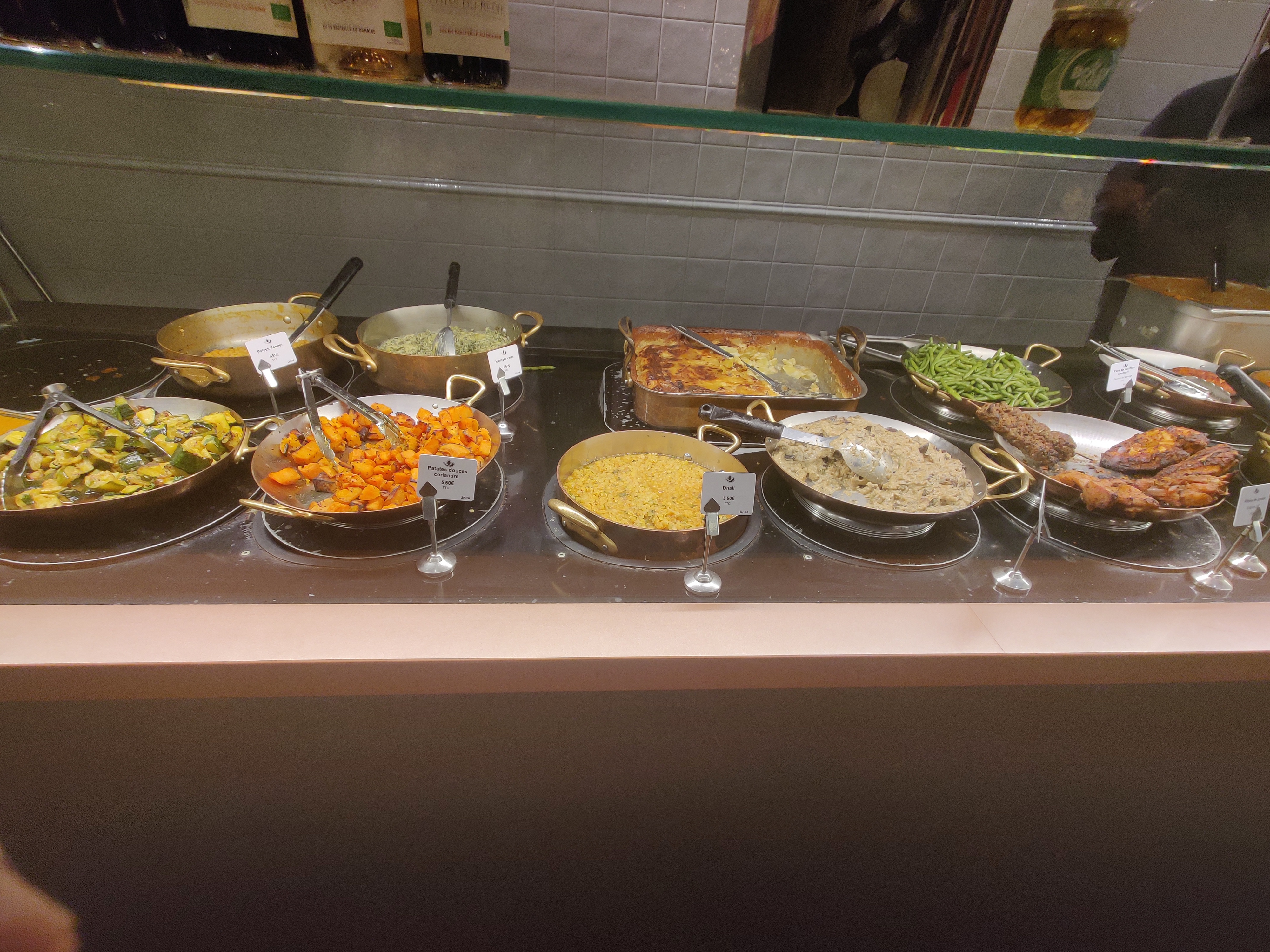 Assez déçue que ce que j'imaginais. Les plats restent généreux avec la possibilité de choix. Mais le problème c'est l'emplacement surtout la grande table qui gêne. Et pour le service réservé ou pas c'est difficile de se repérer. Même la réservation il y a pas d'endroit où on indique table réservée.