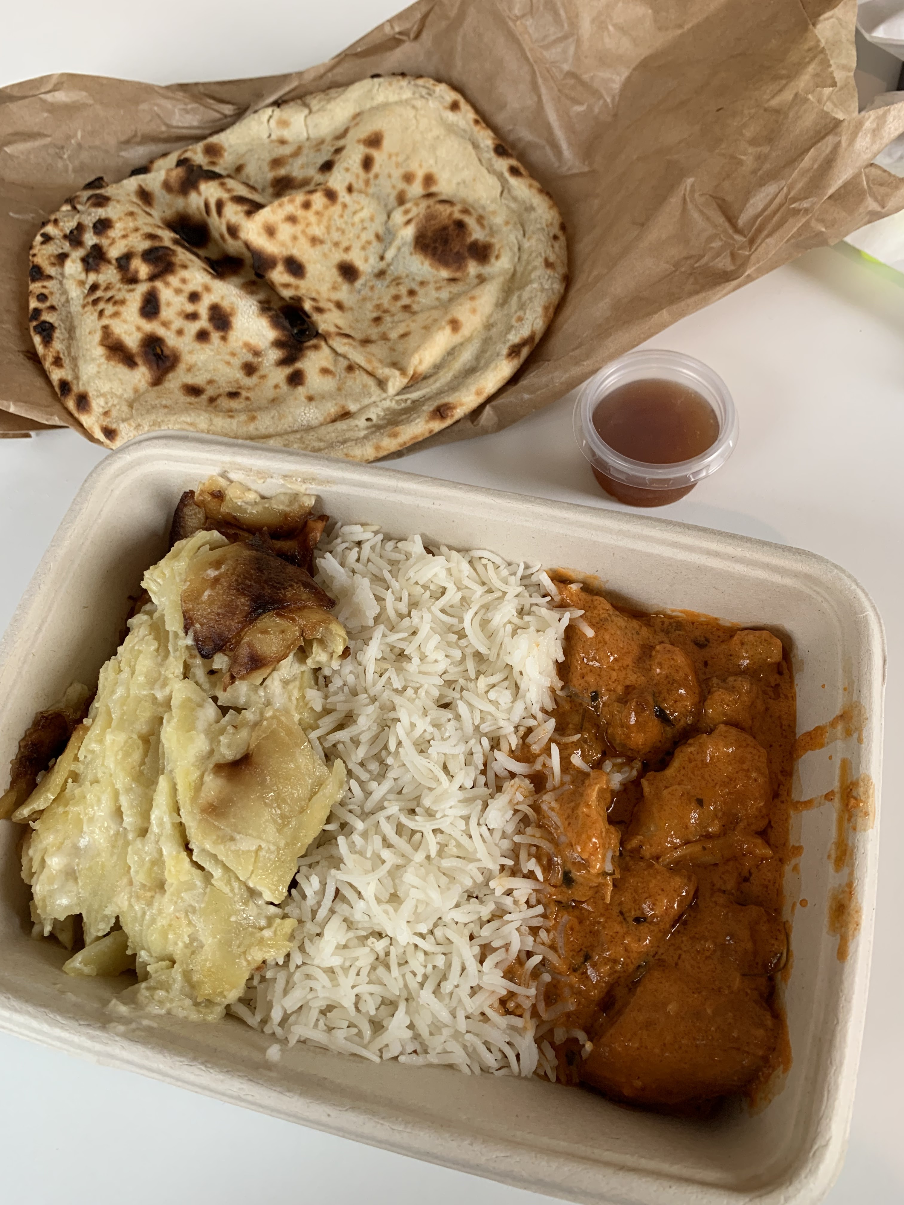 La nourriture proposé a l’air appétissante, propre et épicé. Ce restaurant m’enlève toute inquiétude au niveau sanitaire, que j’aurai pu avoir avec un autre restaurant indien! Chapeau, le cheese nan était très bon et les ingrédients à l’intérieur également👌🏽à l’intérieur il y’avait du butter chicken, c’était vraiment appétissant. Je ne recommande pas de manger un naan dwich à emporter car c’est très salissant. Vaut mieux manger sur place 😇