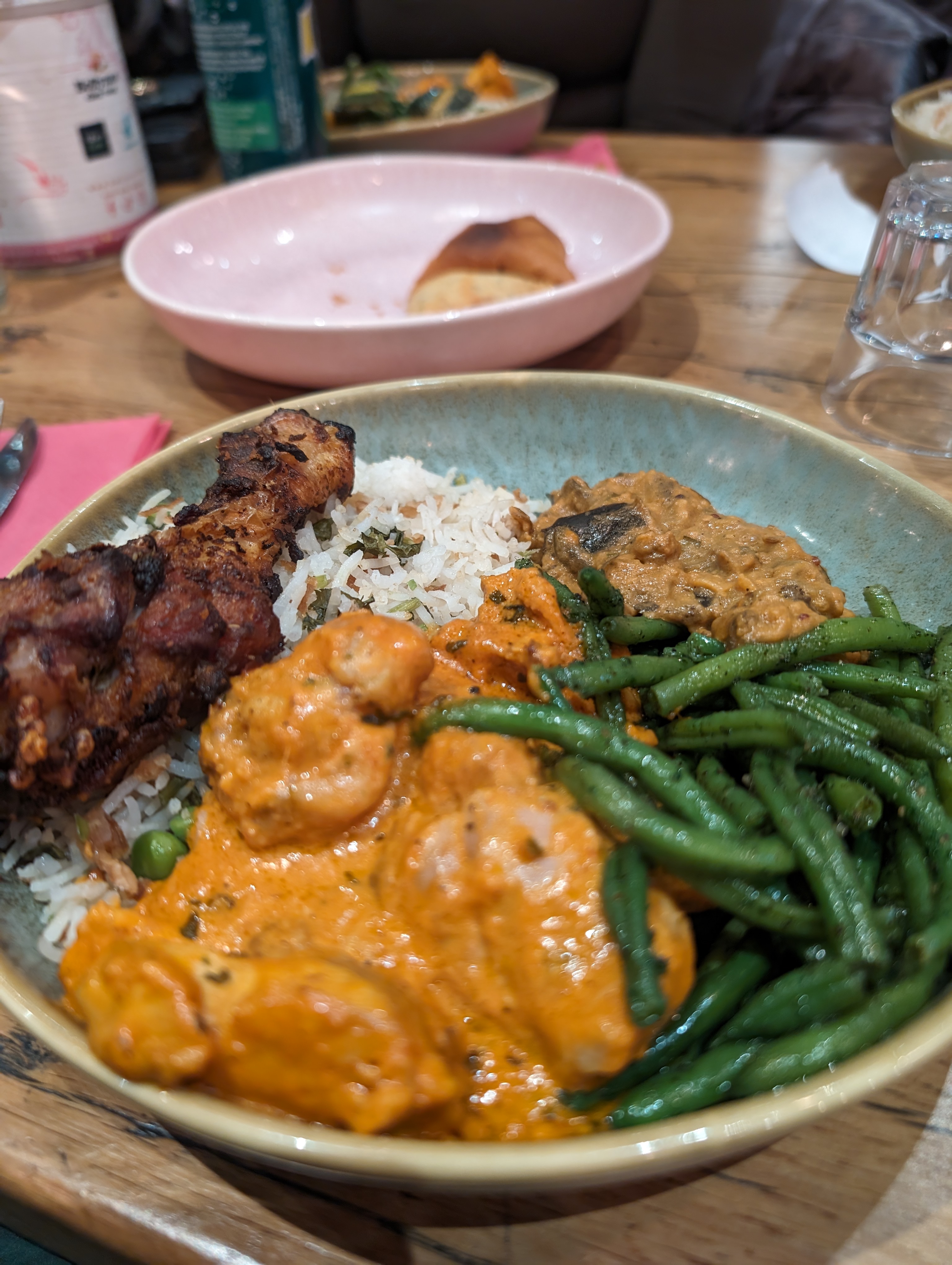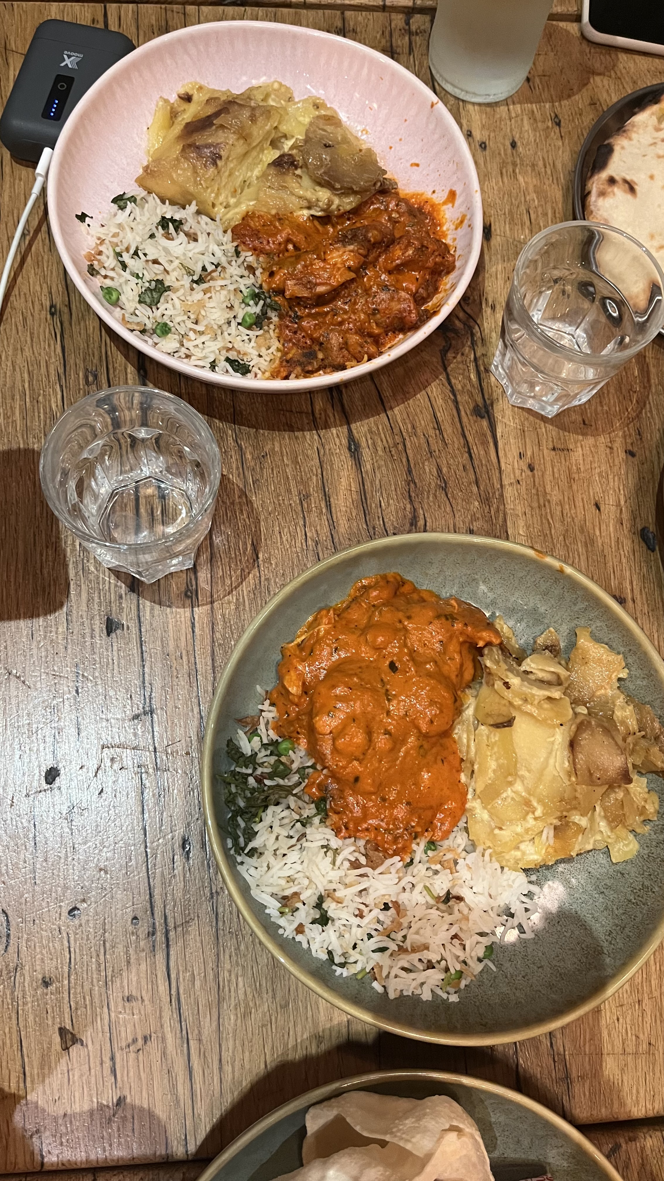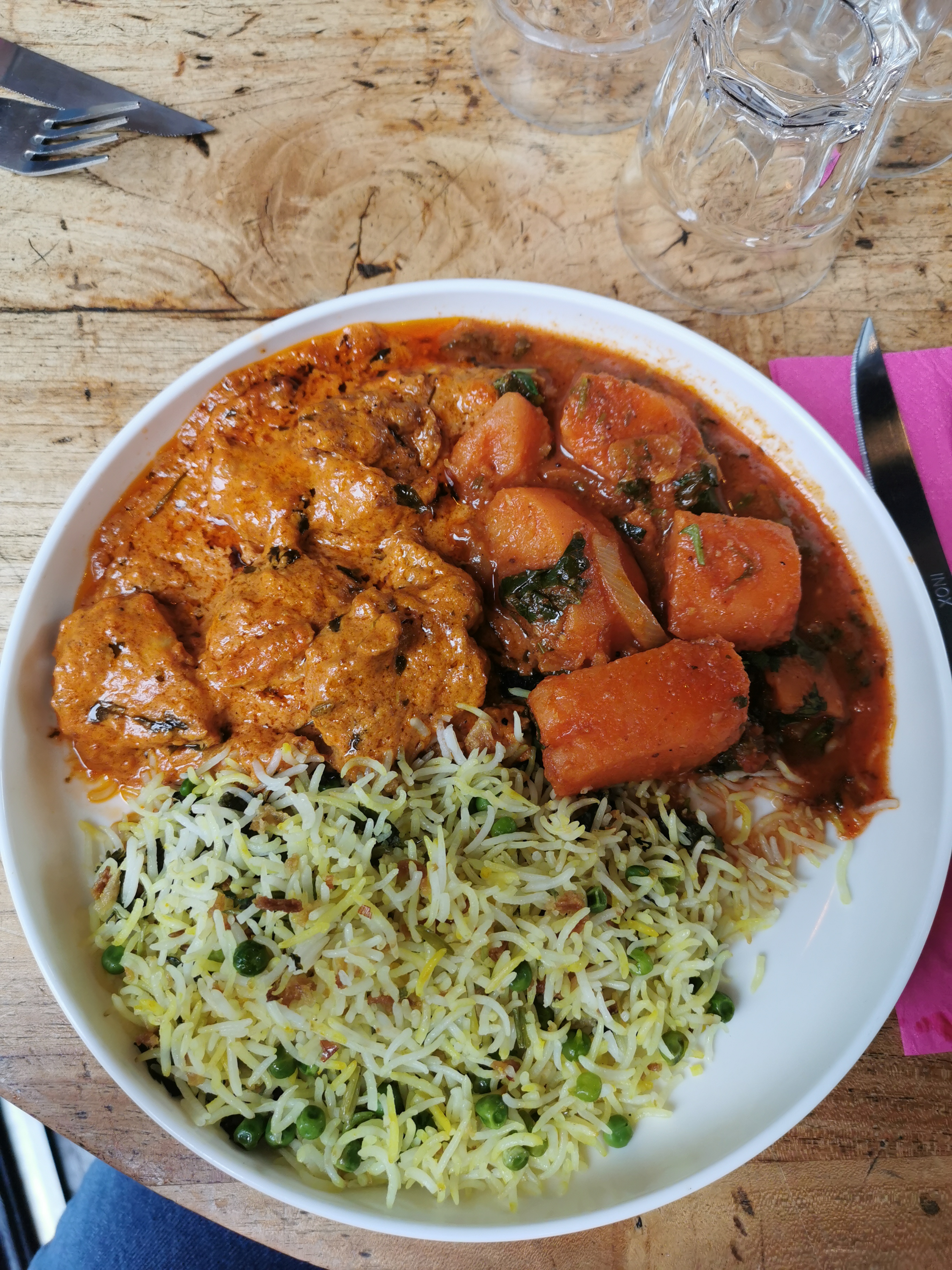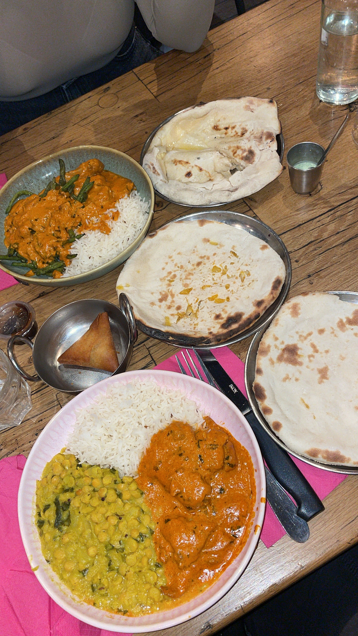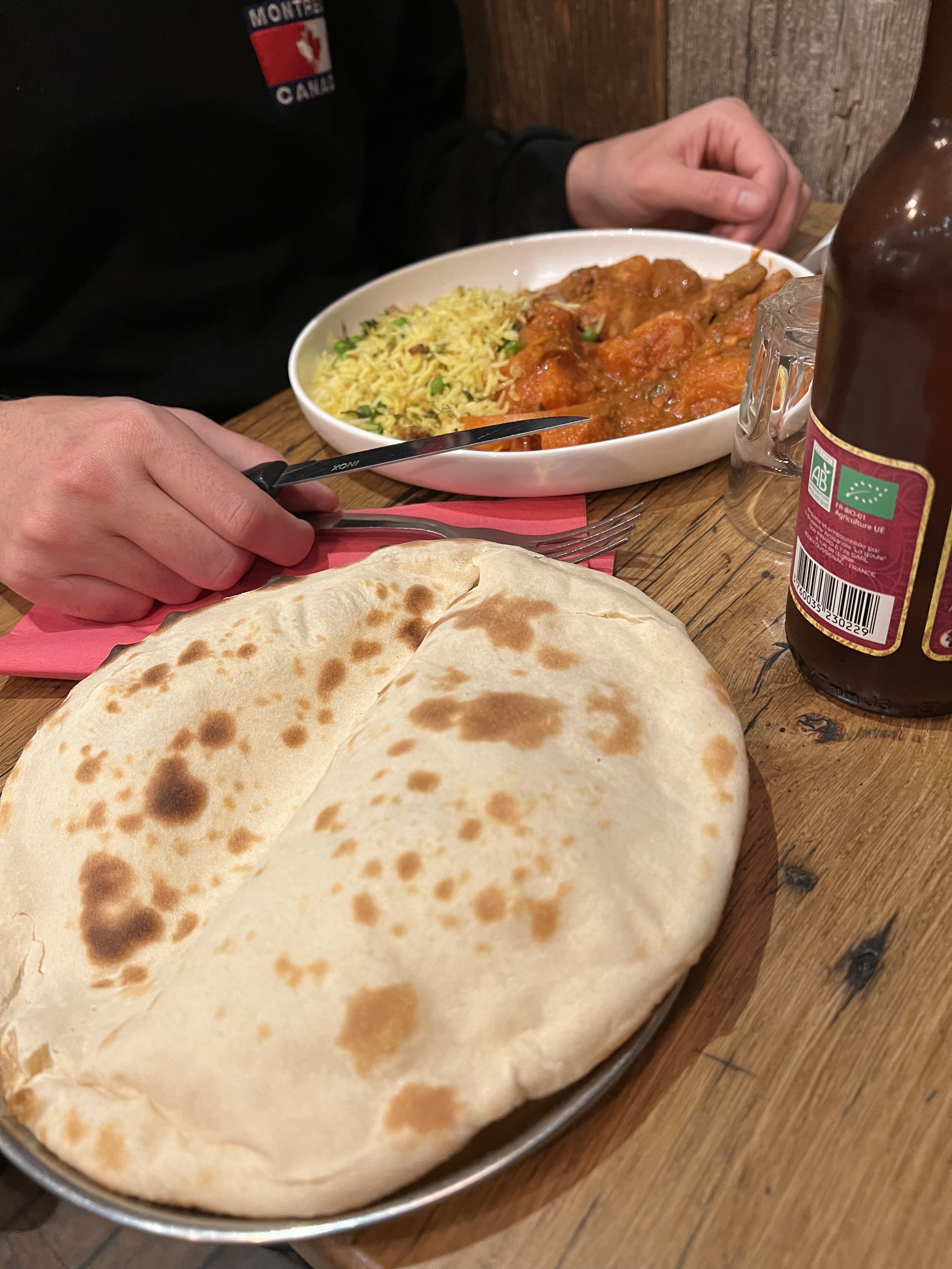 Ça était très bon( riz , chicken masala, butter chiken , nan fromage/ail ) accueil très chaleureux et personnel sympa