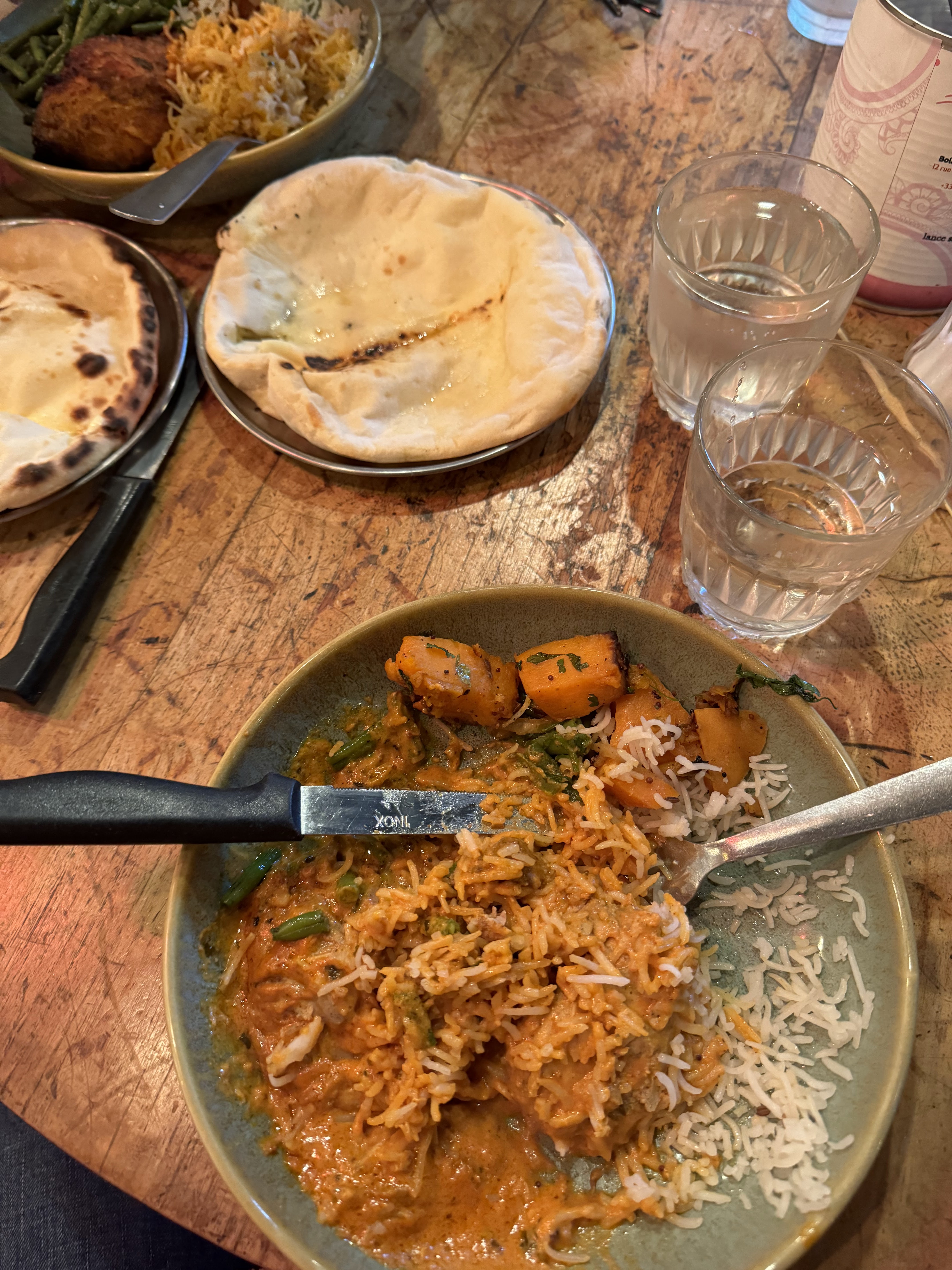 Nous nous sommes arrêté devant par hasard et non sans regret ! Personnel très sympathique et serviable, les plats sont super bons (patates douces à la coriandre peut-être trop épicées à mon goût ahah) mais les naan cheese… 🤤🤤 on a adoré ! Et en plus c’est vraiment pas cher pour la belle assiette que c’est je trouve ! Merci à vous pour ce bon repas 🥘