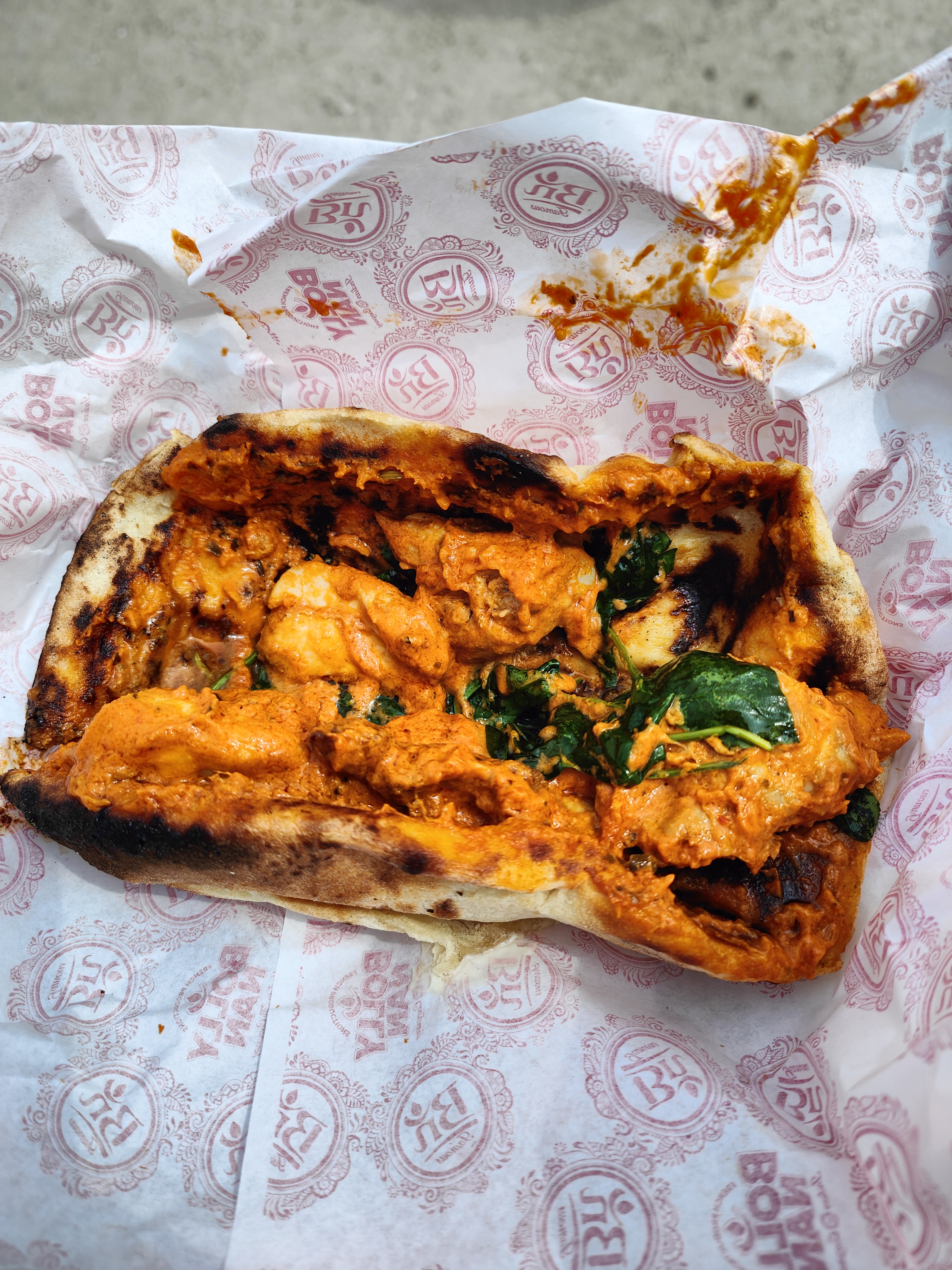 Personnel super accueillant, tout est fait sur place, on a goûté le nandwich avec une base de nan fromage avec du butter chicken. C’était super bon avec des pousses d’épinards. Rien à dire, de la bonne street food indienne. J’y retournerais !