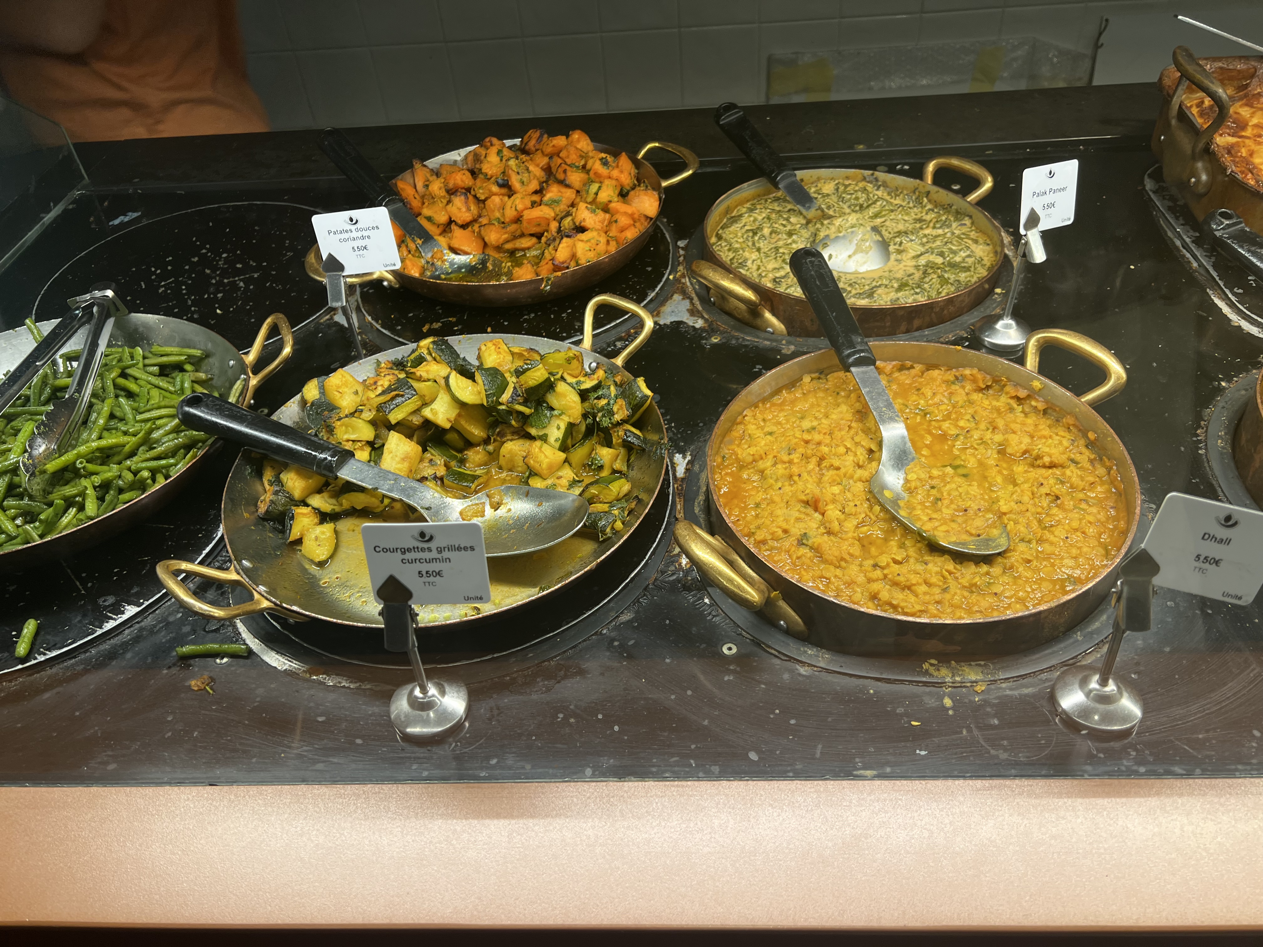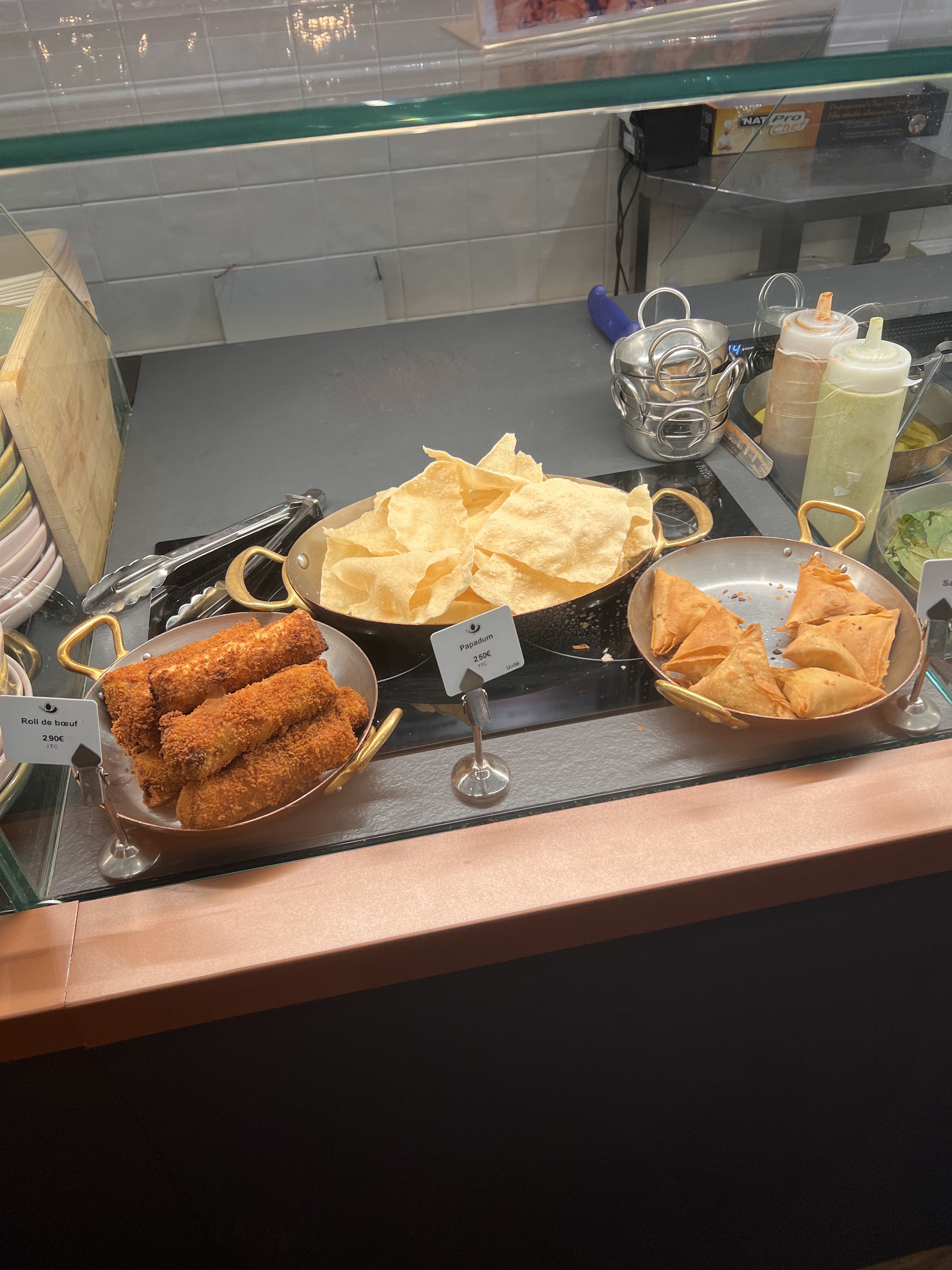 Très bonne cantine indienne Beaucoup de choix, portions assez copieuses, ingrédients frais et de qualité, plats avec beaucoup de goût, malgré qu’ils soient réchauffés Cependant les nans sont fait sur place Service rapide et impeccable Un excellent choix à la fois le midi comme le soir