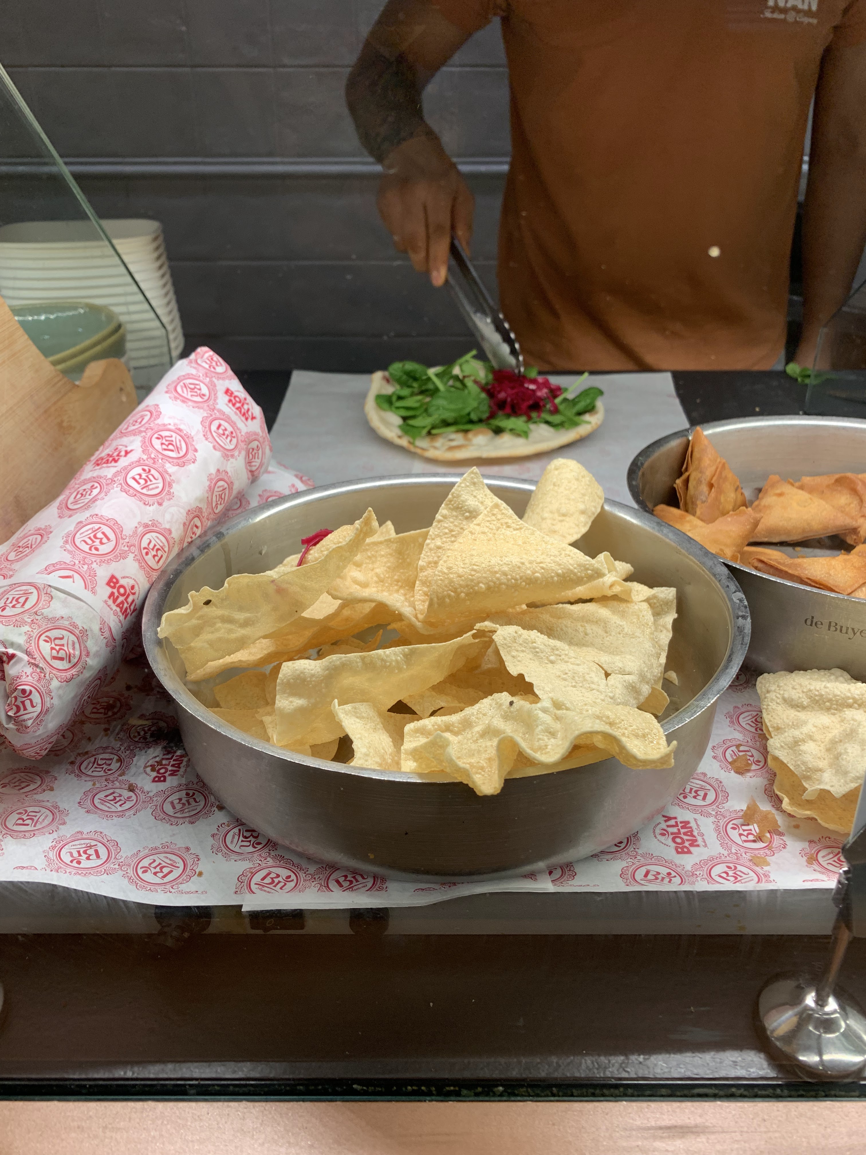 Joli concept pour manger indien bon marché. Ambiance street food, pas énormément d'options par rapport à un indien classique, mais service agréable, ambiance resto, nans faits sous nos yeux, et bonne qualité