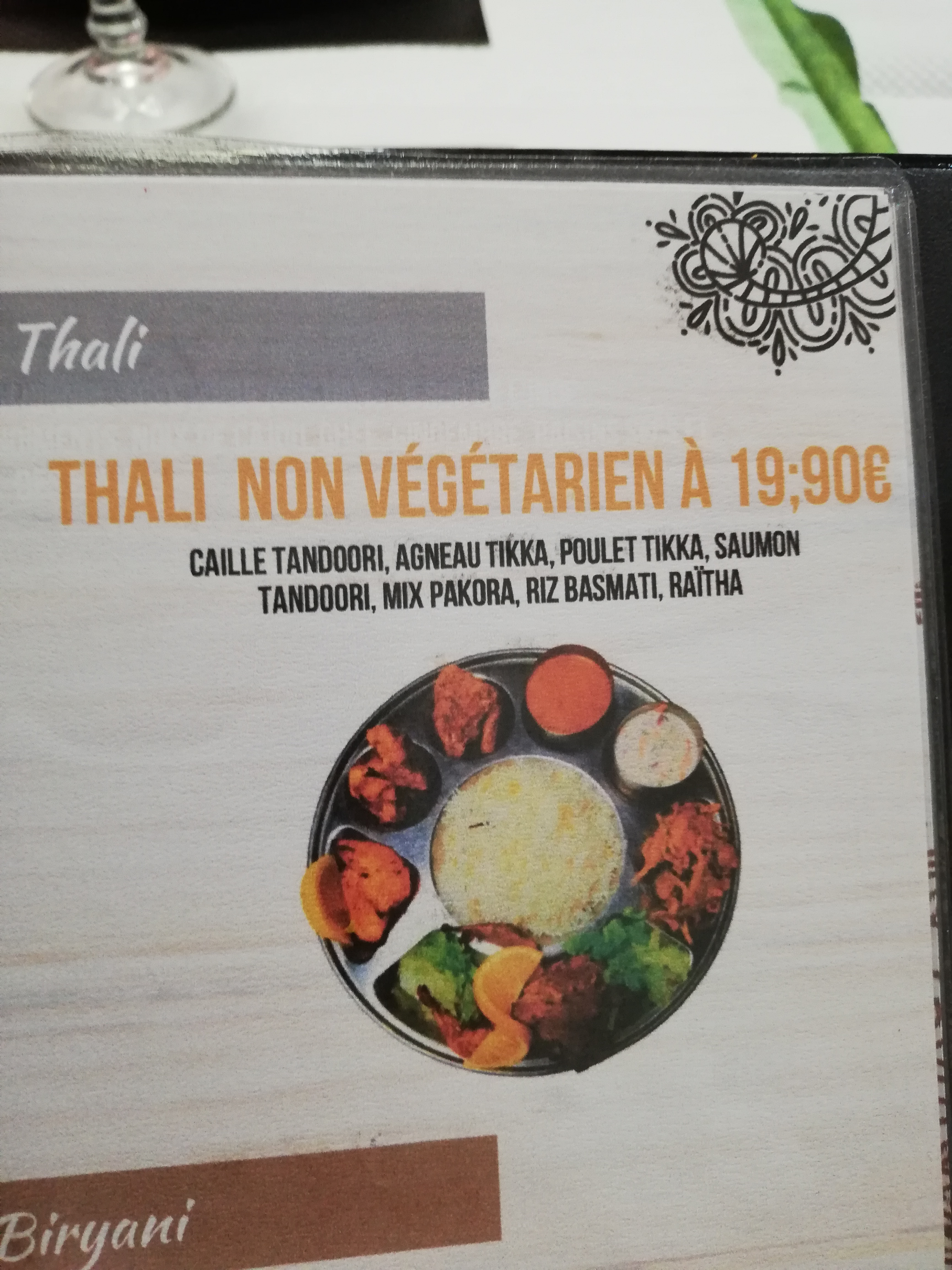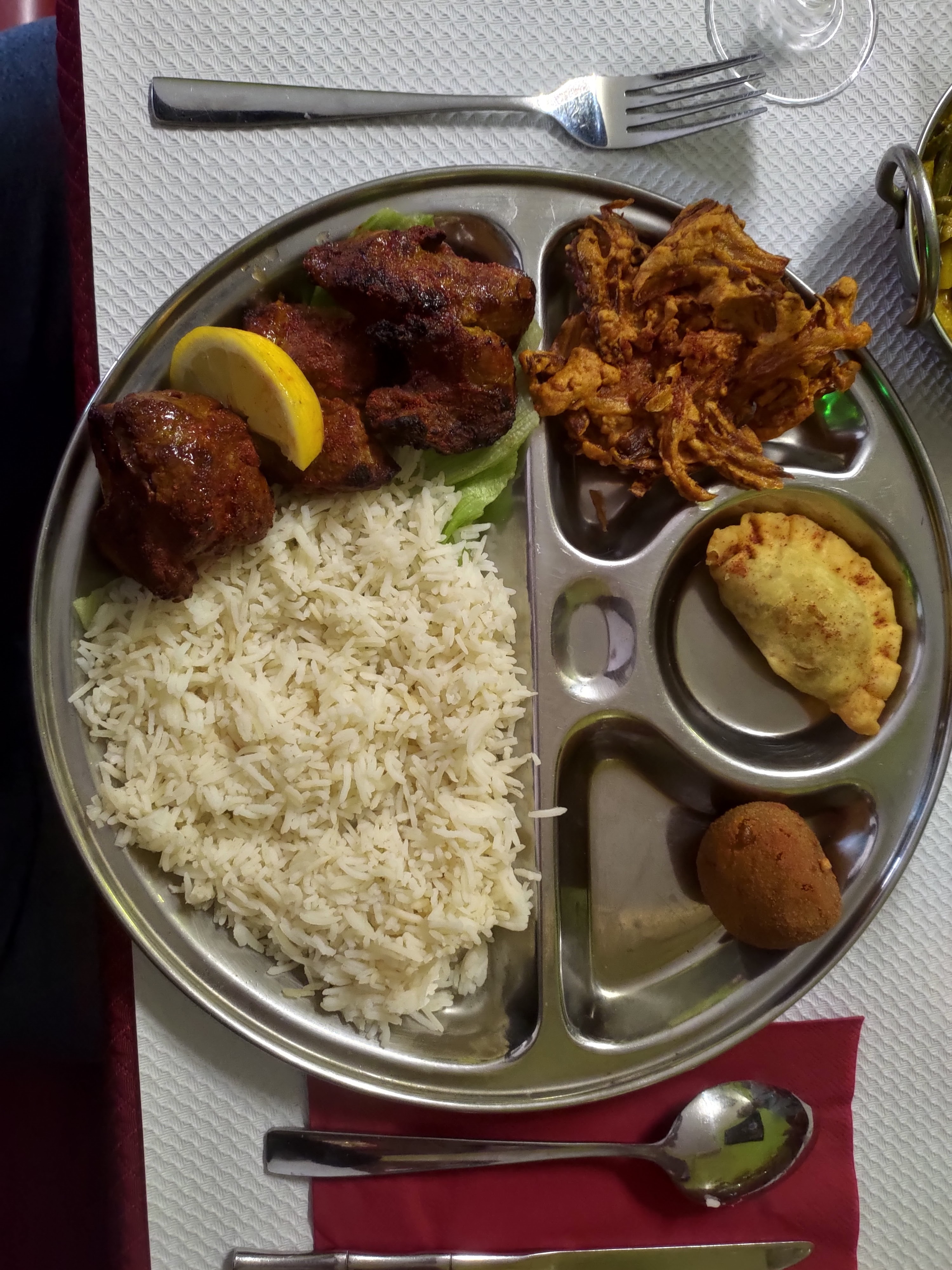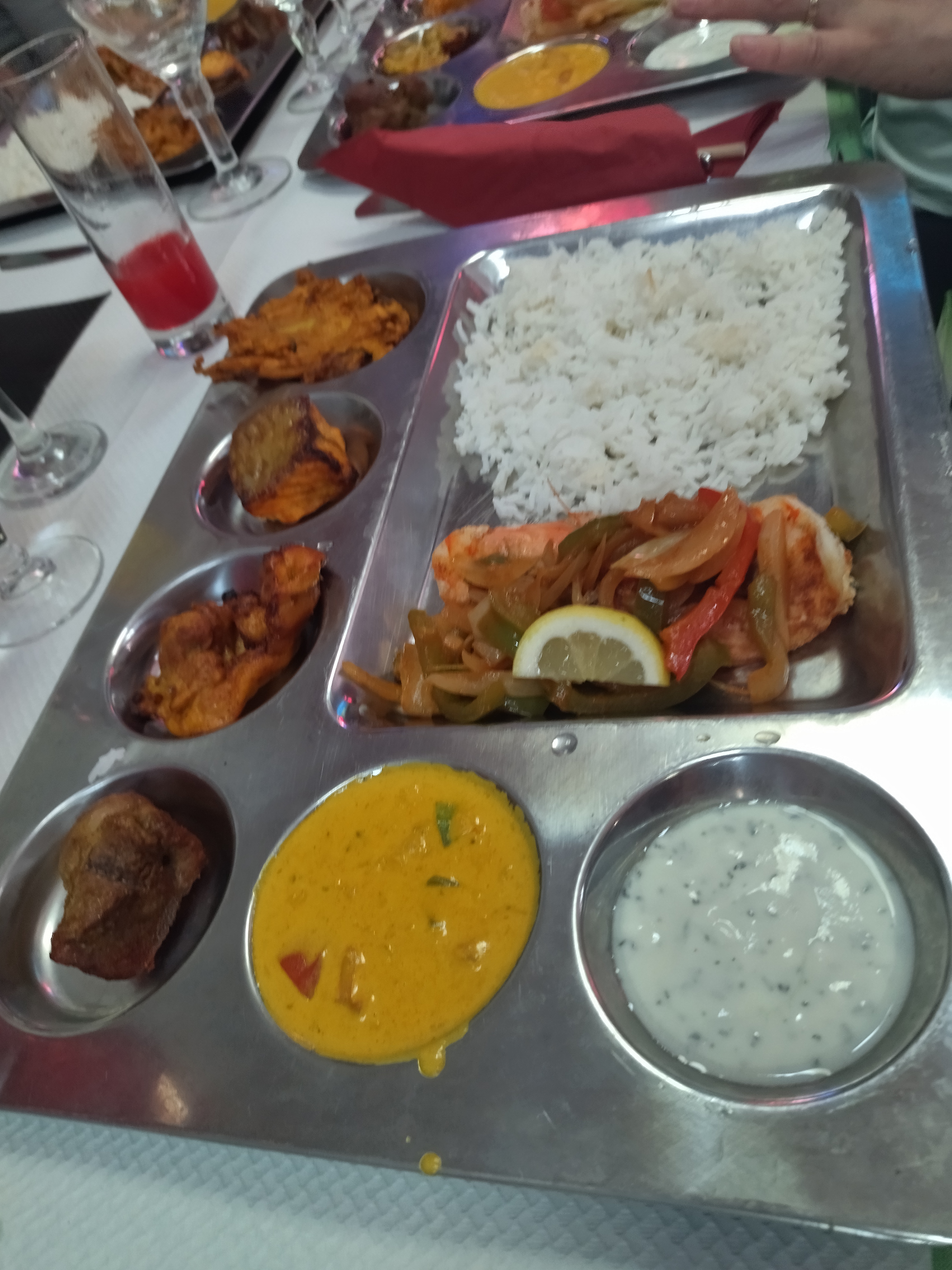 J'ai goûté le thali végétarien a 16€50. La quantité est présente pour les plats en sauce mais un peu légère pour les fritures. J'ai pris l'option a emporter. Le format plat a compartiment n'est pas très pratique (encombrant et difficile de manger l'accompagnement avec les sauces). Le service a été rapide et le personnel très aimable. Dommage qu'il ne prenne pas encore les cartes restaurant UP.