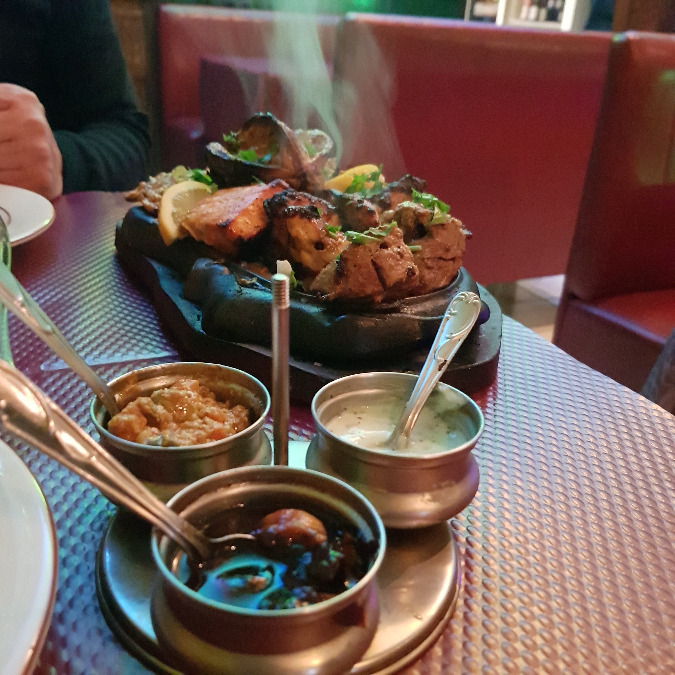 Du jamais vue ! Durant cette soirée, nous avons mangé des plats pas extraordinaires, (naans dure/les plats étaient moins bons/crevettes encore congelées/des cheveux dans un plat). Puis après plusieurs minutes à table en train d’attendre nos plats, une ordre d’enfant déchaînés arriva dans la salle. Même le concert de ACDC était moins bruyant. Je suis vraiment déçu.