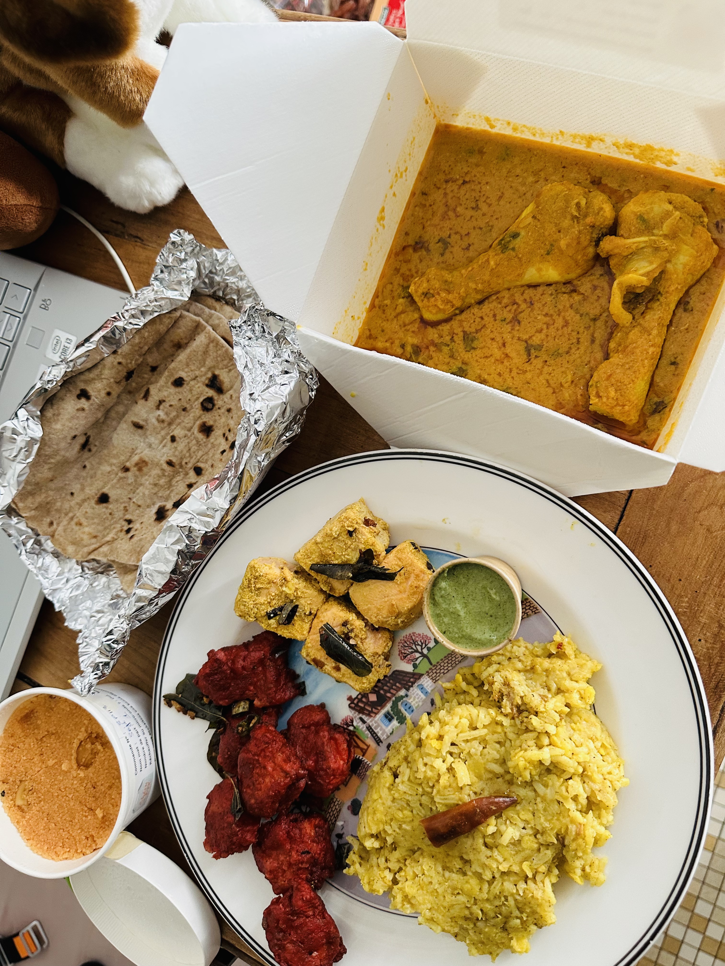 Plats indiens en vente à emporter et ils font également la livraison ! Je me suis laissé tenter par le chicken 65 et le byriami au poulet, c'était succulent, mes deux collègues se sont régalés également. Les parts sont copieuses et l'horaire de livraison est respecté. Je recommanderai avec plaisir, bravo pour l'initiative, cela change de ce que l'on trouve aux alentours. 👍