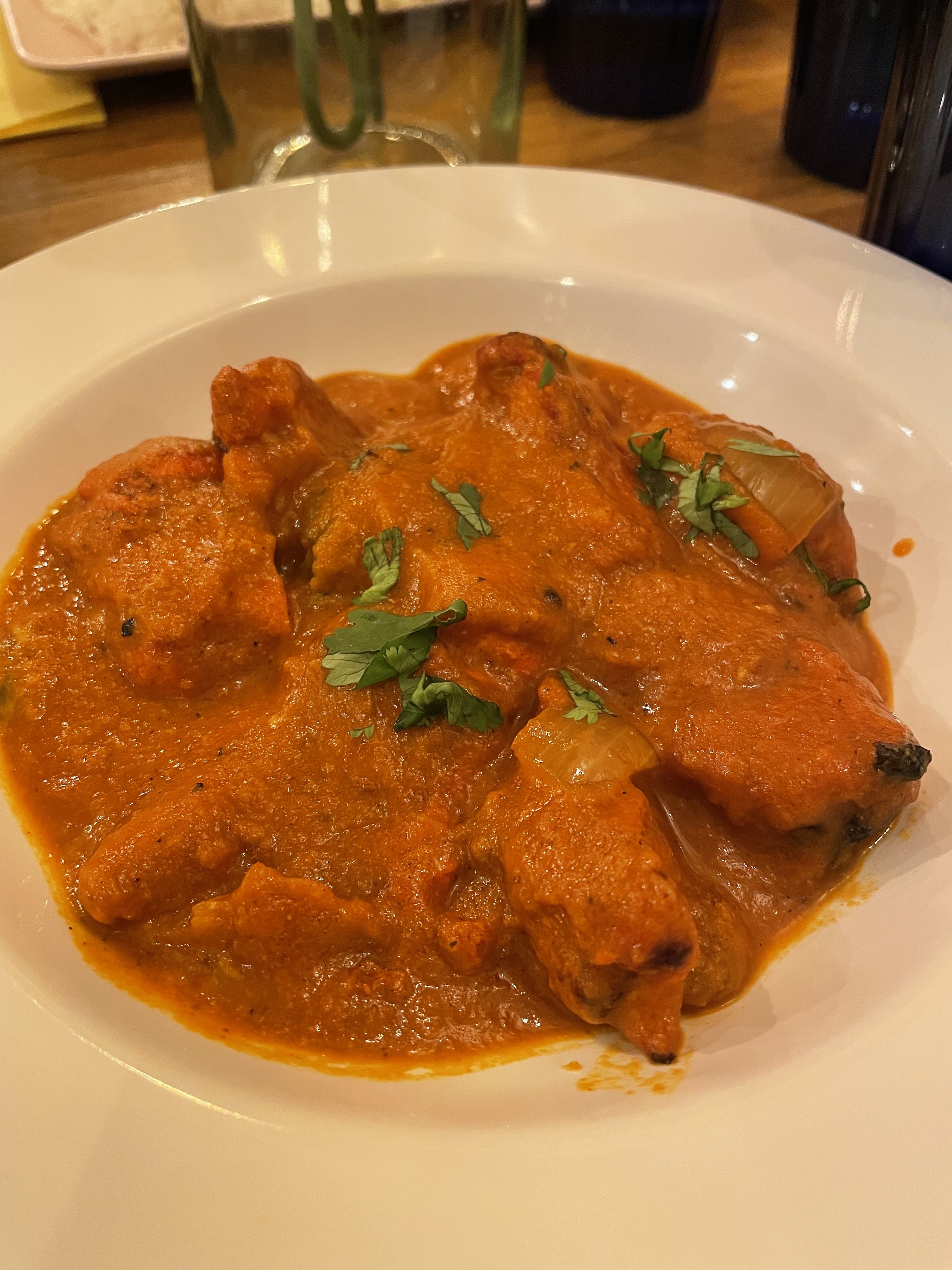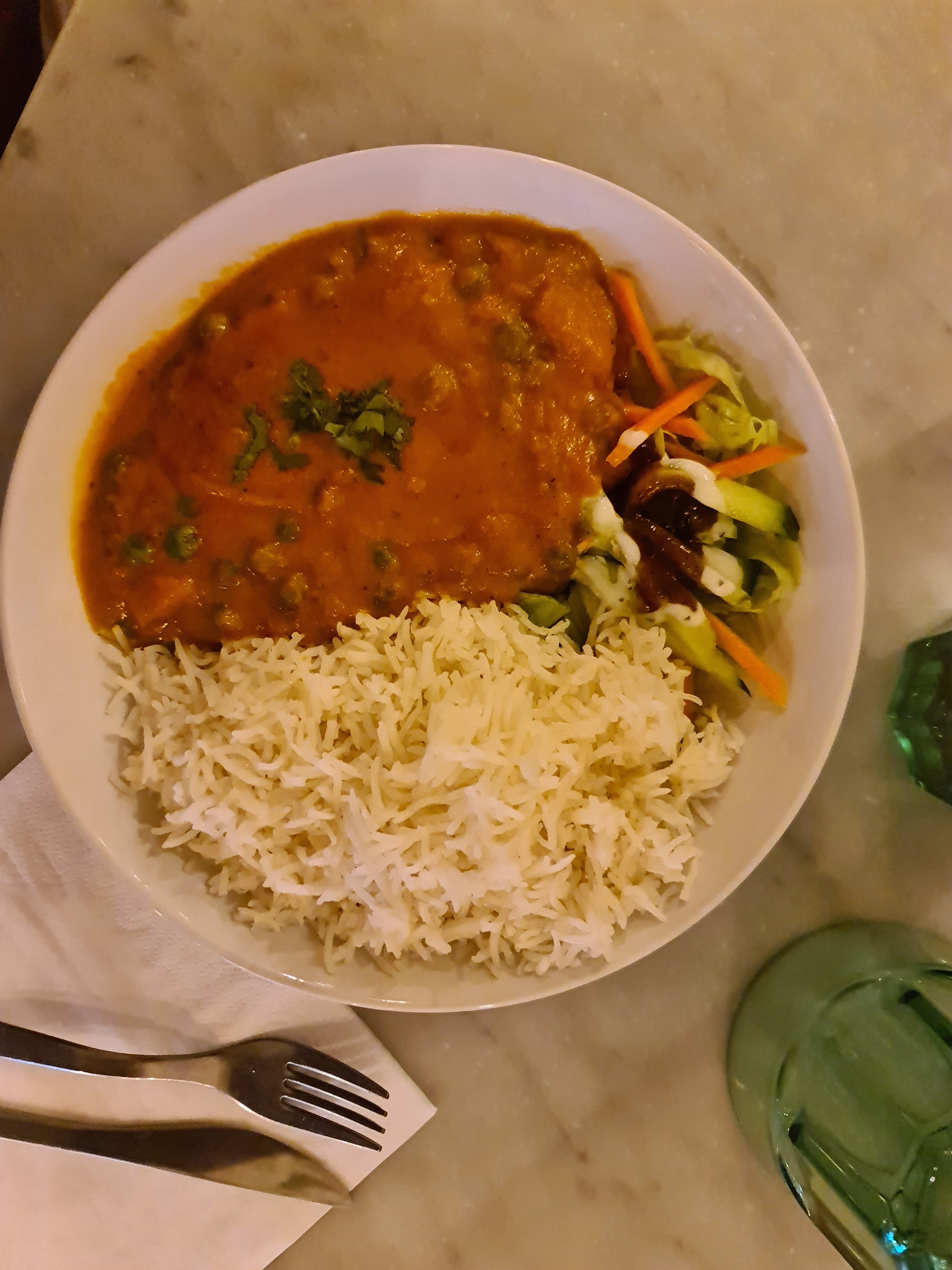 J'ai beaucoup aimé le cadre cozy, calme et reposant (surtout ce dimanche soir où il n'y a pas trop de monde). La nourriture était bonne et pas trop chère, sauf le naan à 4 euros mais ça reste correct surtout pour le quartier. Le dal était très bon, le butter chicken manquait un peu de relief.