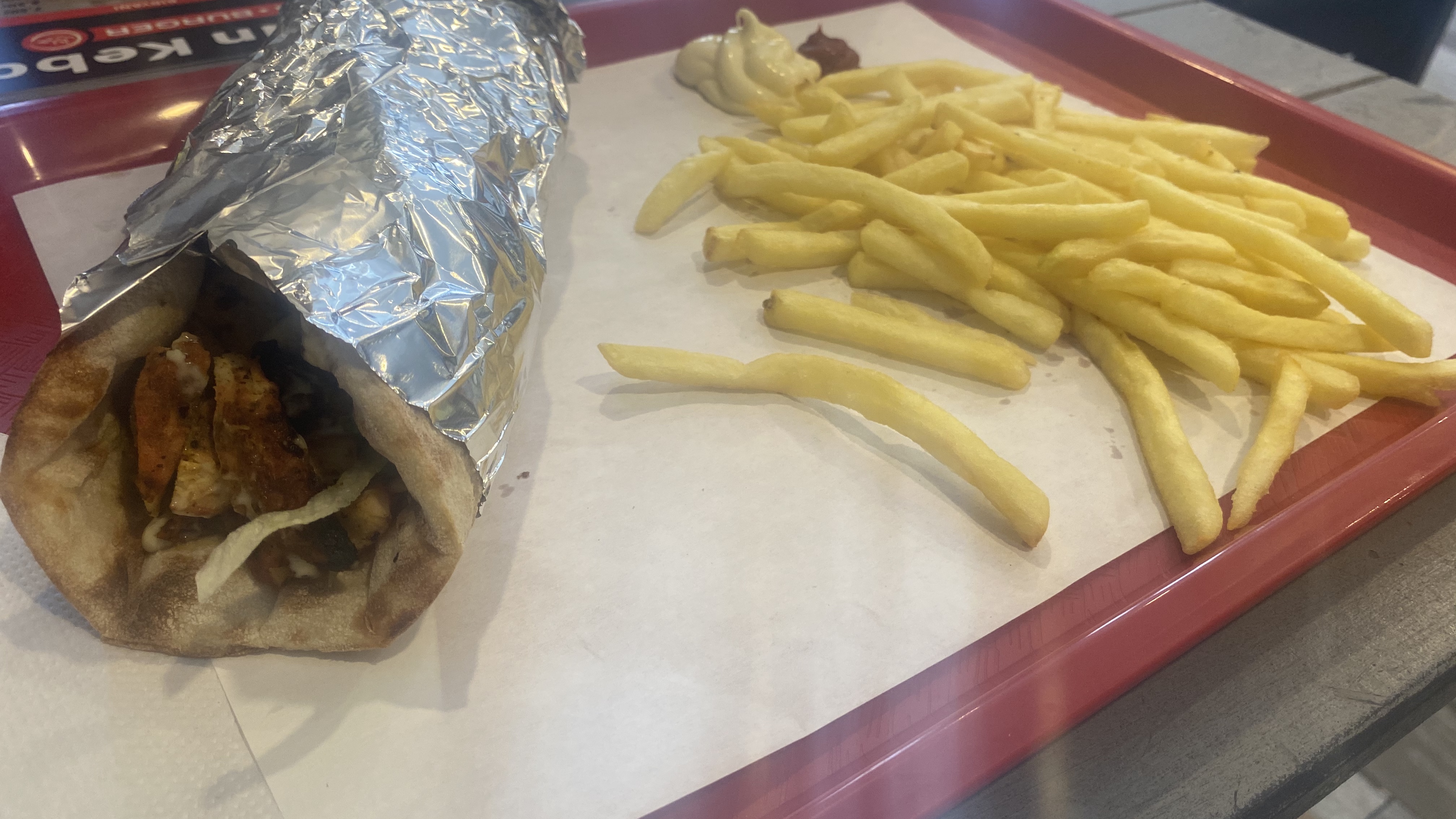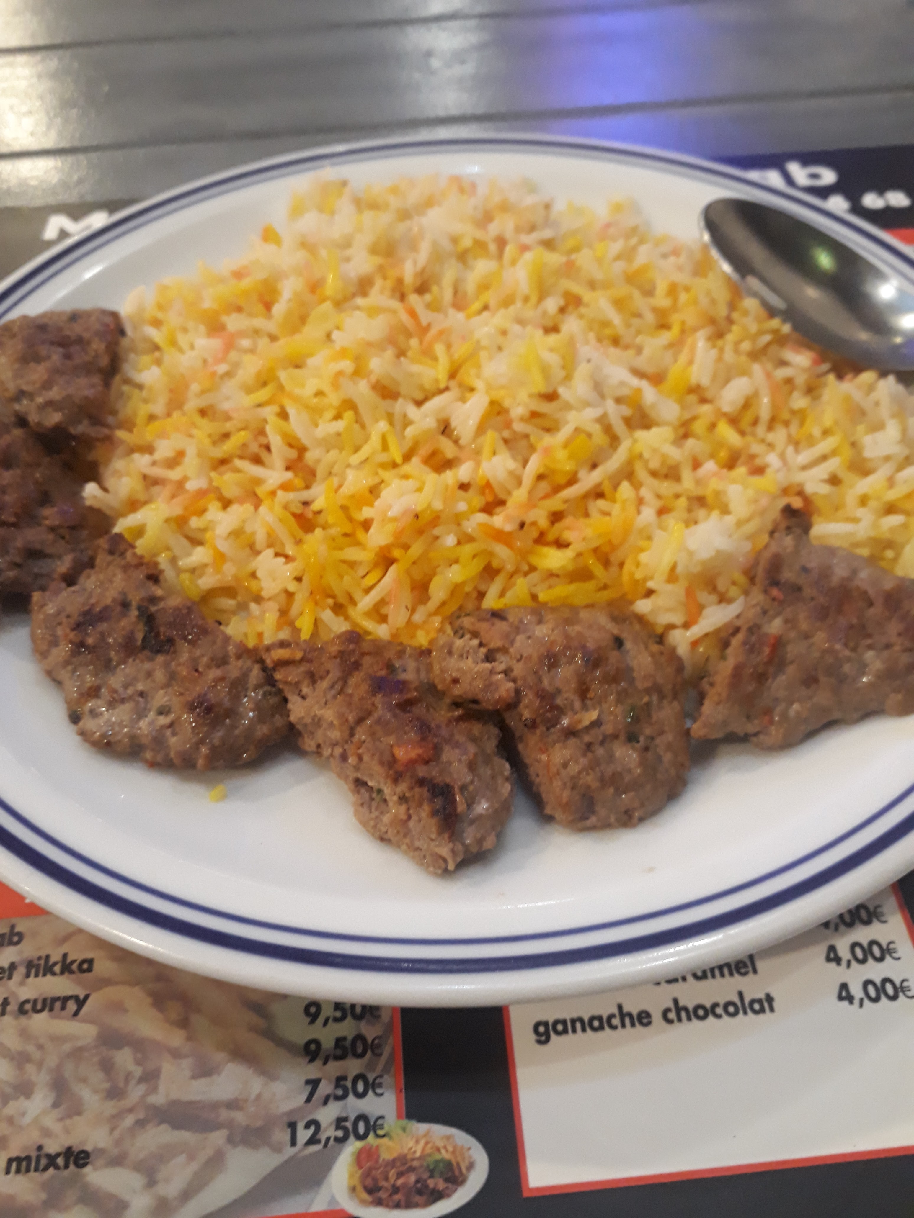 Naan kebab très bon mais très gras c’est dommage. Je confirme qu’il faut pas avoir une grande faim pour aller là-bas car les quantités sont minimes… petite portion de frite et le naan aussi n’est pas très grand..