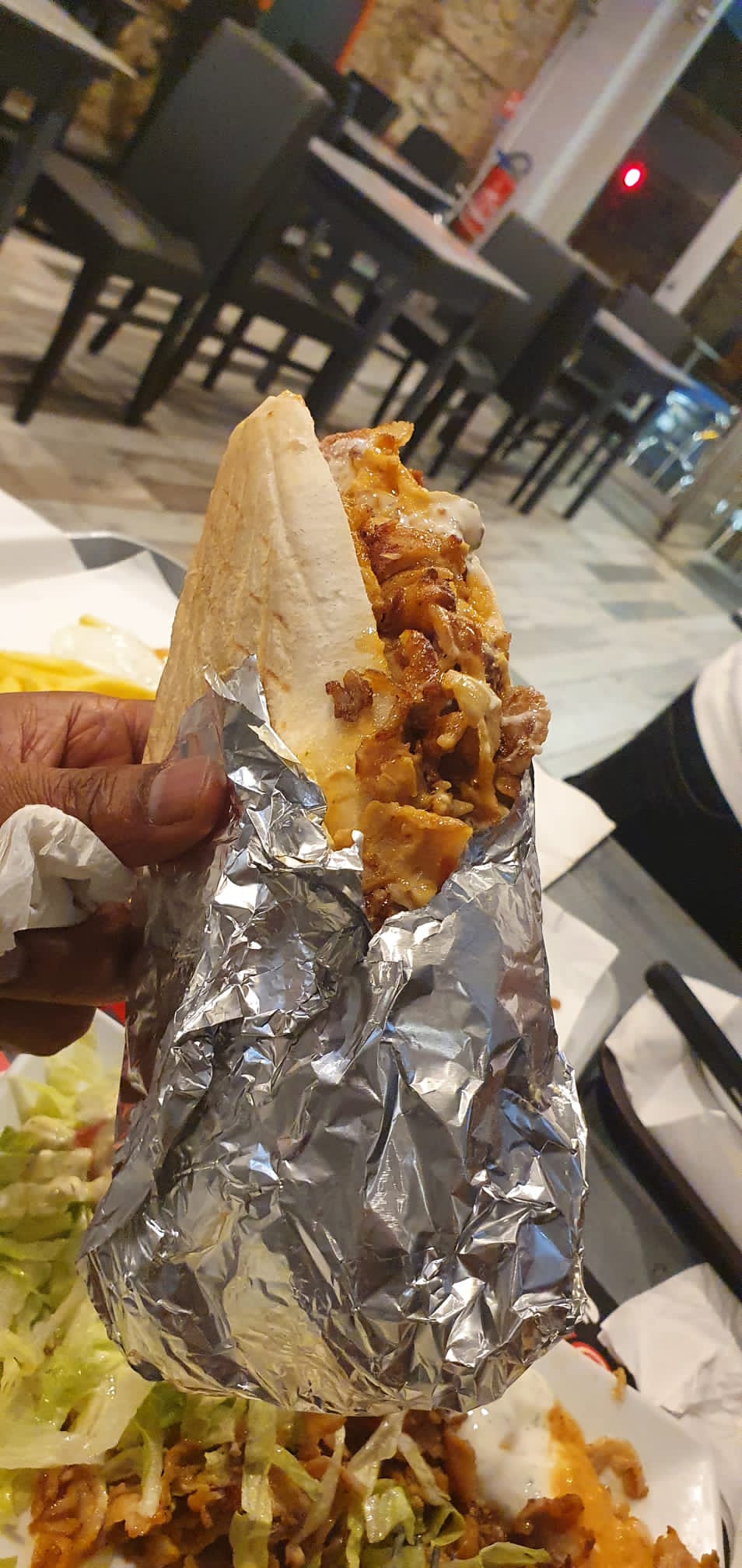 Prix abordables et menu très varié, ils nous ont servi 10 minutes avant la fermeture, ils étaient très sympathiques, j'adore le pain, mes ailes de poulet étaient un peu brûlées, et le kebab était très bon