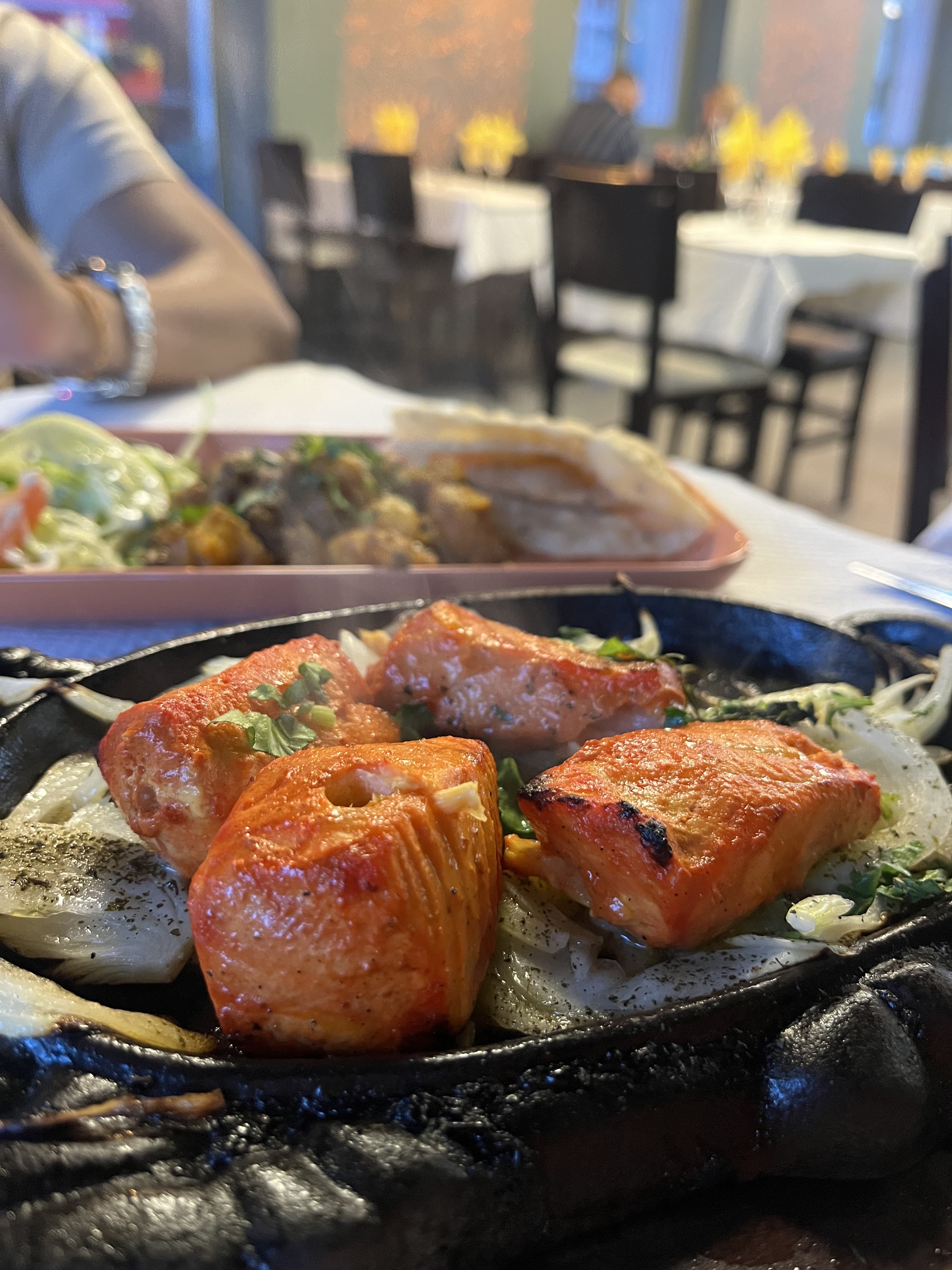 Une très belle découverte ce restaurant! Le lieu est chic, l’accueil ultra chaleureux et surtout les plats sont à tomber ! On a adoré les assaisonnements des plats et surtout le petit plus du restaurant c’est le mélange de culture indienne, pakistanaises et Bangladaises. On a eu un coup de cœur pour l’endroit et j’ai hâte de venir tester le reste de la carte. Le poulet Vidaloo était délicieux et le saumon tikka cuit au Tandoor était cuit à la perfection !! Une belle adresse pour manger des plats épicés et savoureux sur Lyon ! Je recommande aussi la citronnade maison qui était super rafraîchissante!
