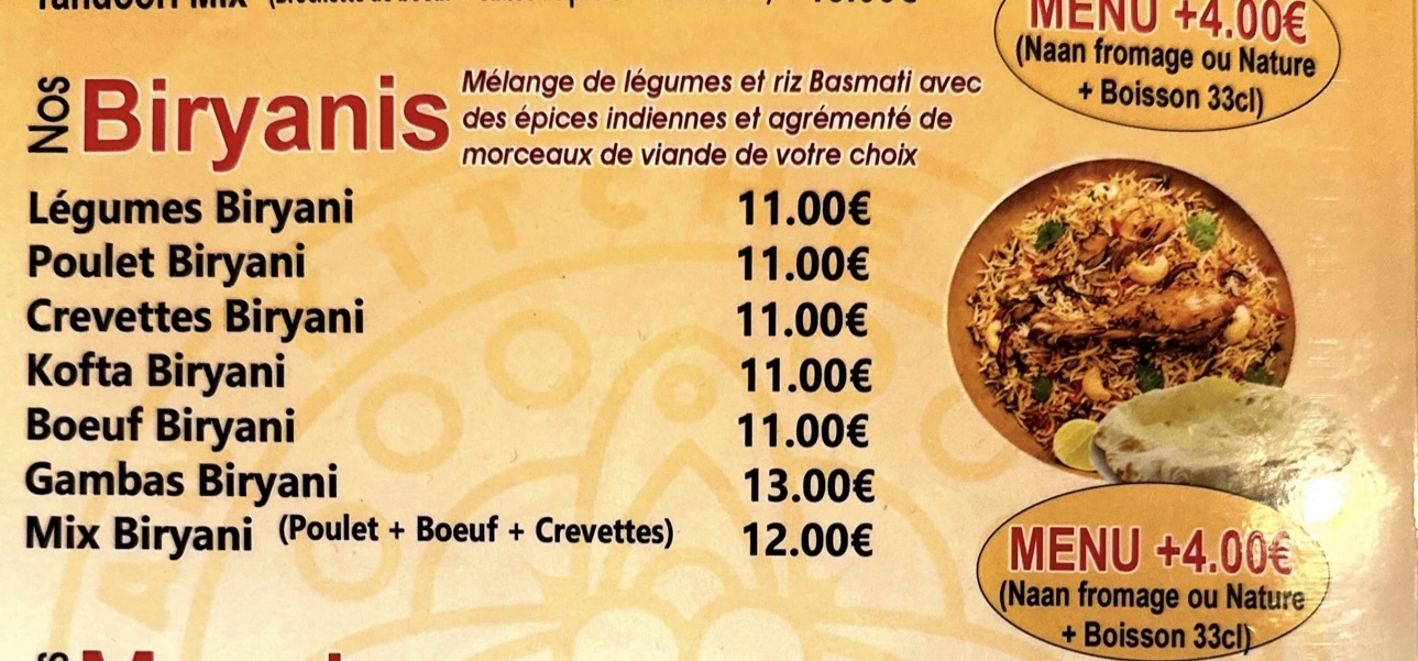 De vrais belles portions et des saveurs proche de ce que l’on peu réellement trouver sur le sous continent Indien.