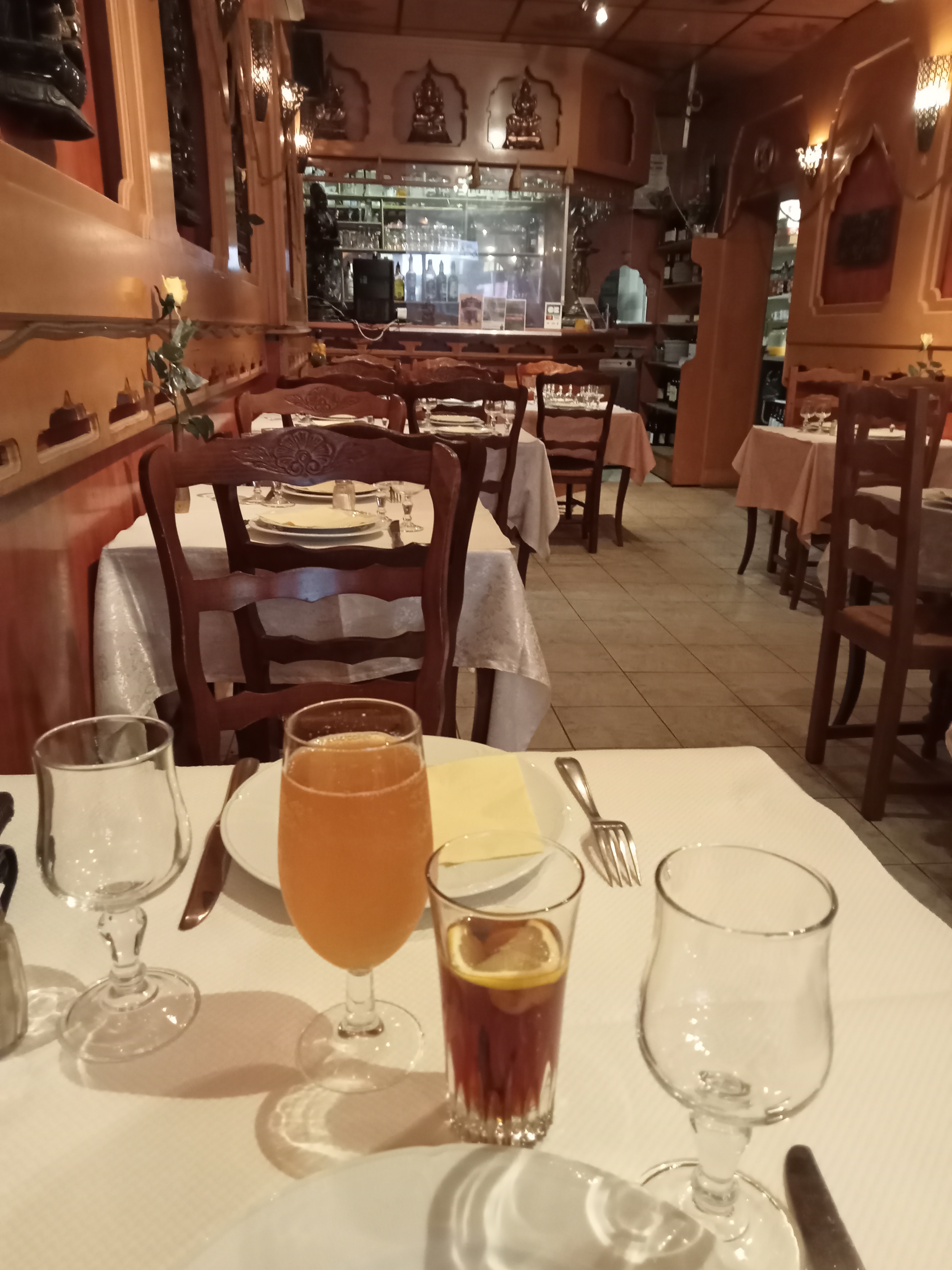 Un bon restaurant à essayer , mais peu être quelques point à savoir ou à revoir, il manque la moitié de la carte ( pas de bœuf) à notre visite , ce qui limite grandement le choix, pas ou peu d’alcool, et sur le peu de disponible , quelques changement inattendus non prévenue à prévoir , la nourriture était cependant très bonne, le serveur « semble » vouloir être prévenant, enfin si vous aimez l’ambiance Bollywood et n’avait pas peur de découvrir les cuisines du monde n’hésitez pas.