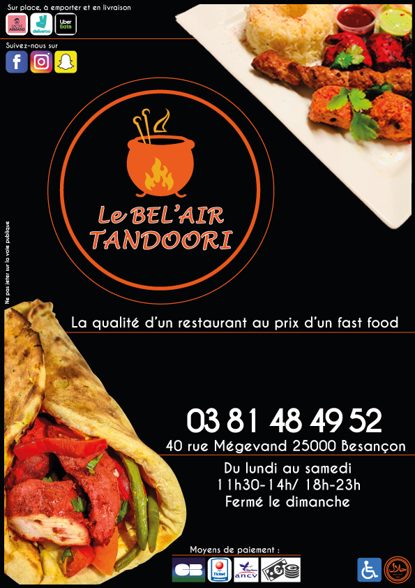Heureusement que Le Bel Air Tandoori était ouvert à 21h lundi soir... En plus, le monsieur qui a pris ma commande était très courtois. J'ai pris une assiette poulet tandoori à emporter. C'était très copieux : une large barquette de poulet tandoori avec du riz, une portion de frite et une salade. Avec la boisson, le menu était à un prix très correct. Je me suis régalé.