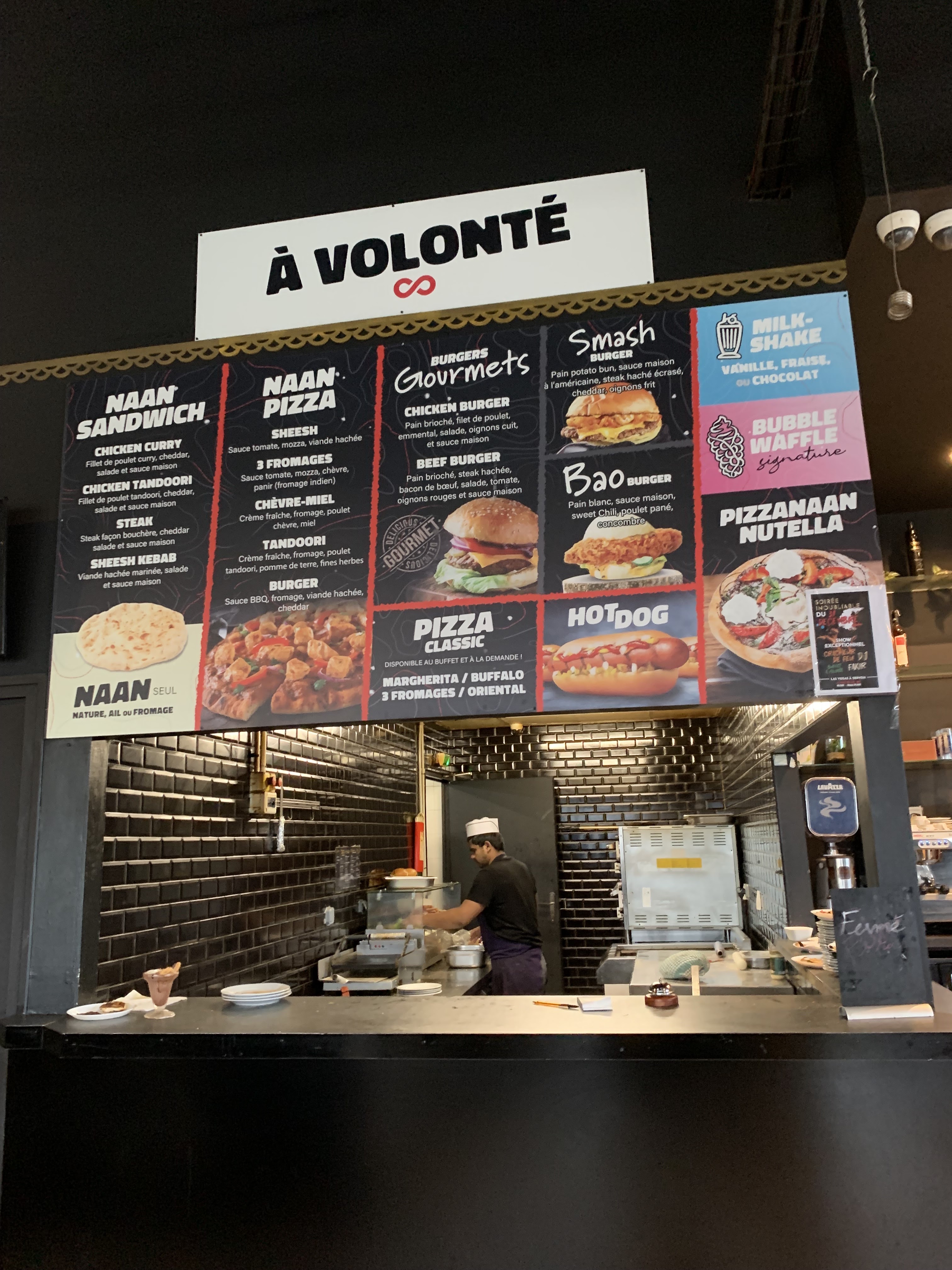 Très bon accueil merci à Mohamed très serviable très accueillant et à l’écoute Buffet très bon et super le concept des pizzas burger milkshake et bubble waffe à volonté