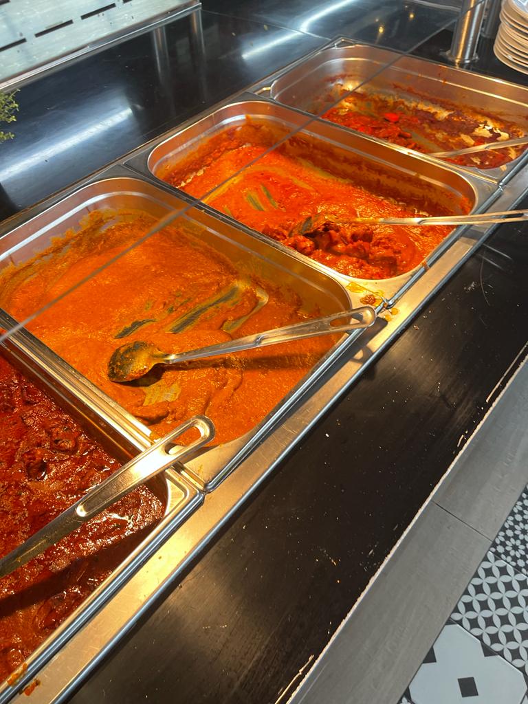Bonjour, Restaurant à volonté qui propose un large choix de plats, plusieurs sauce : curry, butter chiken ect.. Les sauces sont très bonnes, bien épicé. Différents poulet frit, riz de plusieurs aromates. J'ai commandé un naan sandwich chiken curry qui était très bien garnie et très très bon !! Un smash burger lui aussi très goutu, avec un pain fait maison bien moelleux et très savoureux, par contre le steak un peut petit par rapport au pain, mais bon. Samoussas. En terme de salade, ça reste plutôt simpliste, les desserts, ça manque de choix (tarte myrtille, 2 type de tiramisiu, tarte noix de coco, donut au sucre, des glaces, des bonbons). Milk shake et bubble tea à volonté. 2 -Milk shakes (vanille et fraise) : bon, mais pas assez épais, ressemble plus à du lait à la fraise. -Bubble tea (pêche et litchi) : très bon. En rapport qualité/prix, : 21.90€ le soir. Je recommande fortement ! Un large panel de propositions autant plats typiques indiens que street food.