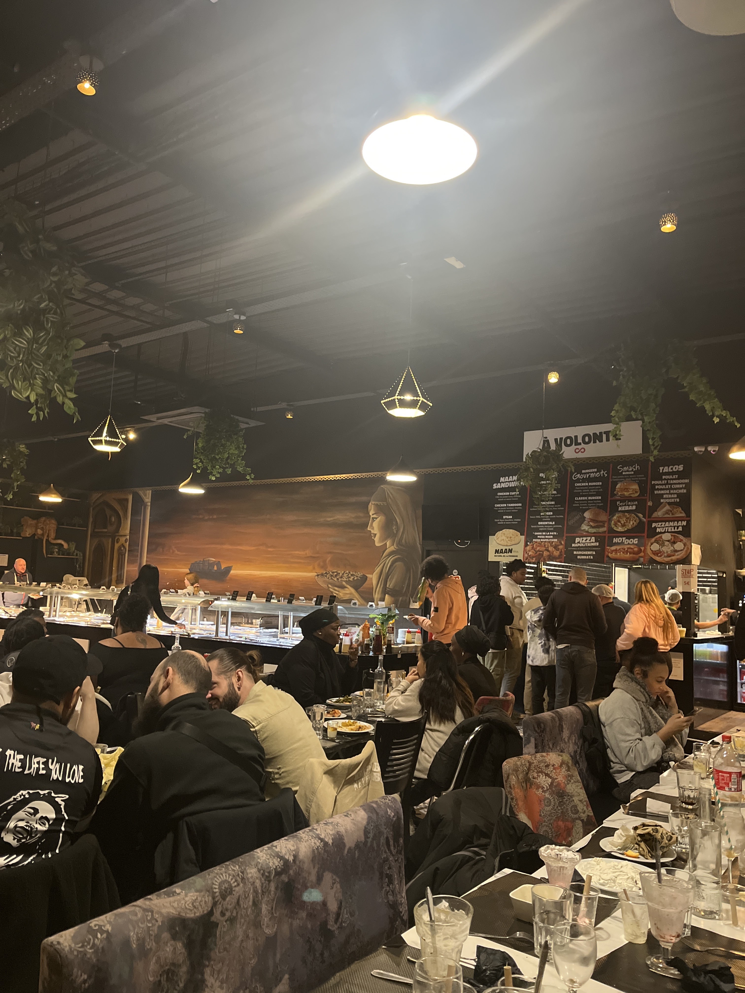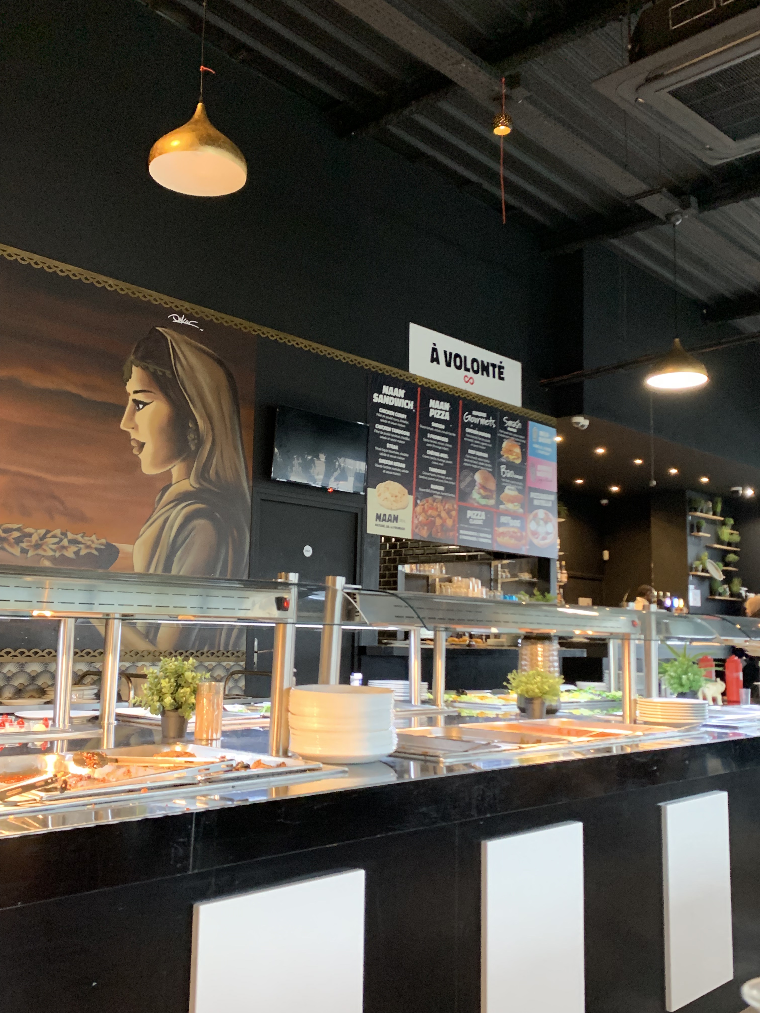 Nous sommes allées dans ce restaurant avec mon amie le midi et on a adoré ! En effet, le restaurant à volonté le midi est à 16 euros ! Il y a des burgers, des nans, des hot dogs, pizza… à volonté et c’est vraiment très bon. Le personnel est super agréable. Je vous recommande de réserver car il y avait quand même du monde même à midi. Je vous recommande vivement ce restaurant !