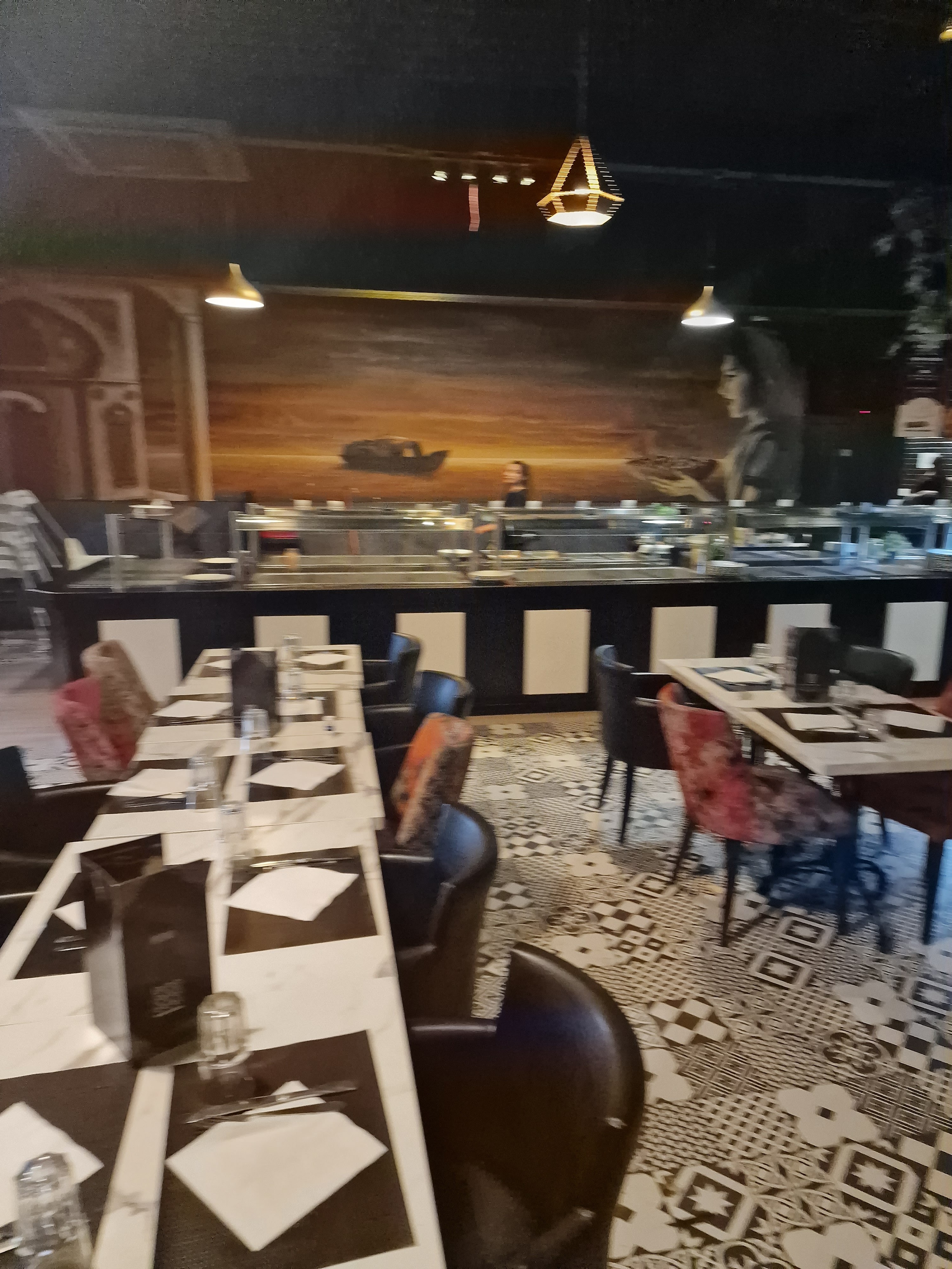 Nous sommes allé dans ce restaurant hier soir en famille, il propose un large buffet pour tous les goûts. Les petites quantités permettent de goûter plusieurs choses ce qui est bien pour la découverte ! En ce qui concerne l’ambiance, nous avons été particulièrement bien accueilli par le personnel et notamment par Mohamed qui a su nous ambiancer et nous faire rire sans forcer ! Nous avons passé une super soirée et nous sommes régalés ! Merci au personnel et surtout à Mohamed pour sa bonne humeur !!