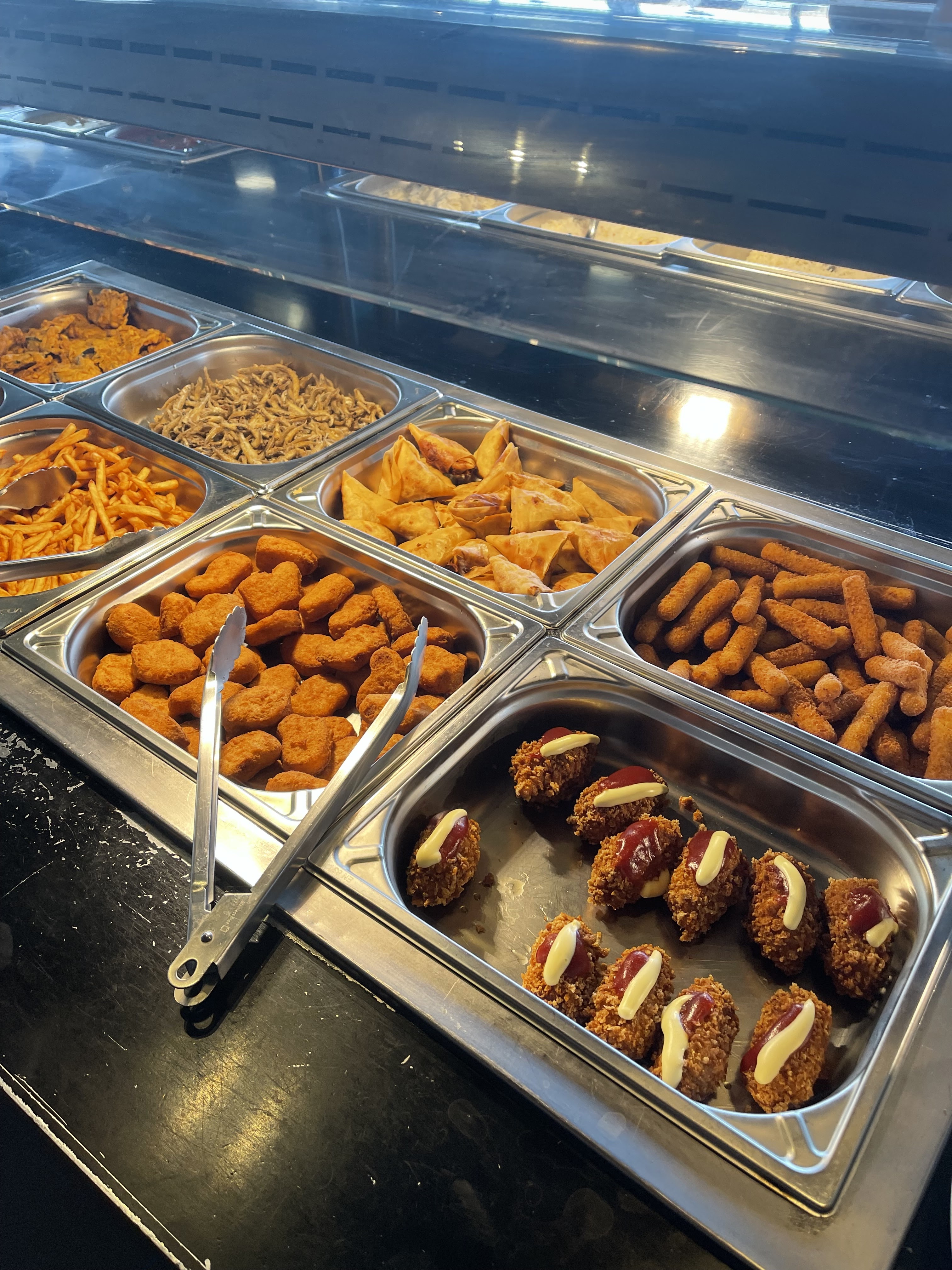 Bof bof quand ont voie les photos et vidéos sur les réseaux sa donne énormément envi donc on s'est laissé tenter hier et malheureusement ont s'attendait pas à sa le coin buffet ça va il y a du choix par contre noter quand c'est piquant sa serait bien car ma fille a pris un poulet piquant et y'avais rien de noter. Le réel souci c'est le coin où faut commander les burgers hot-dog chees nan etc la cuisine désolé mé c'était le big bordel les cuisto devrais porter des charlotte sur leur barbe car j'ai eu un poile dans l'assiette et ma belle sœur a eu aussi un truc et il y'a beaucoup trop t'attend tu te commande 1 ou 2 truc après c'est fini et puis c'est pas trop garni je trouve. Les serveuse en salle top elles gère de fou bravo car les clients sale qui respecte pas les wc c'est pas facile.