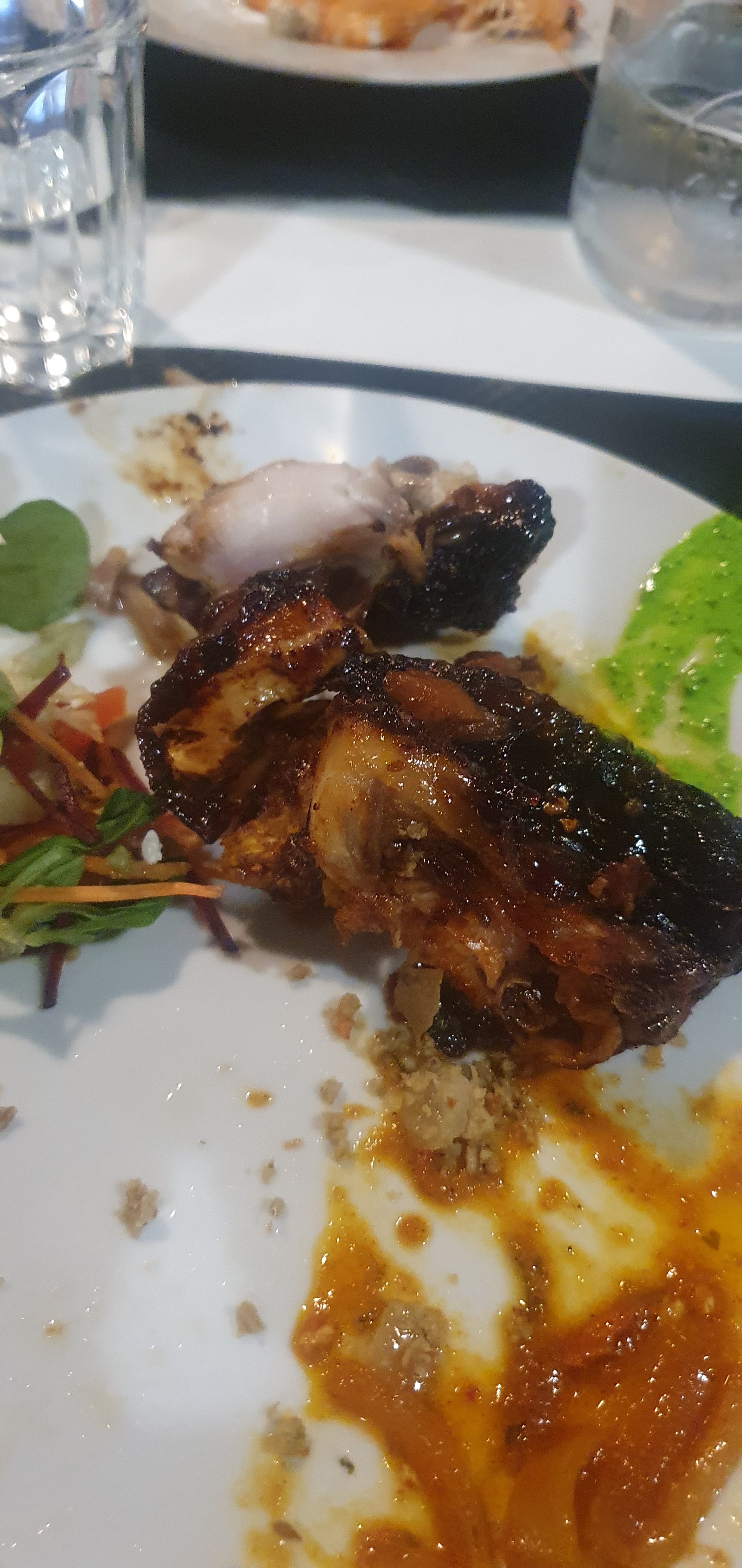 Ambiance : bien , musique pas trop forte Propreté : assiettes pas très propres Qualité des produits : je suis fan des sushis mais là c’est à revoir , les cheesenaan sont secs , le butter chicken est rose… je n’ai même pas fais de photos tellement je suis dépassé … les desserts sont moyennement bon mais c’est du surgelés Je ne recommande pas J’espère voir des améliorations