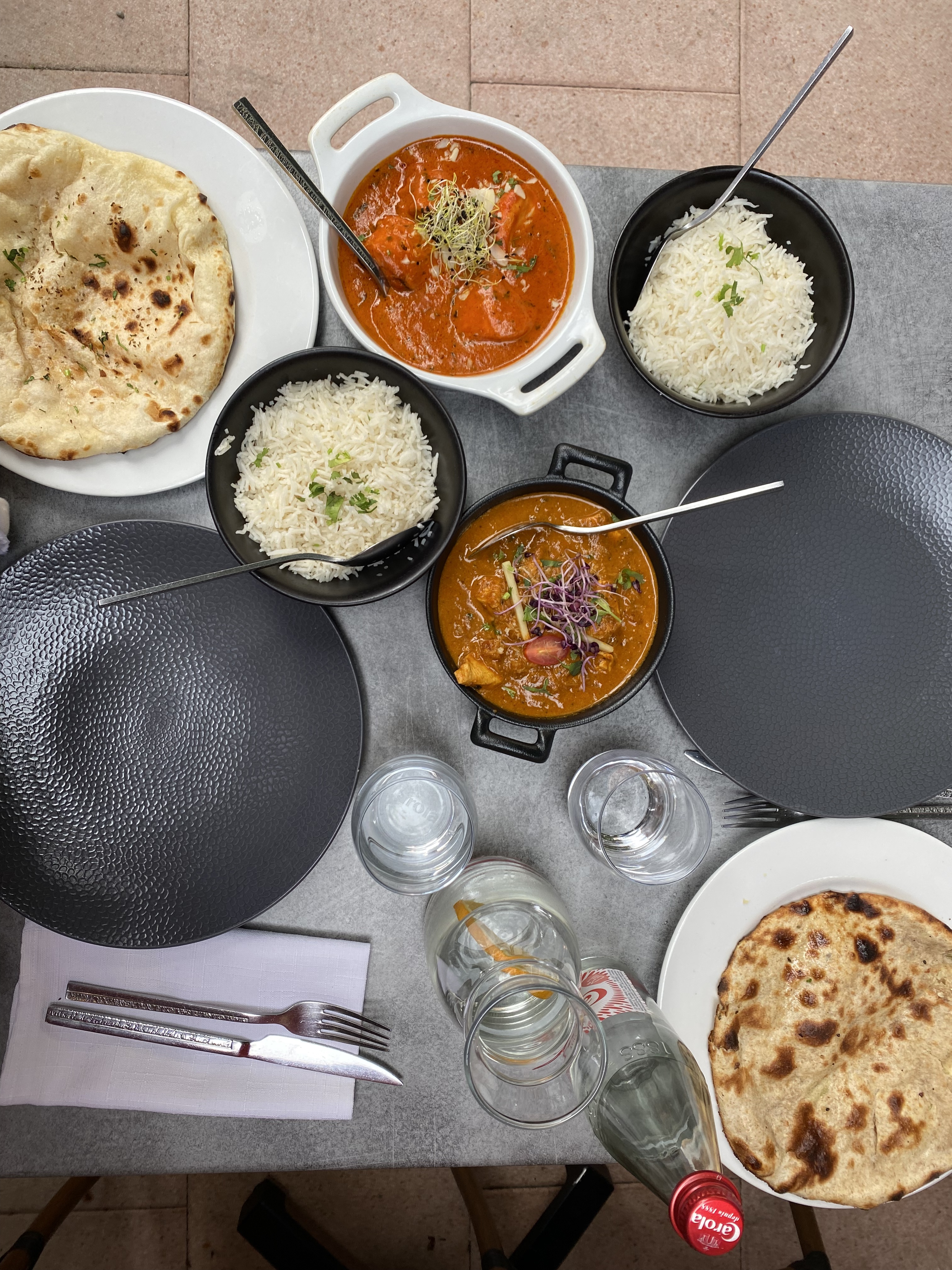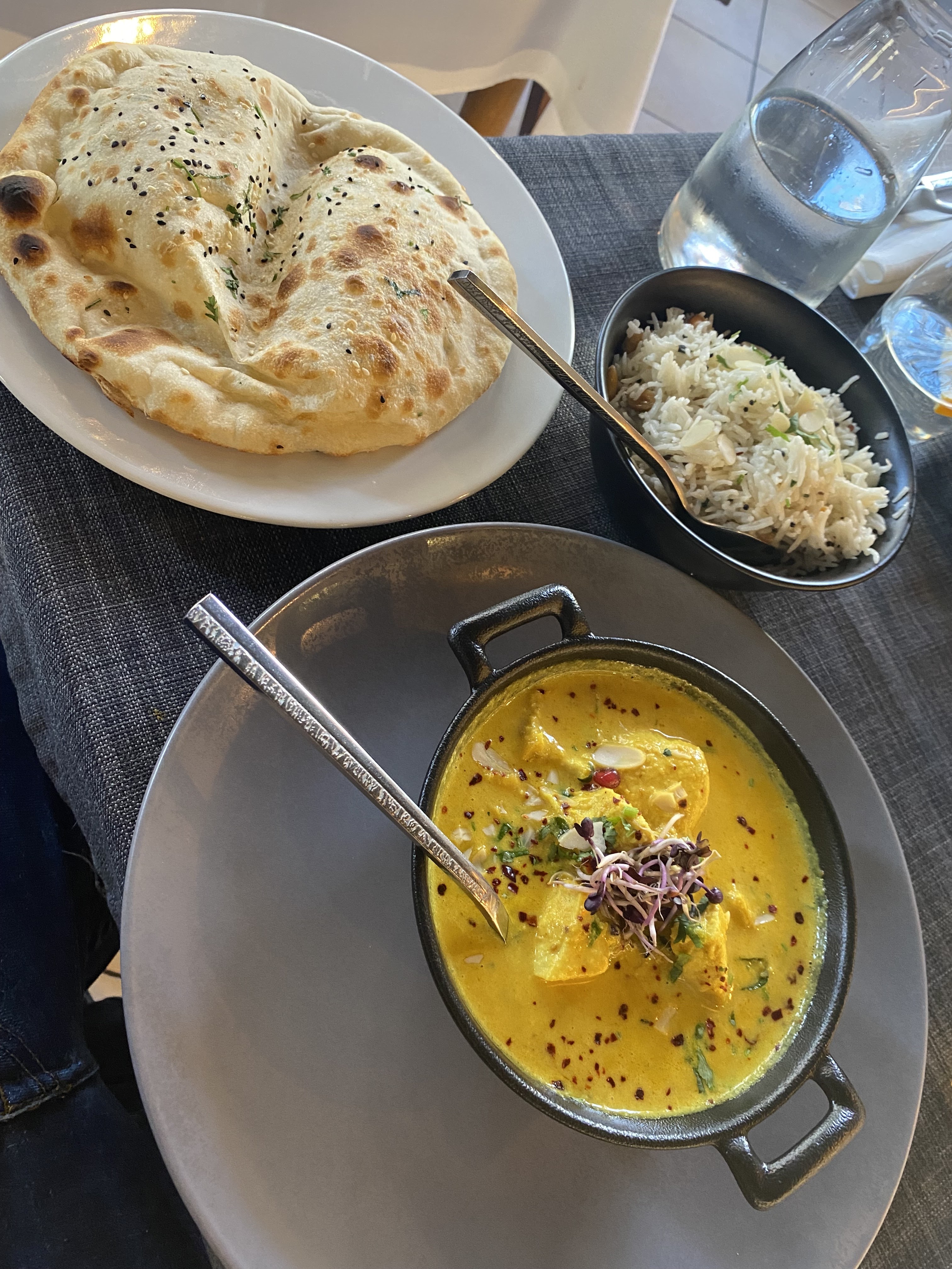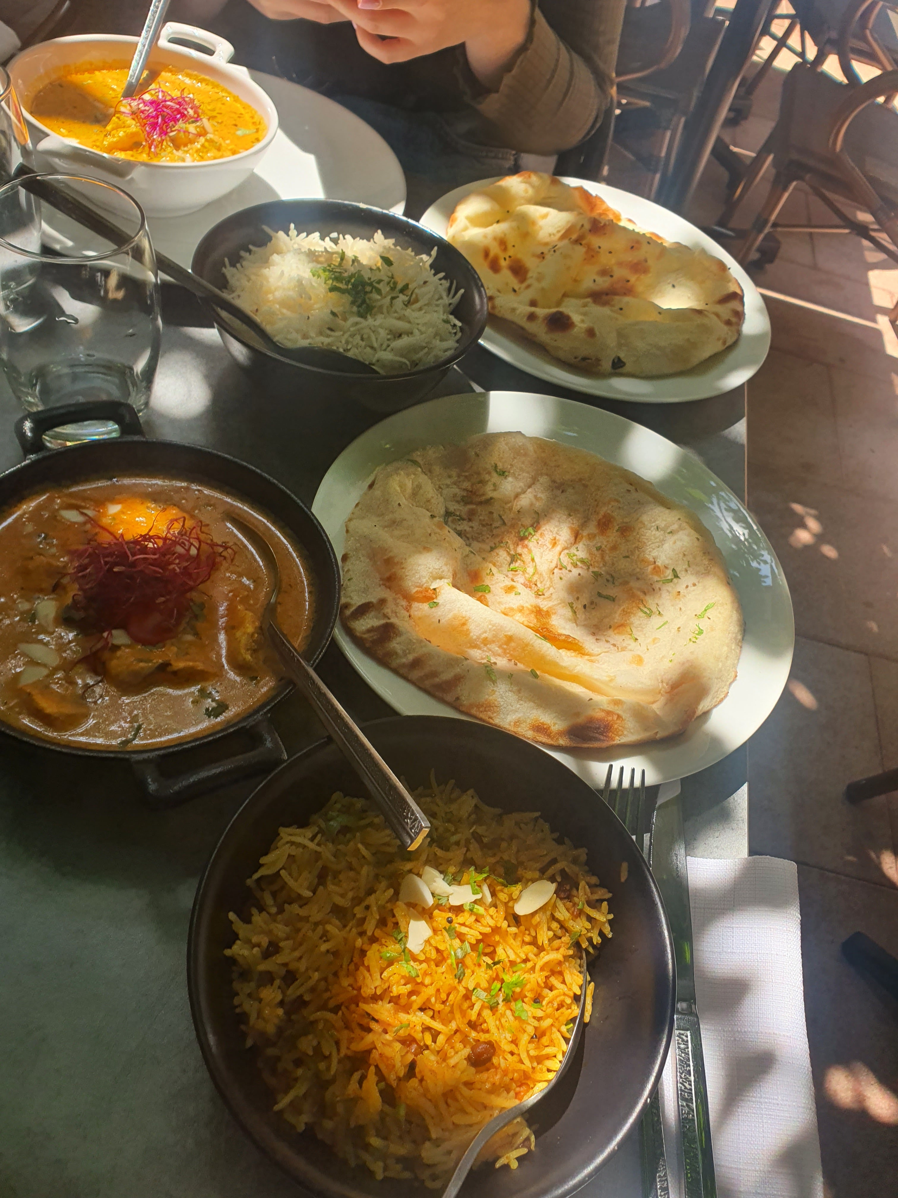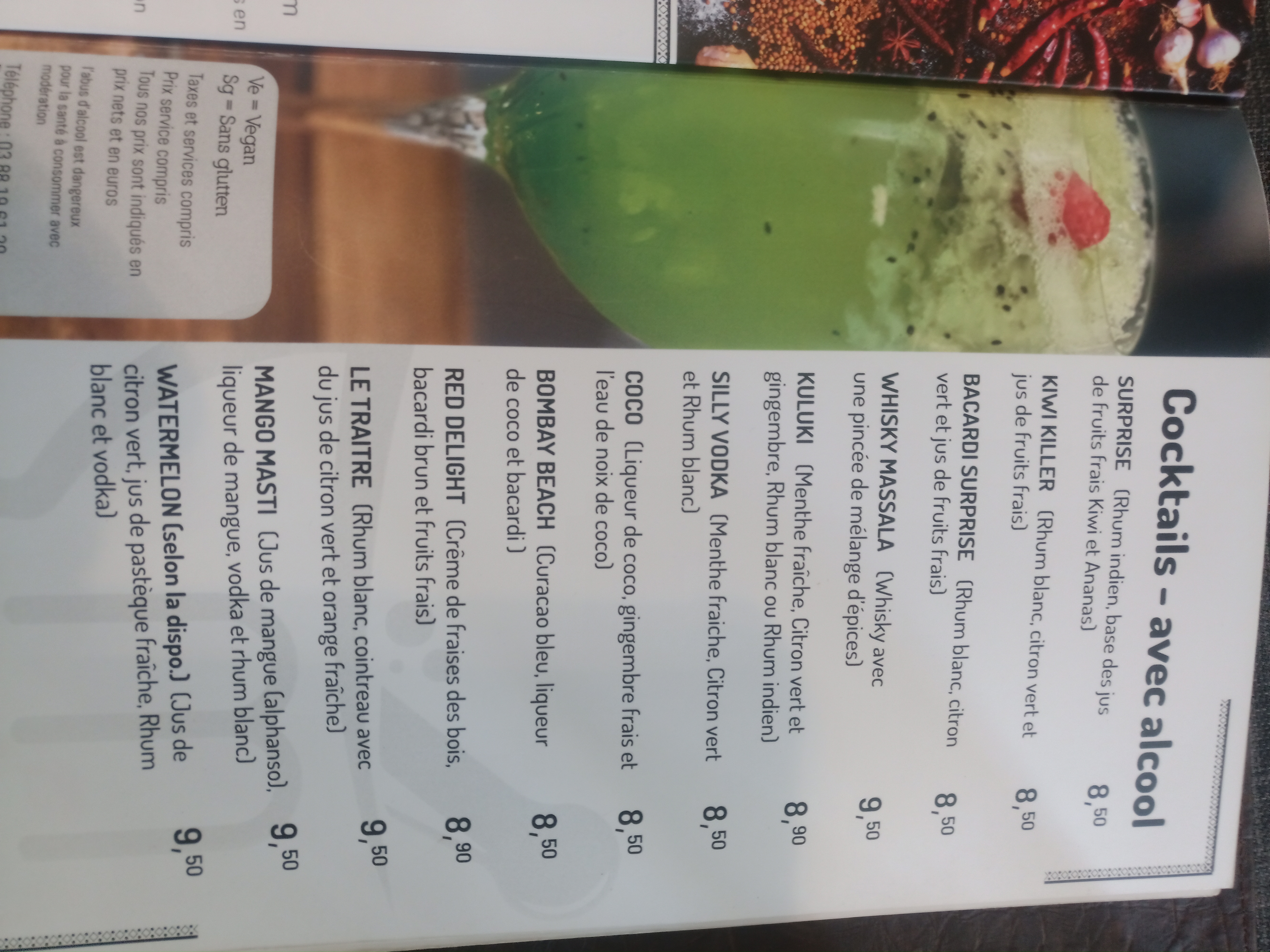Le personnel est accueillant et sympathique, le cadre aussi. En terrasse, c'était super agréable. J'ai beaucoup appréciée le fait qu'il y ait plusieurs cocktails sans alcool, en général, on a que du virgin Mojito. Le plat de lotte et légumes était super bon, très bien assaisonné. Par contre le goan agneau, je n'ai pas vraiment apprécié et pour le reste ( poulet grillé , nan ail et nan fromage 🧀) c'était correct.
