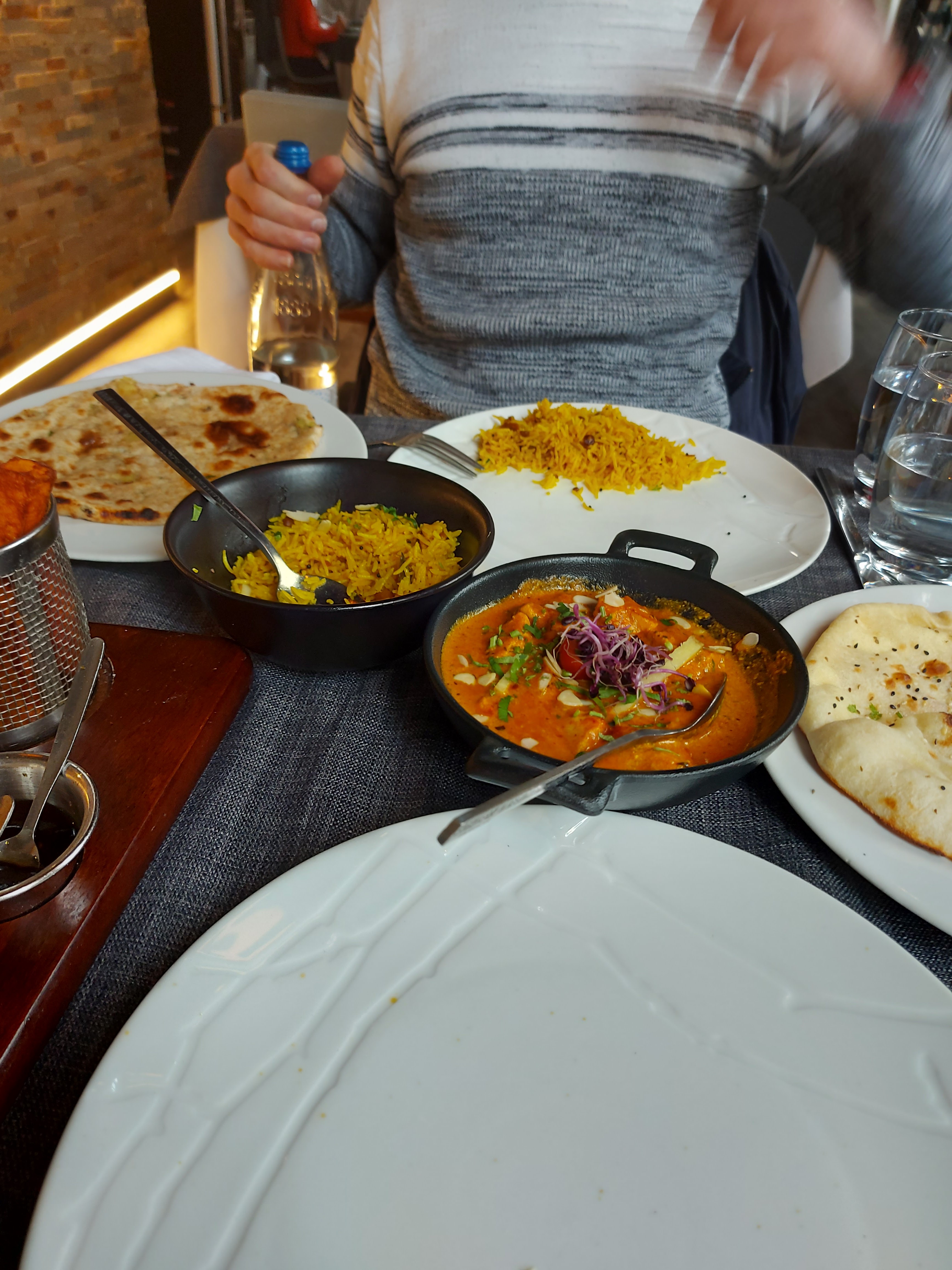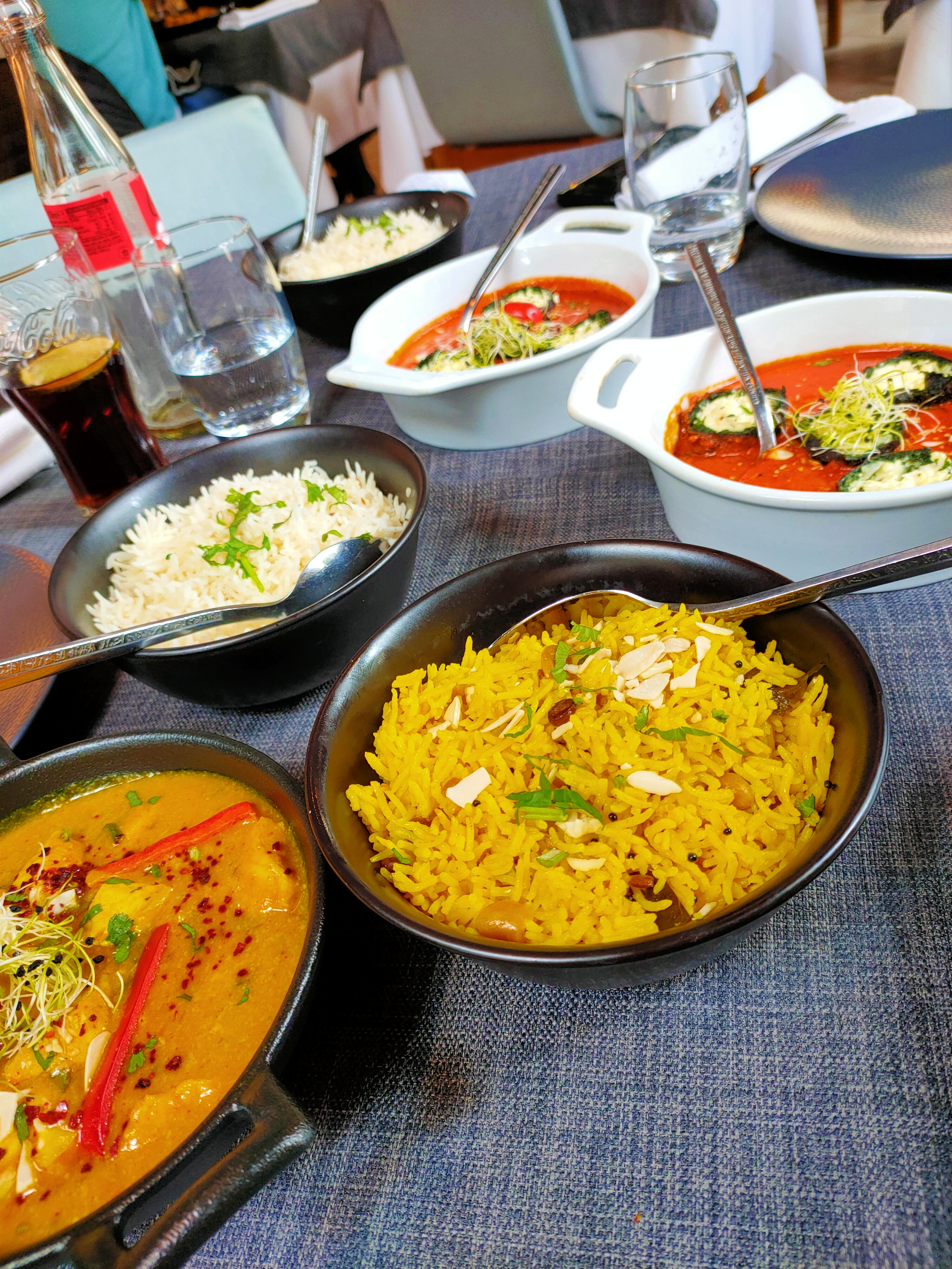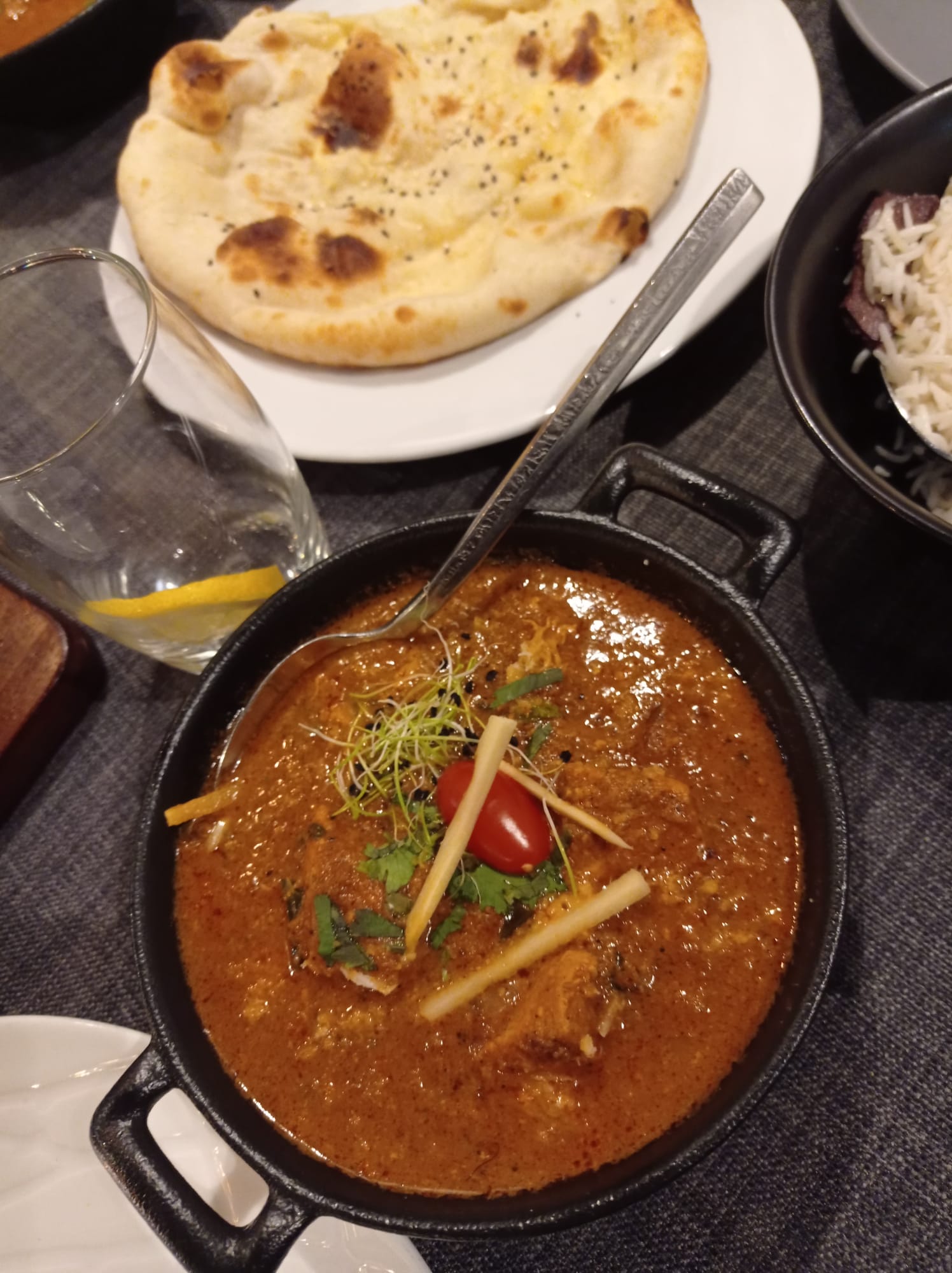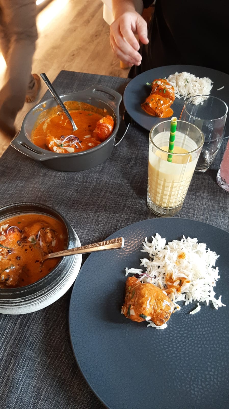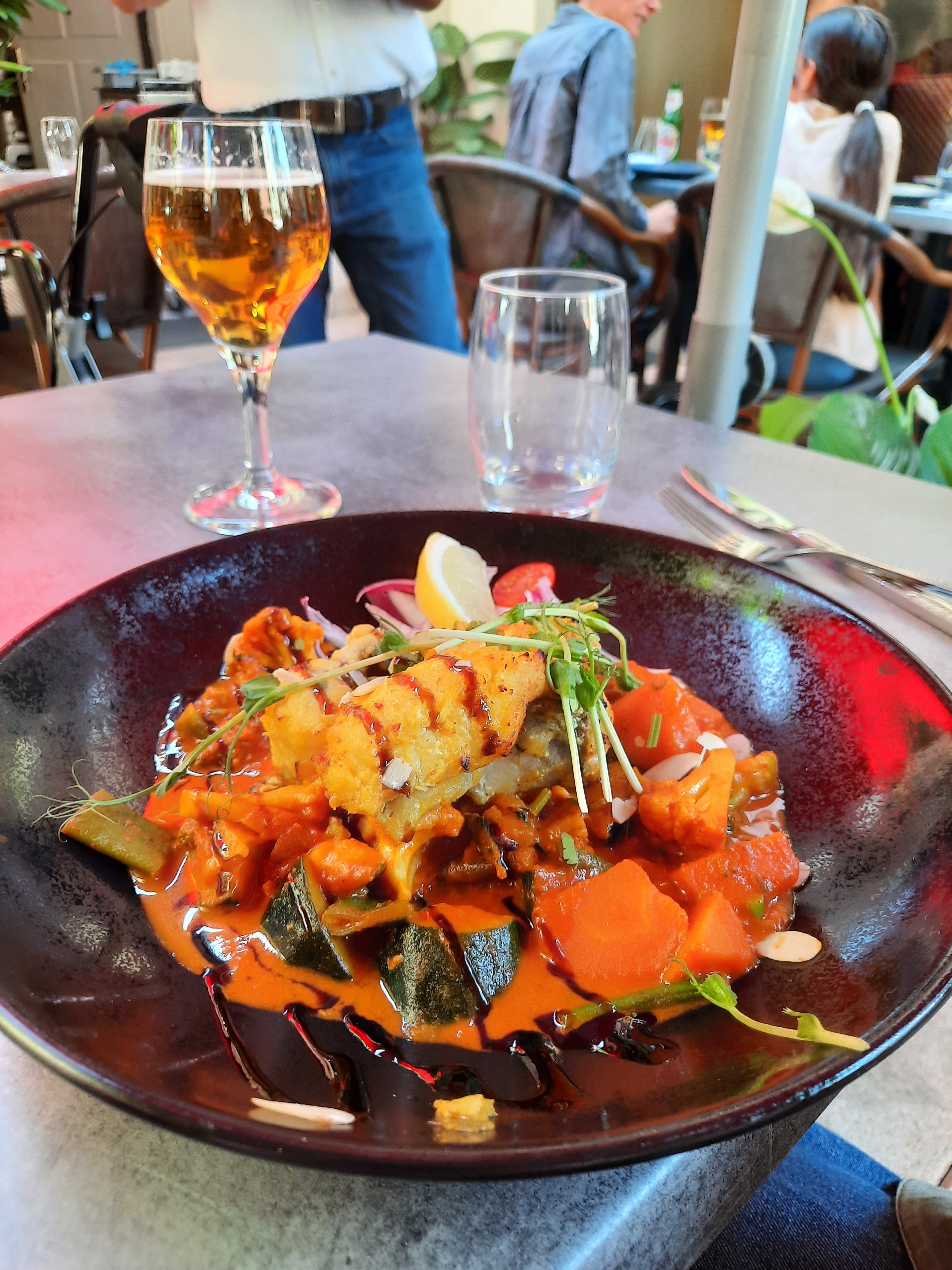 Le personnel est accueillant et sympathique, le cadre aussi. En terrasse, c'était super agréable. J'ai beaucoup appréciée le fait qu'il y ait plusieurs cocktails sans alcool, en général, on a que du virgin Mojito. Le plat de lotte et légumes était super bon, très bien assaisonné. Par contre le goan agneau, je n'ai pas vraiment apprécié et pour le reste ( poulet grillé , nan ail et nan fromage 🧀) c'était correct.