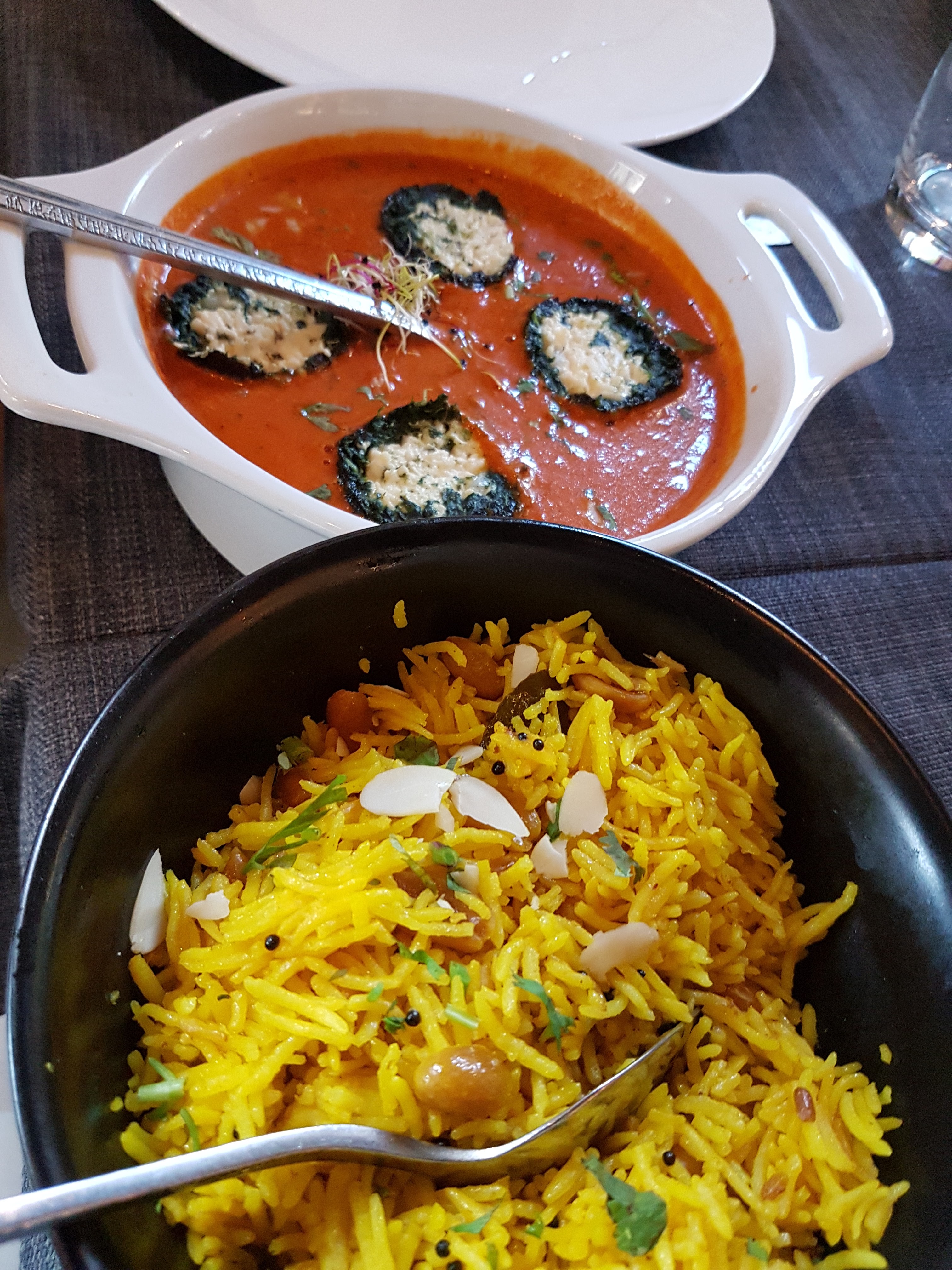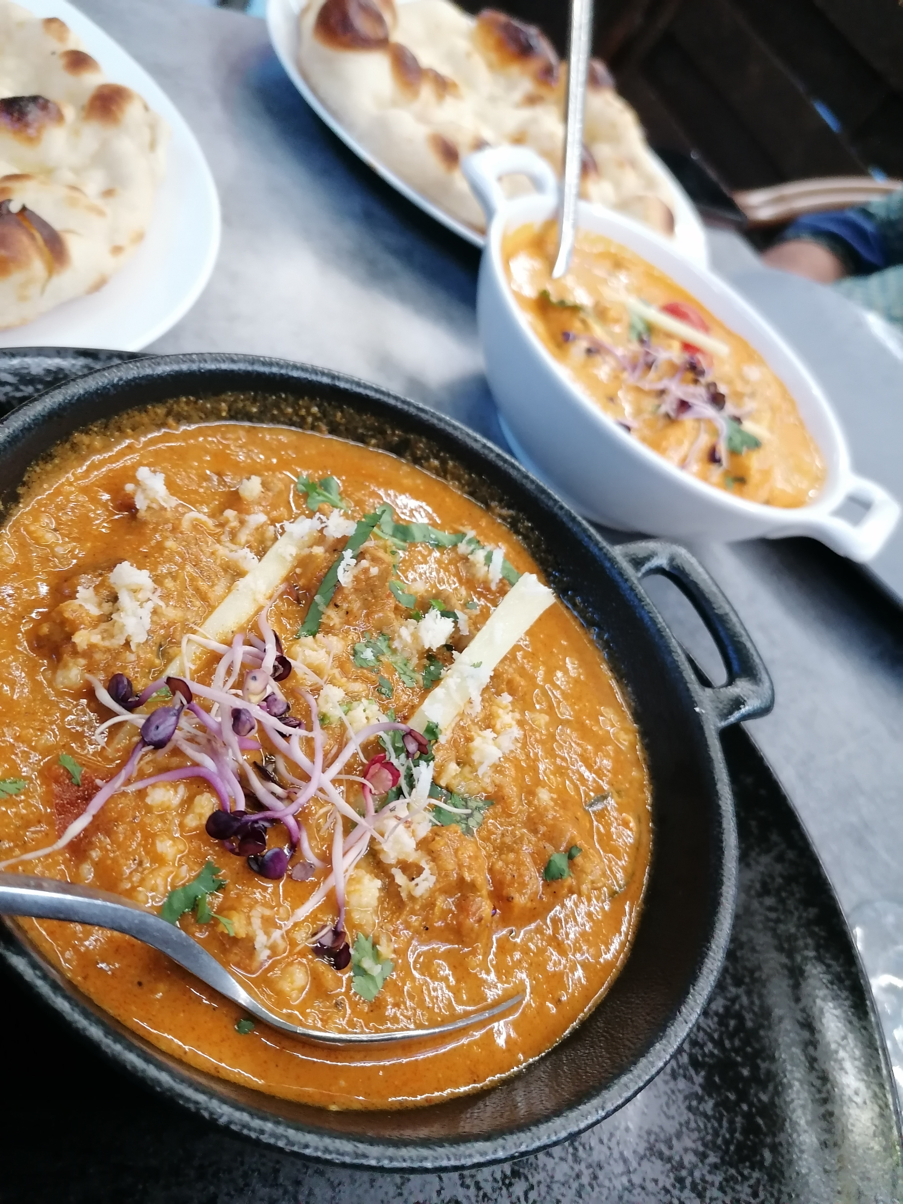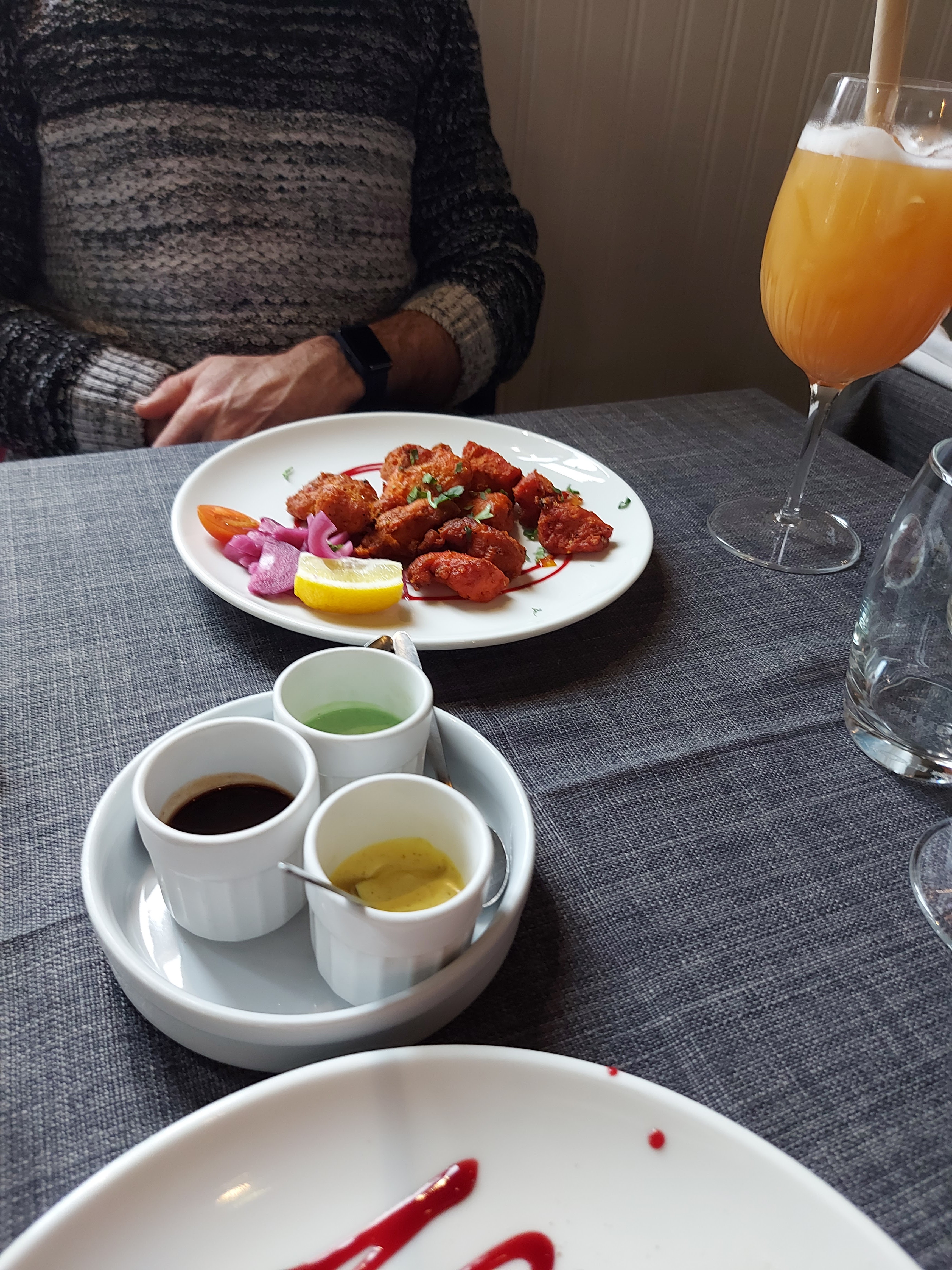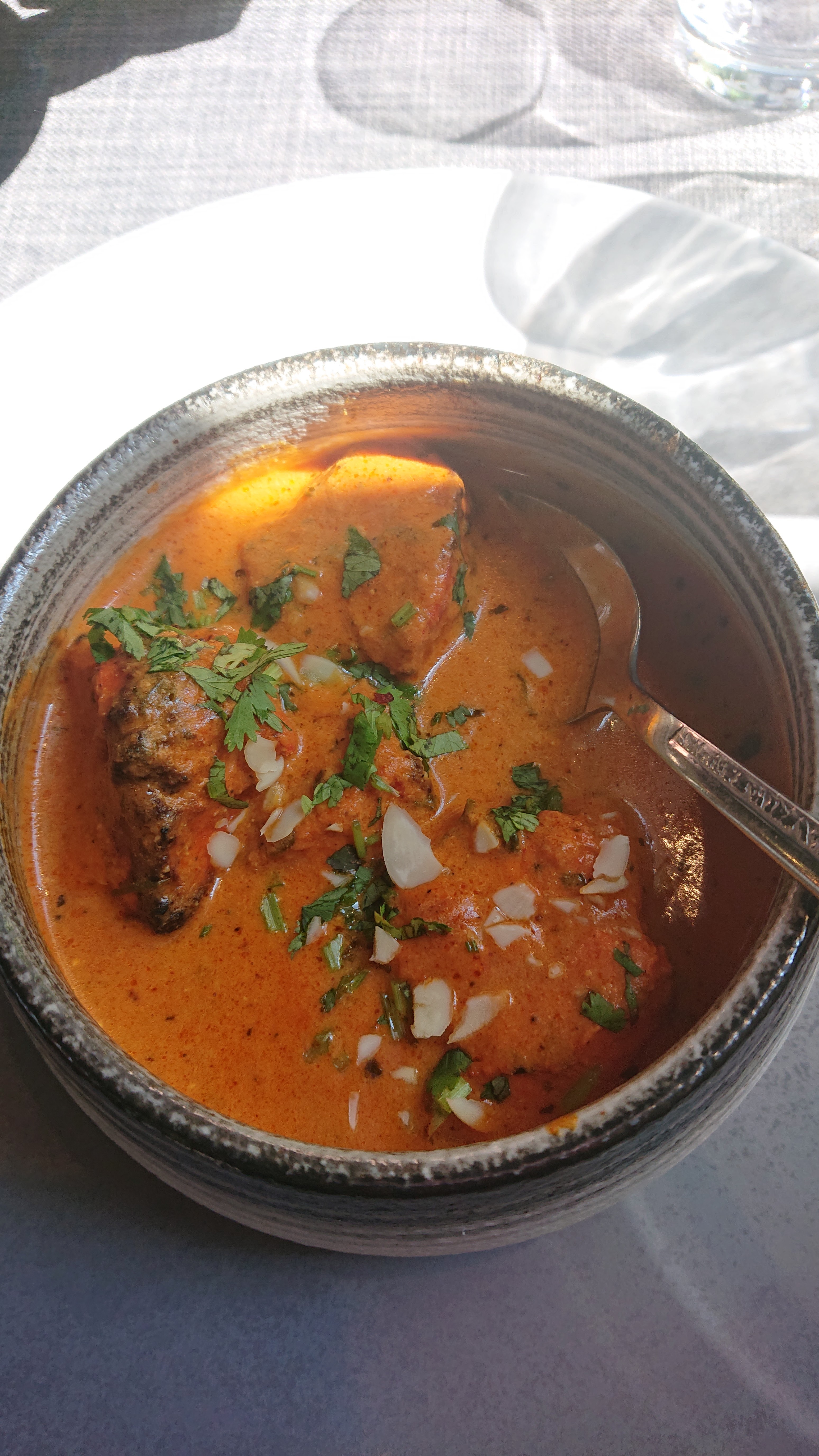 Le personnel est accueillant et sympathique, le cadre aussi. En terrasse, c'était super agréable. J'ai beaucoup appréciée le fait qu'il y ait plusieurs cocktails sans alcool, en général, on a que du virgin Mojito. Le plat de lotte et légumes était super bon, très bien assaisonné. Par contre le goan agneau, je n'ai pas vraiment apprécié et pour le reste ( poulet grillé , nan ail et nan fromage 🧀) c'était correct.