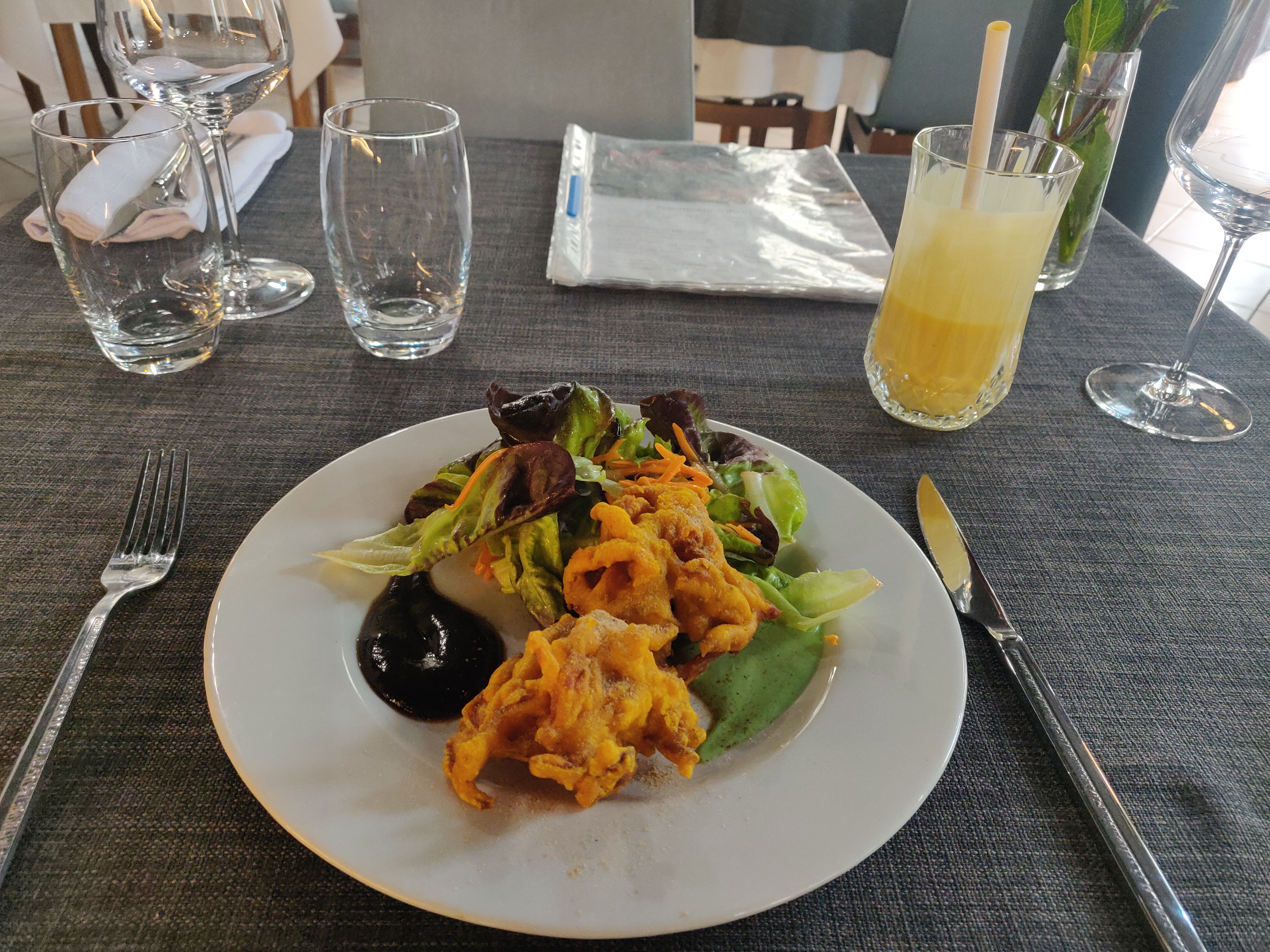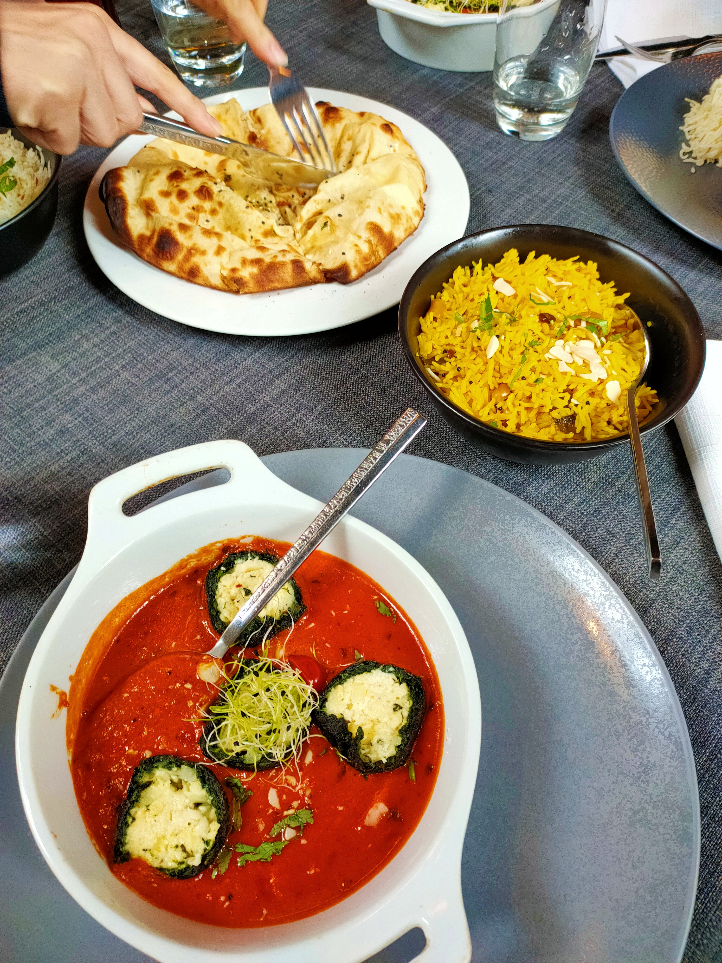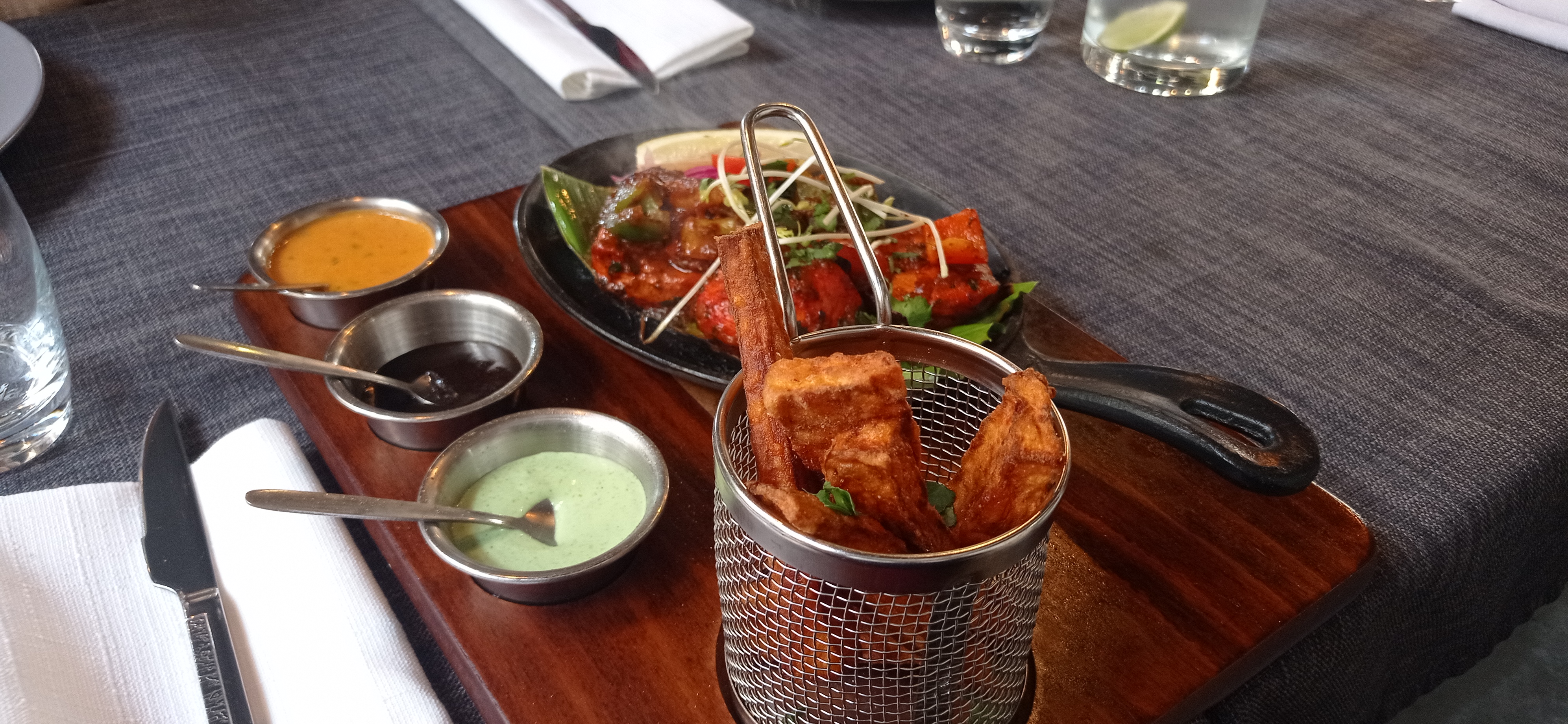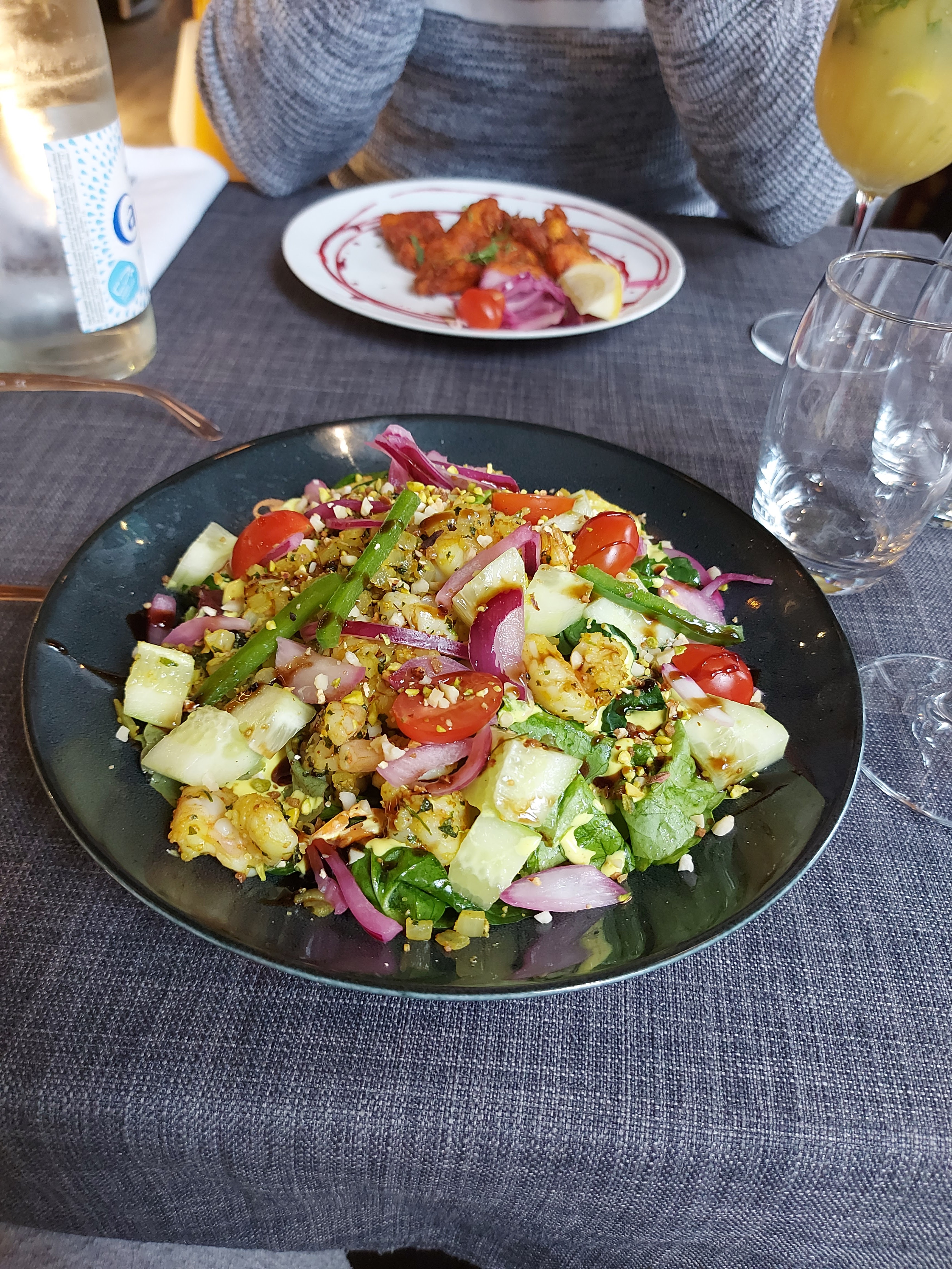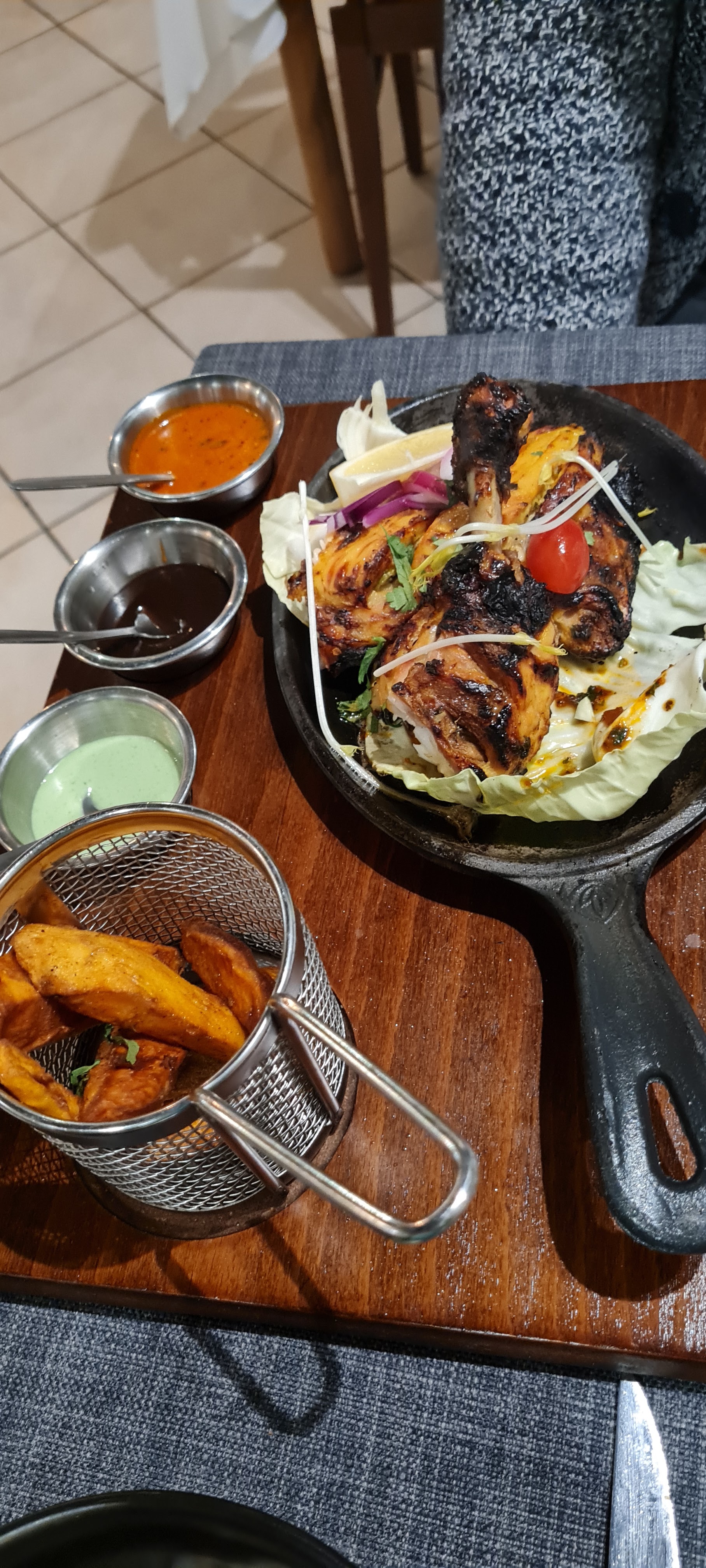 Le personnel est accueillant et sympathique, le cadre aussi. En terrasse, c'était super agréable. J'ai beaucoup appréciée le fait qu'il y ait plusieurs cocktails sans alcool, en général, on a que du virgin Mojito. Le plat de lotte et légumes était super bon, très bien assaisonné. Par contre le goan agneau, je n'ai pas vraiment apprécié et pour le reste ( poulet grillé , nan ail et nan fromage 🧀) c'était correct.