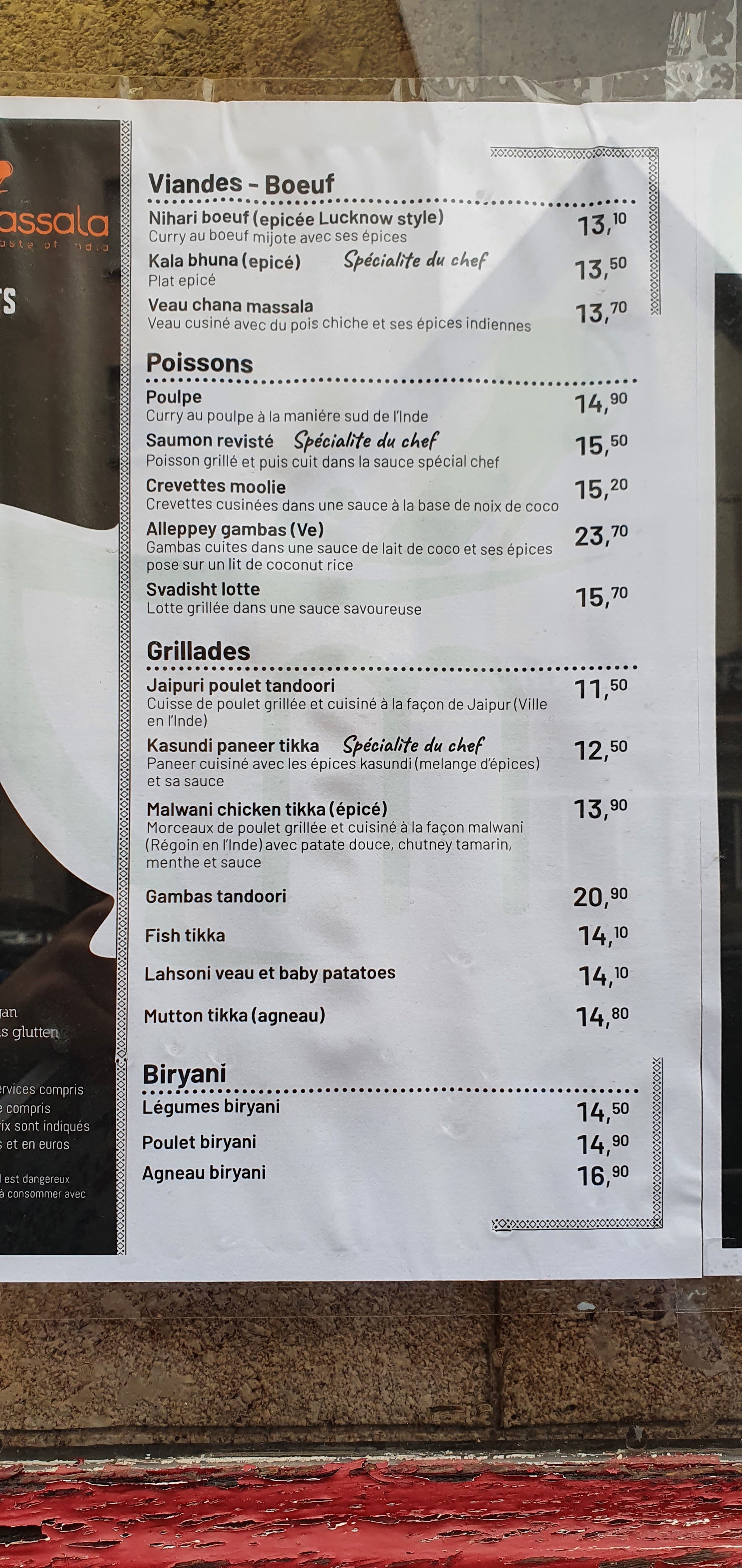 Un lieu de convivialité, où il fait bon prendre le temps de déguster chaque bouchée car c est des saveurs qui vous font voyager .C'est toujours un régal ,très bon rapport qualité prix ,produit frais ,d une grande qualité .Le vin rouge indien est super agréable en bouche .Toujours de bon conseil laisser vous guider par le personnel professionnel, souriant,et qui connais bien chaque plat et On origine ainsi que les associations des mets différents. Un restaurant qui vaut le détour. A très vite
