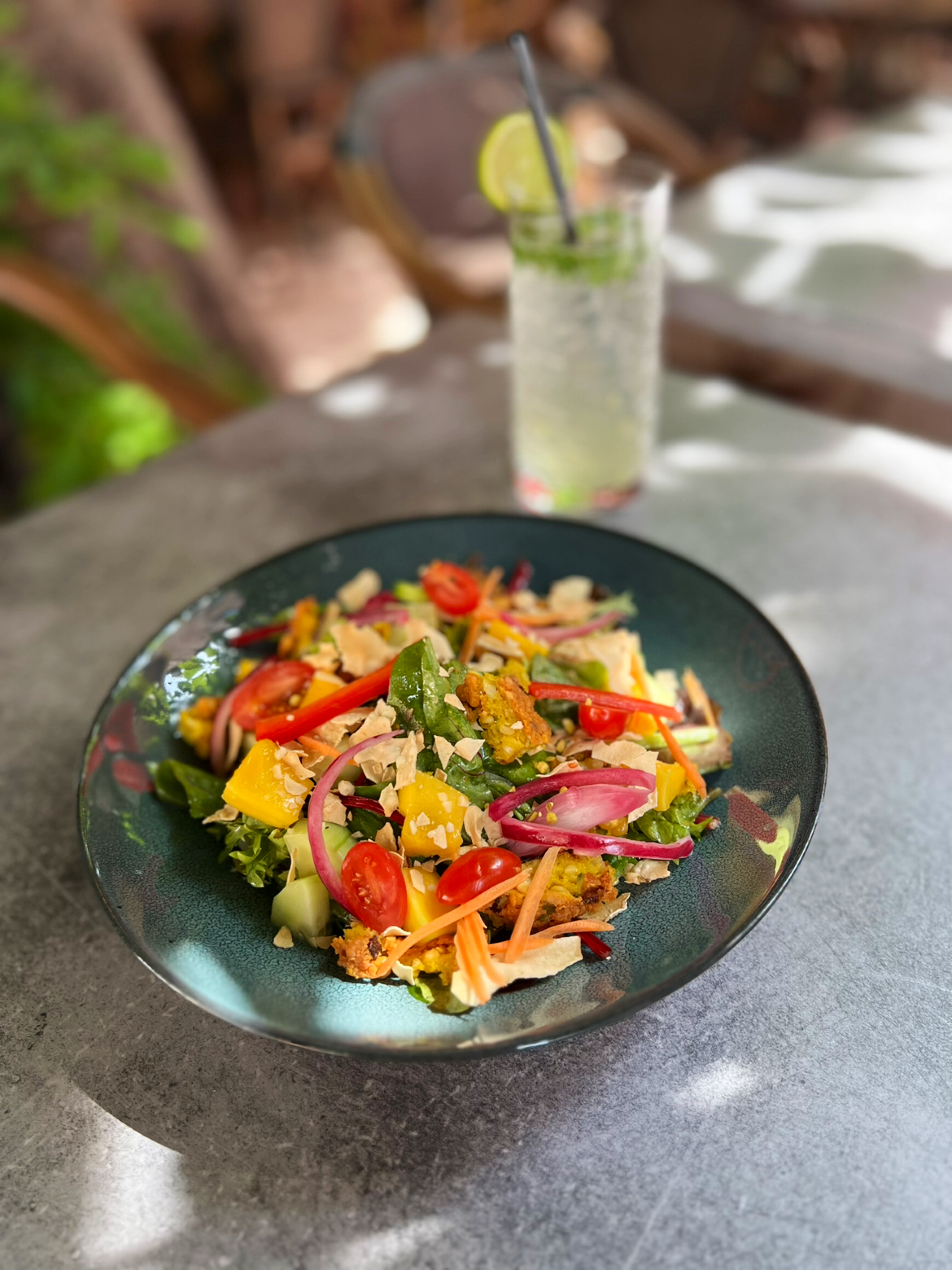 Plat délicieux et copieux Restaurant très mignon avec beaucoup de verdure