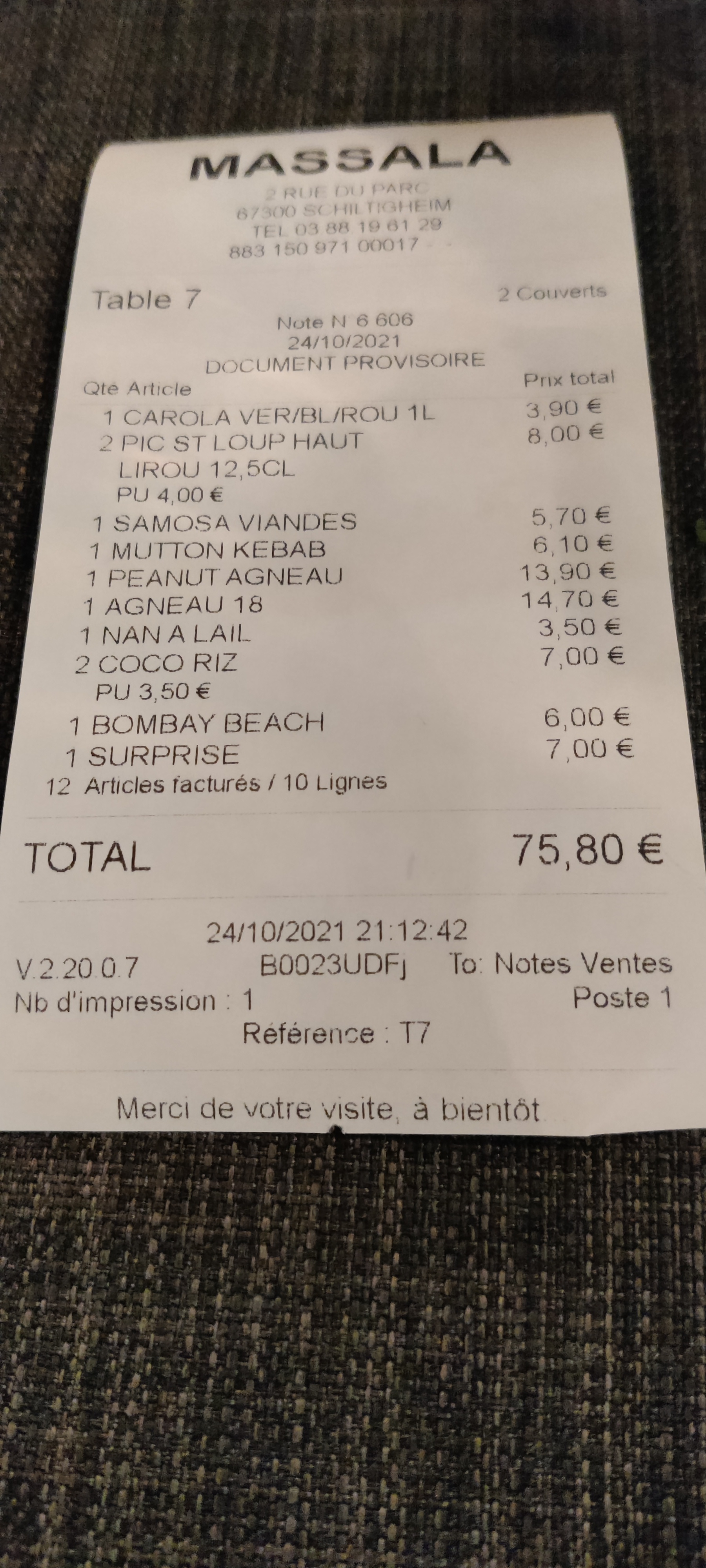 Merci beaucoup Adrian pour votre avis qui nous touche. Toute l'équipe du Massala vous souhaite une bonne soirée. À très bientôt !