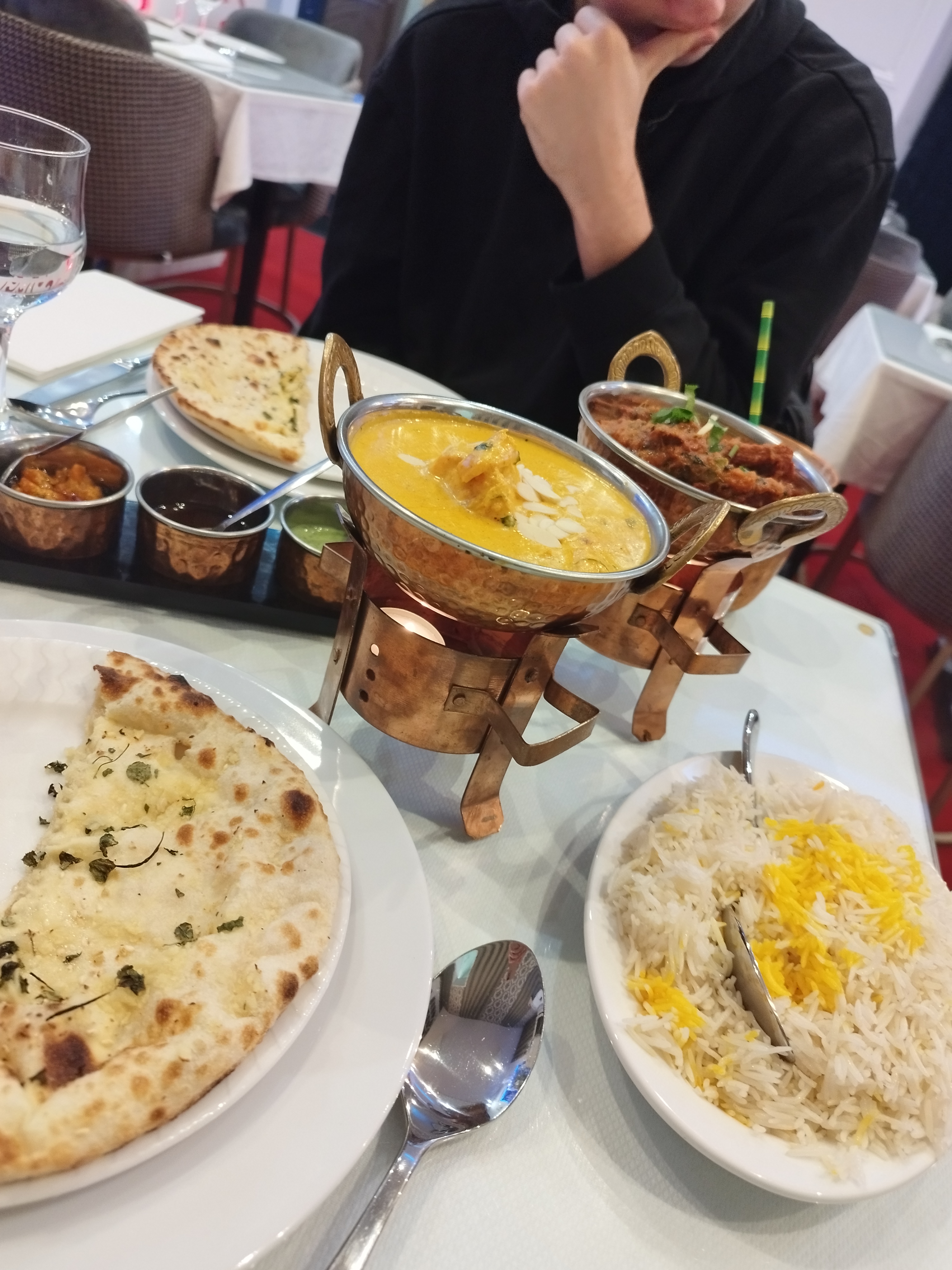Bon restaurant les plats étaient savoureux, très copieux, le service rapide et l'accueil chaleureux, la salade tandoori un delice, le poulet byriani aurait mérité d'être un petit peu plus mariné, l'agneau vindaloo un petit peu moins salé mais c'est affaire de goût. Je recommande tout de même ce restaurant 👍.