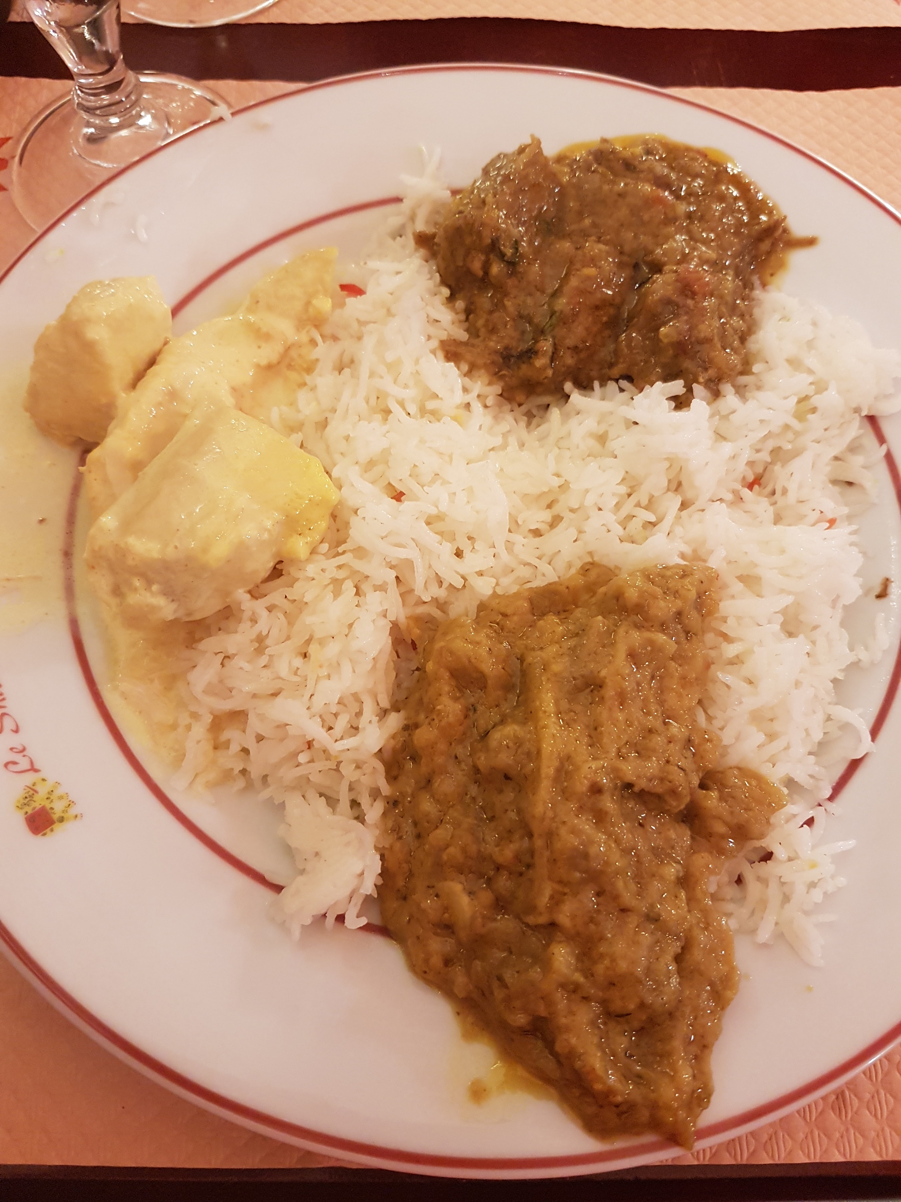 Très bon. Le poulet braisé a un goût puissant de cumin. Excellent poulet tandoori. Sauce tikka masala délicieuse avec de la coriandre. les naan sont excellents (cheese et ail). Le gâteau de riz et la halwa délicieux. La halwa mérite d'être goûtée. Attention les portions sont gigantesques. Vraiment bon.