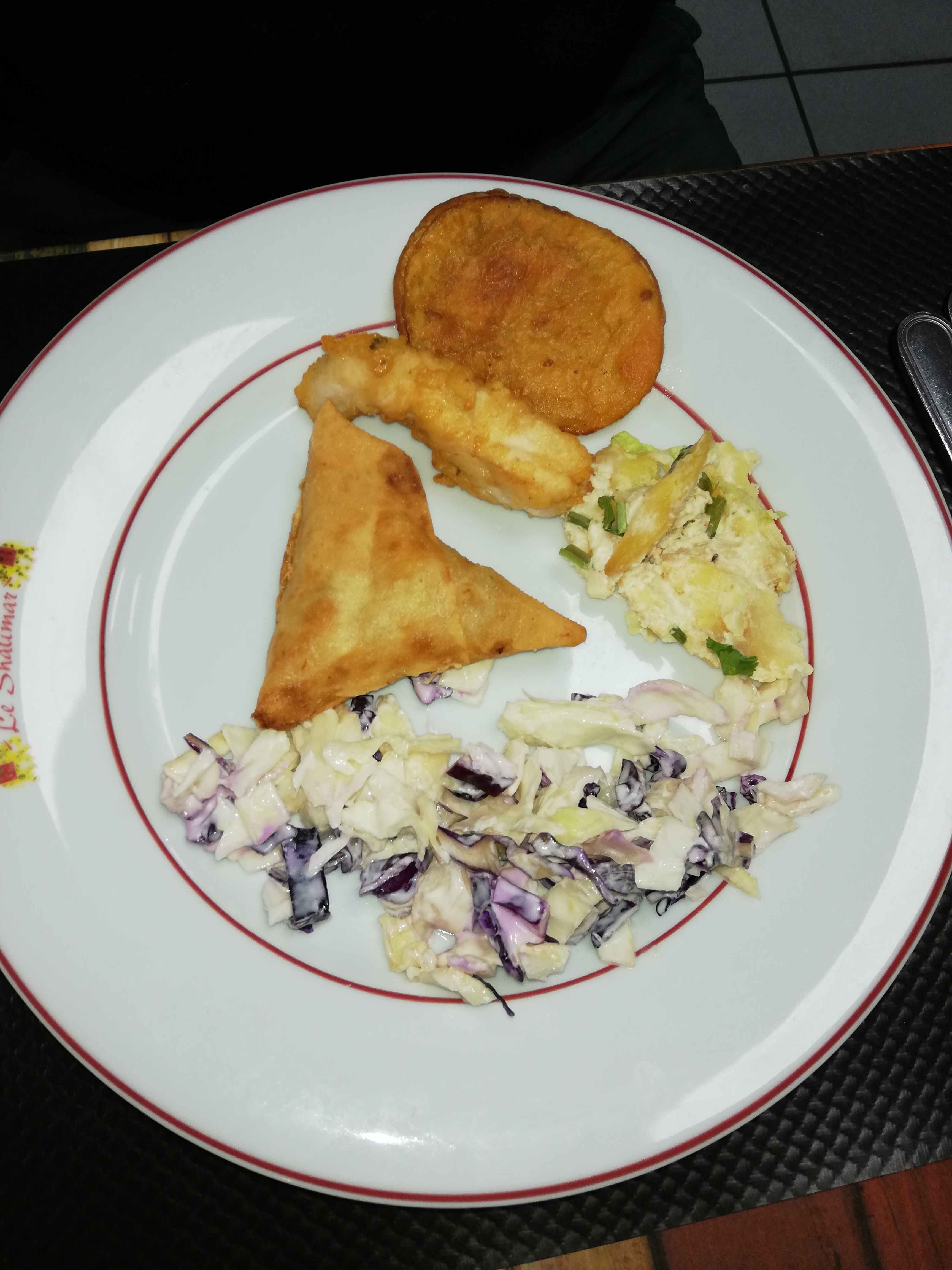 Vraiment déçu. Les beignets de calamars extrêmement gras au point d'en être écoeurant. Les autres beignets étaient indéfinis mais tout aussi gras. Le plat principal à base de poulet riz et pâtes relevé d'une sauce type andalouse n'était pas terrible. Bref, même à petite dose, cette dégustation a provoqué un mal de ventre instantané.