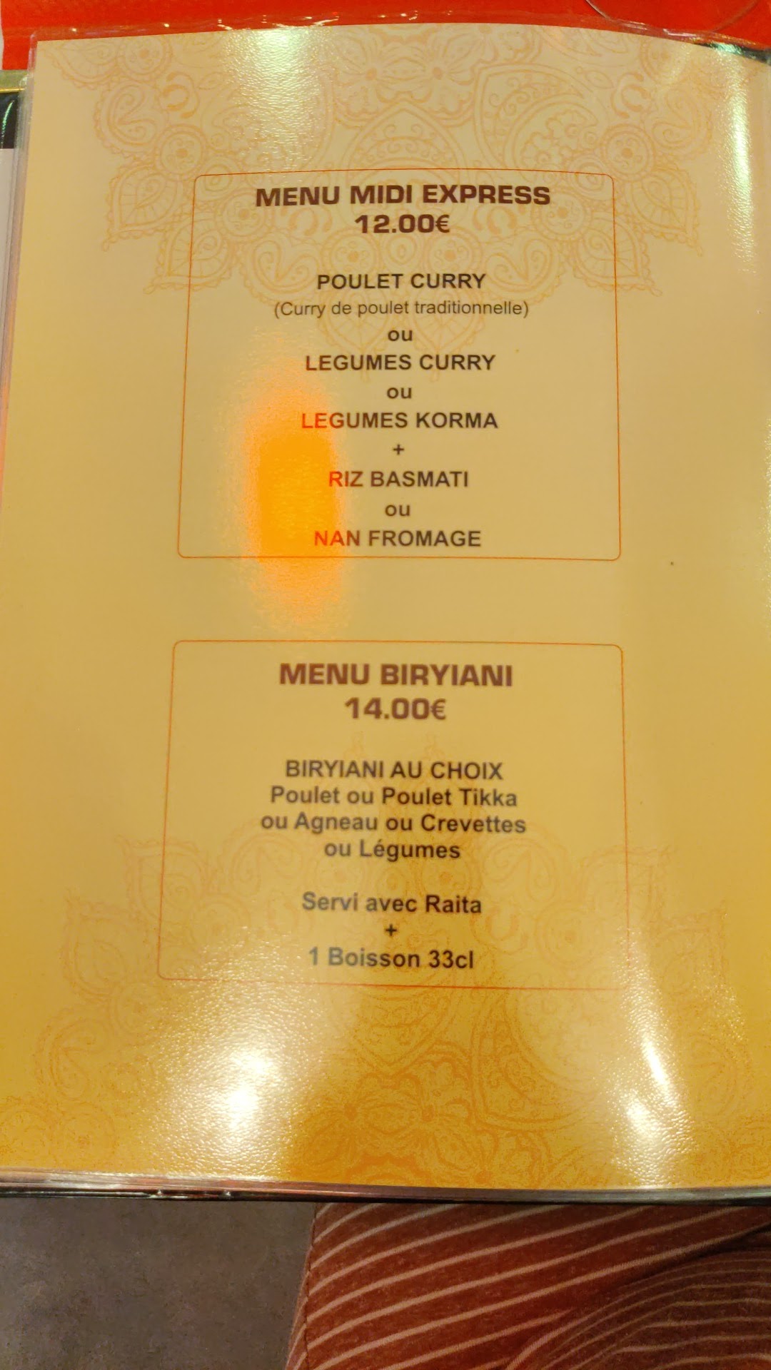 Bon restaurant indien. Plusieurs menus et formules à différents prix. L'agneau était très tendre. Accueil agréable et attentif.