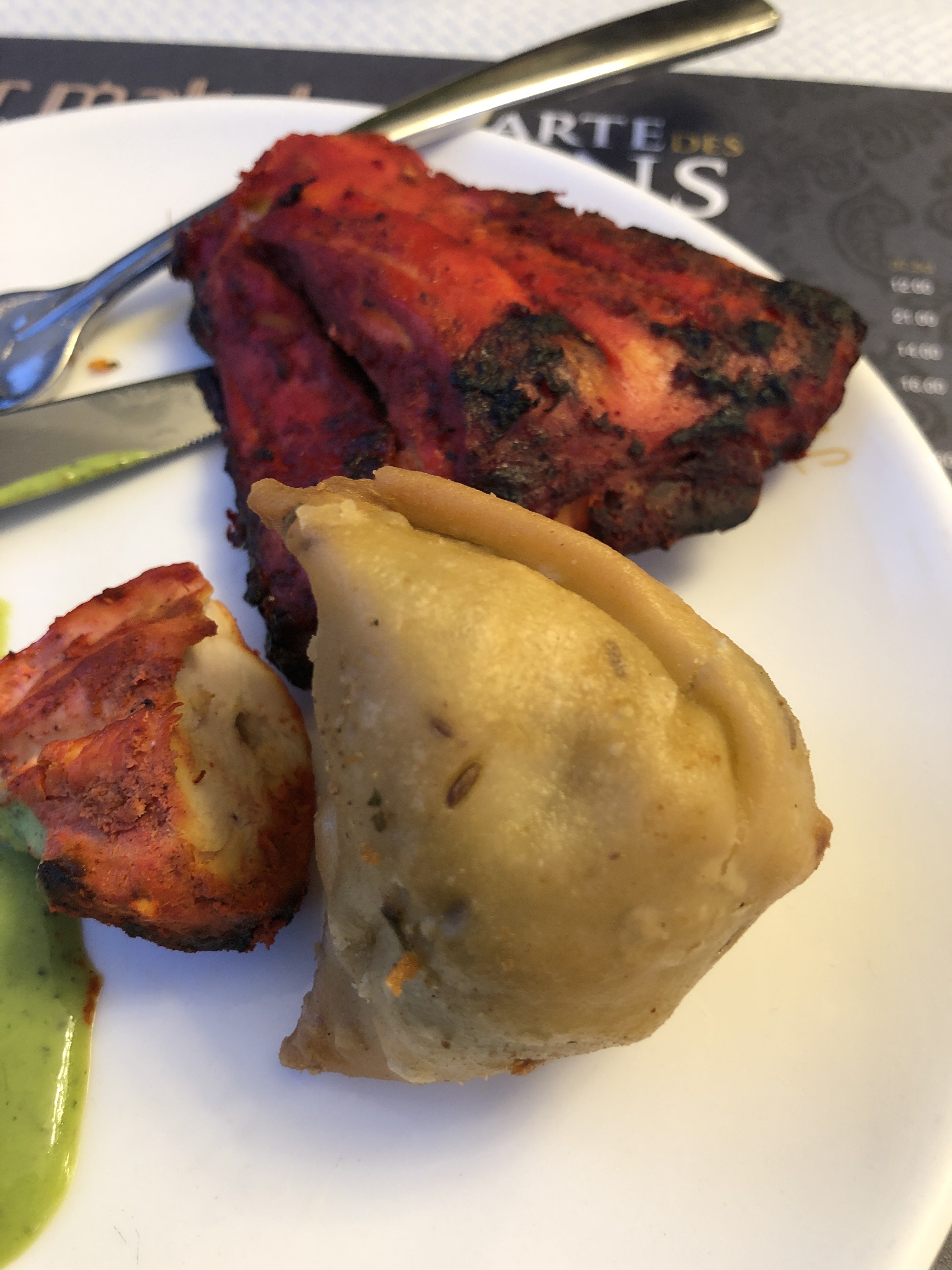 Acceuil poli un peu comme dans tous les restos indiens. Niveau plat , ils sont tres bon et variés , le chicken butter est tres bon dommage que le menu soit passé a 14.90 e au lieu de 12.90 cest le seul point negatif ils auraient pu au moins mettre une machine a boisson avec un verre de coca ou ice tea par exemple dans le menu. Les entrées sont tres bonnes egalement.