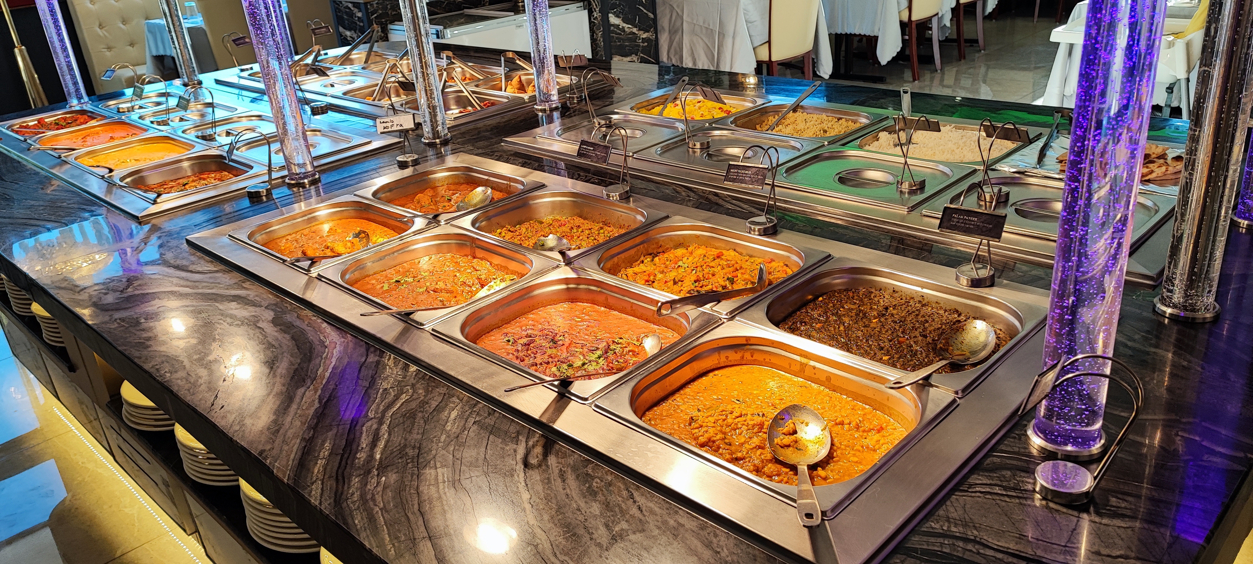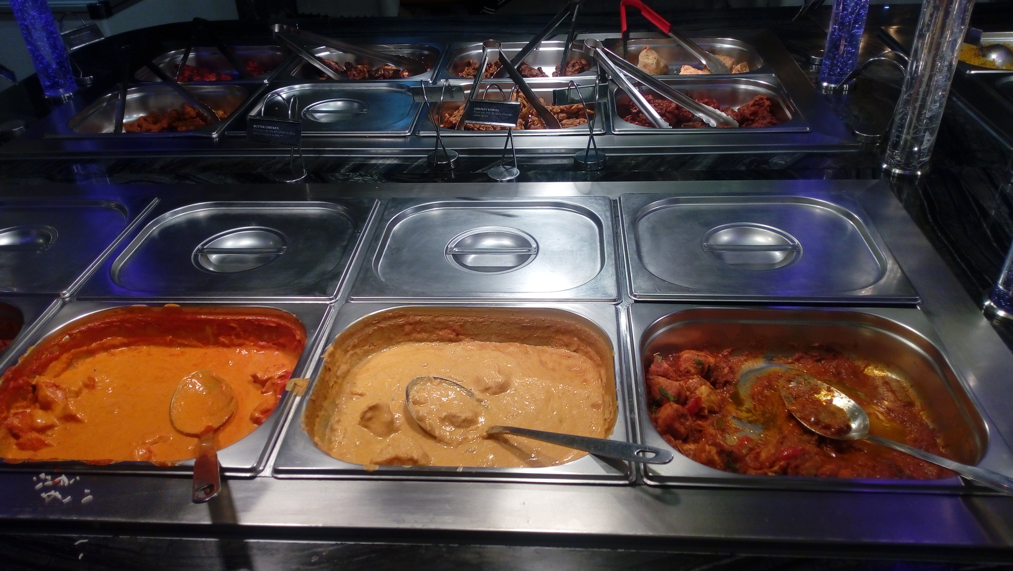 Visité un dimanche soir, très calme et tous les stands bien remplis. Cheese naan en supplément (comme dans la plupart des buffets à volonté) très bon. Du choix pour les végétariens, butter chicken super bon aussi ! Et bon accueil merci 🙏🏼