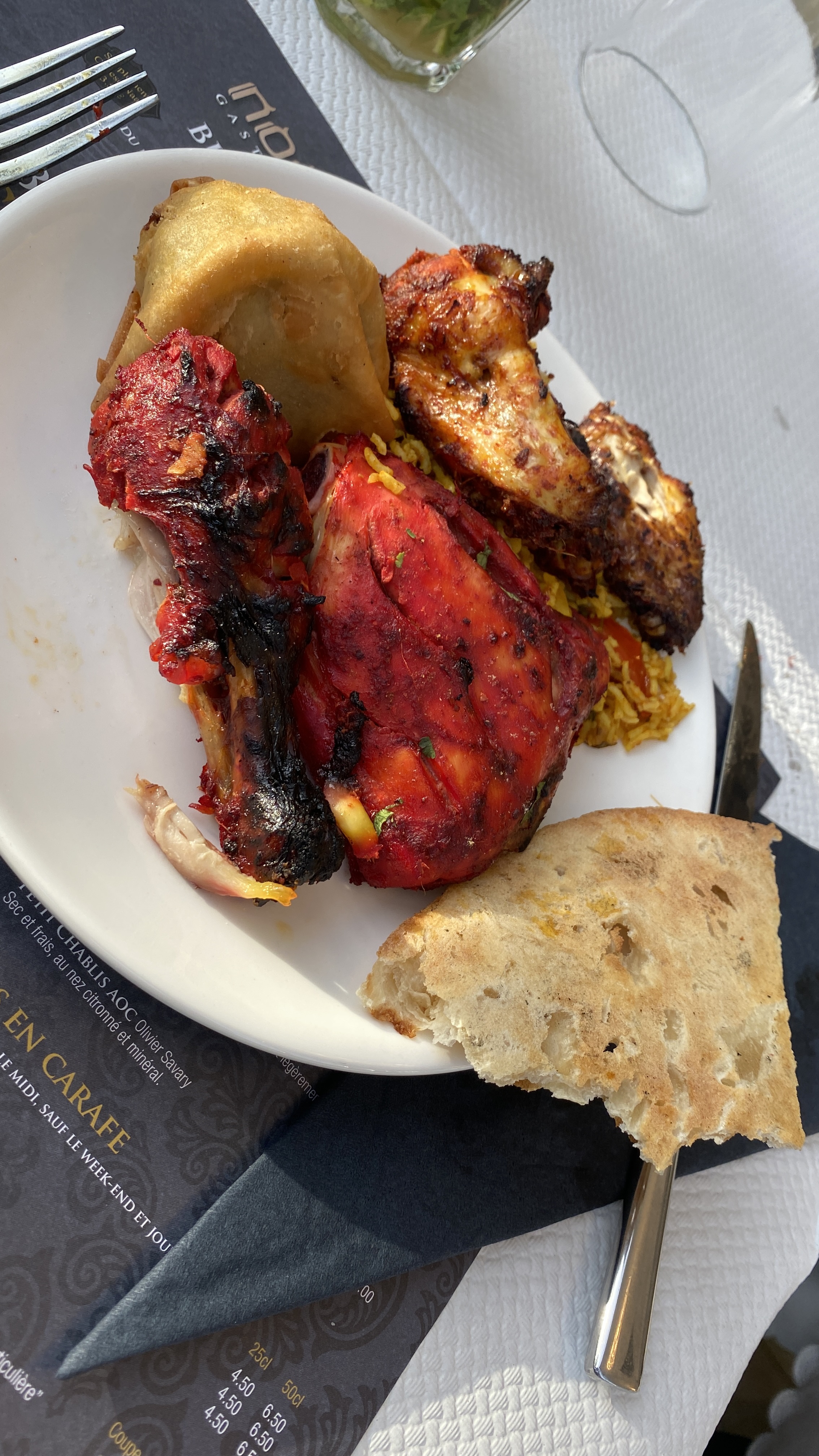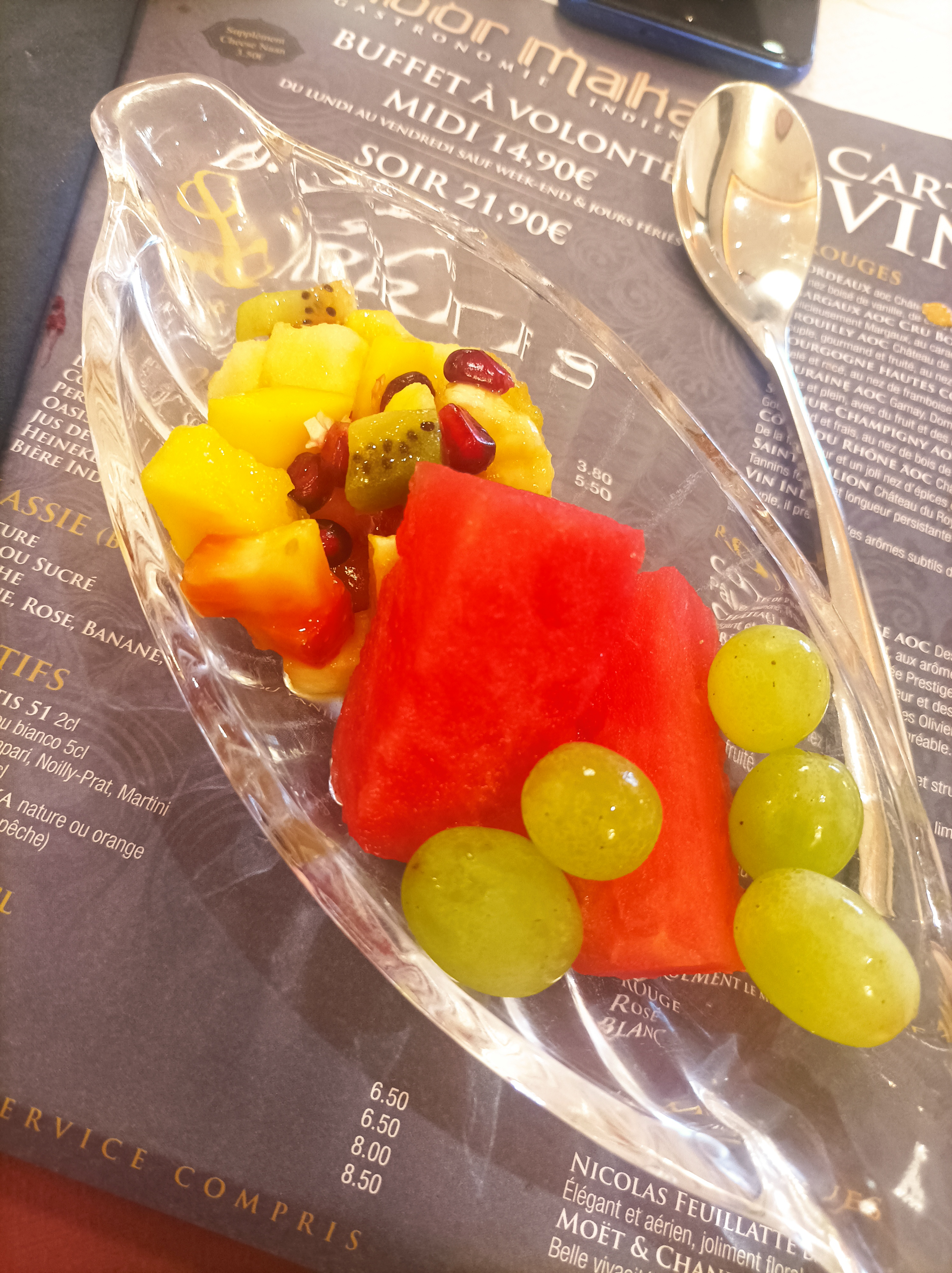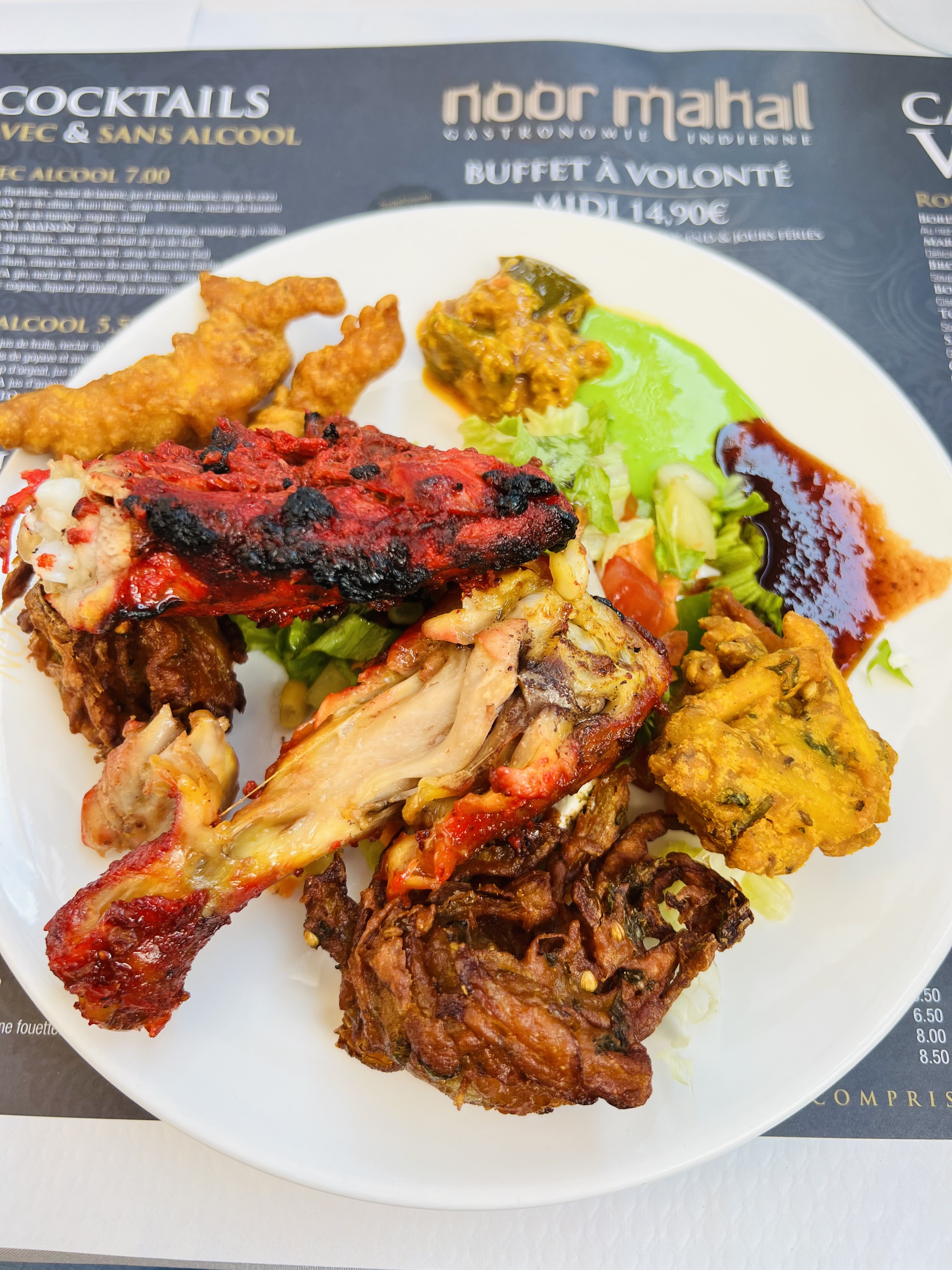 bjr petit buffet presque que du poulet pas beaucoup de choix et le goût pas au rdv rien avoir avec les photos dommage l'endroit est sympa. ps: Samedi soir pas de biryani la basse quoi.