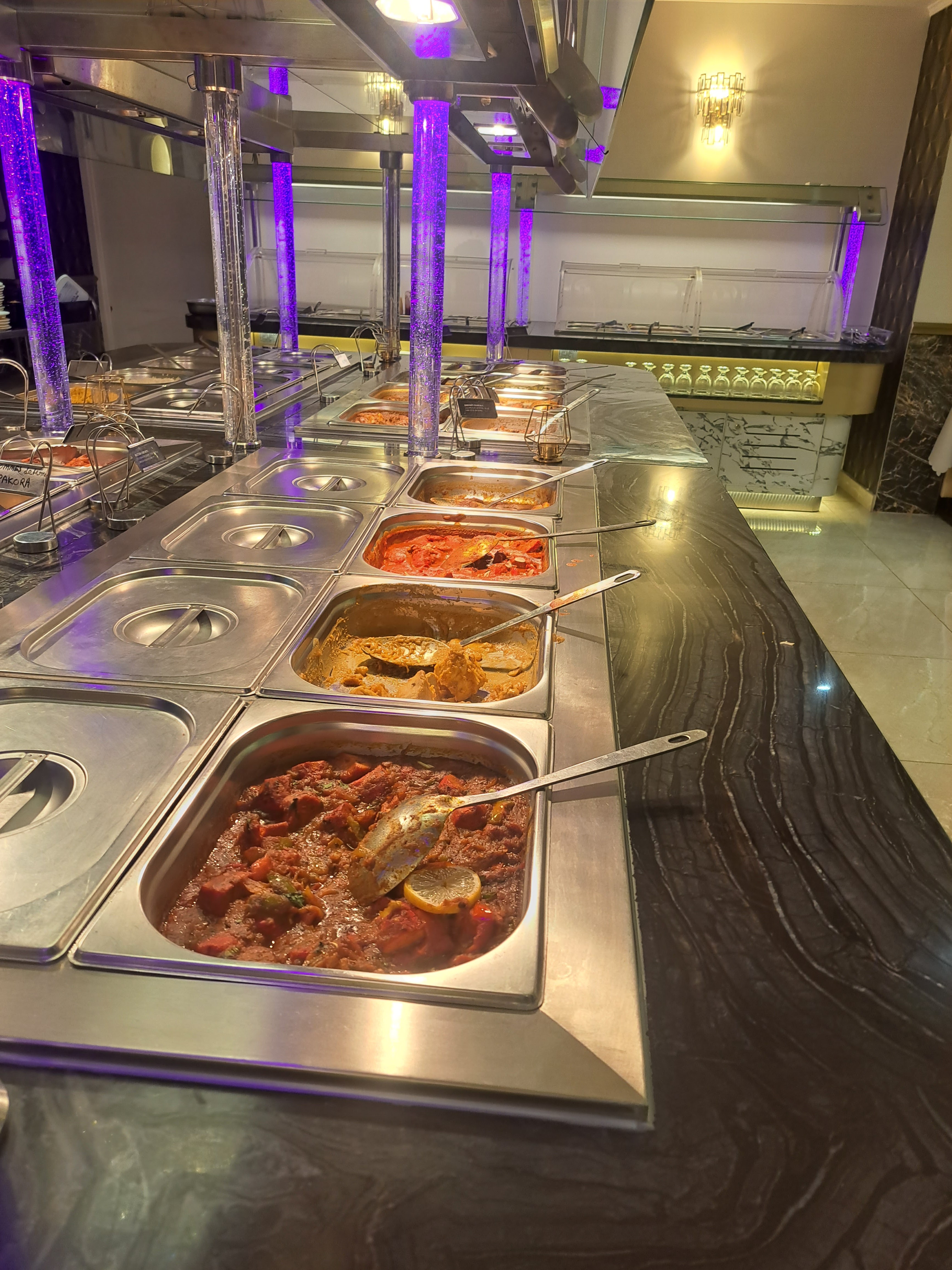 Agréablement surprise pour un buffet à volonté. Par contre le prix du lassi est excessif à mon goût même si le goût est au rdv. J aurai aimé aussi un 100% halal sans alcool. Le cheese nan était goûtu. Ça fait plaisir de ne pas avoir à chercher le fromage dedans . ...
